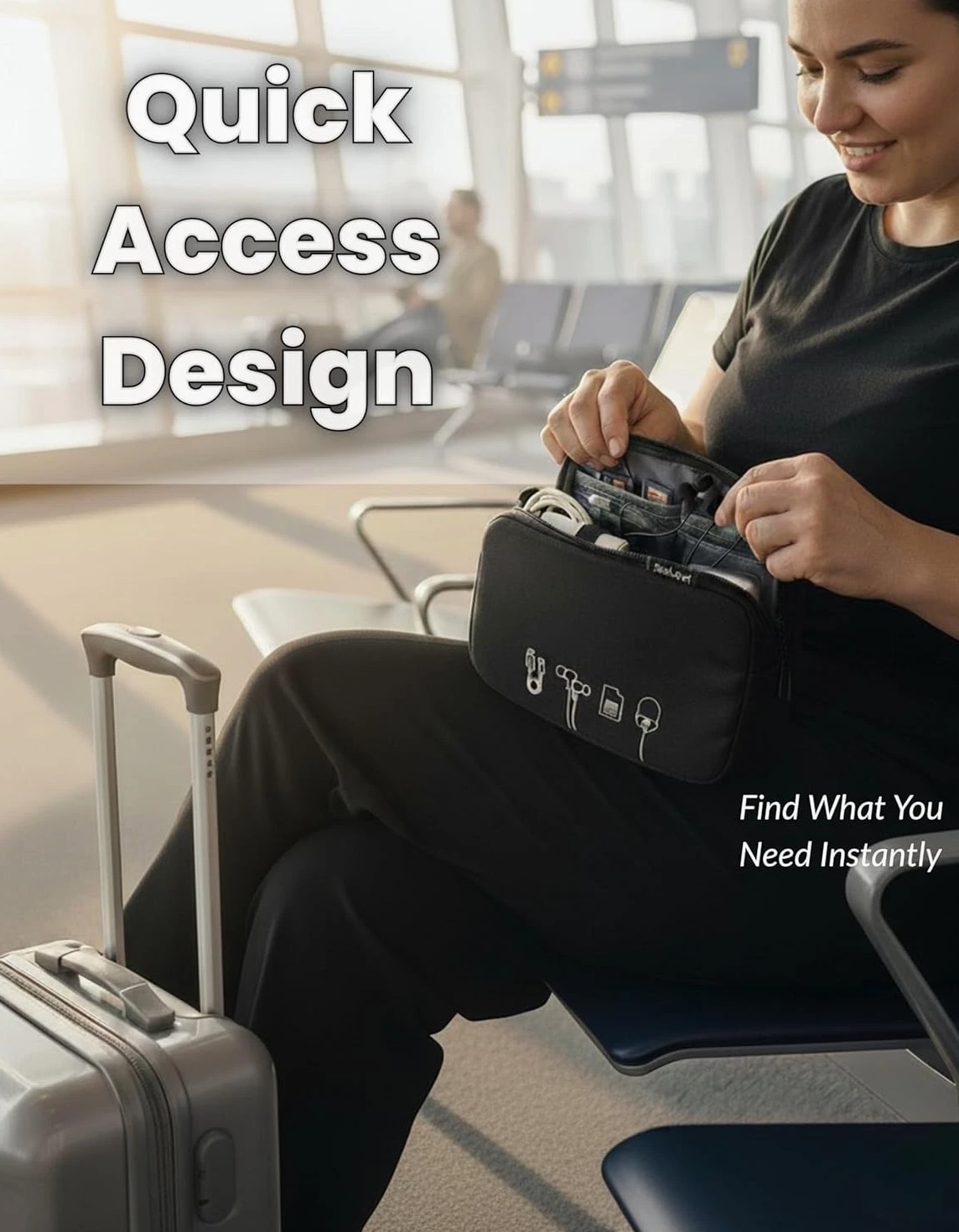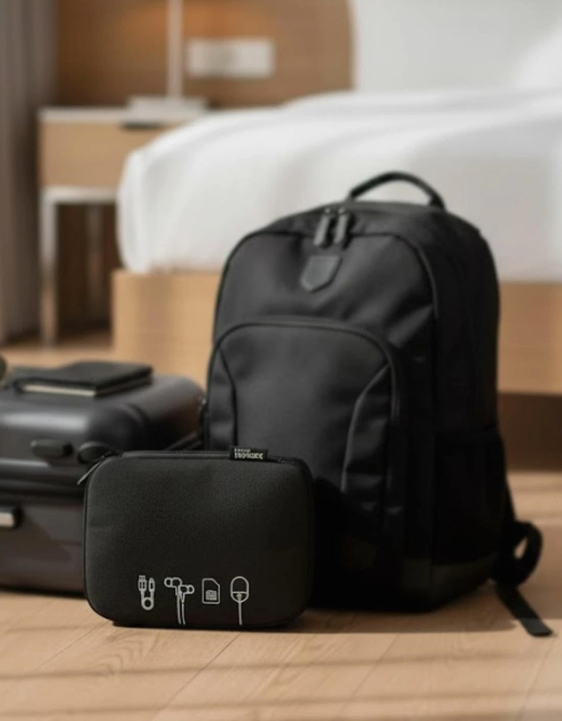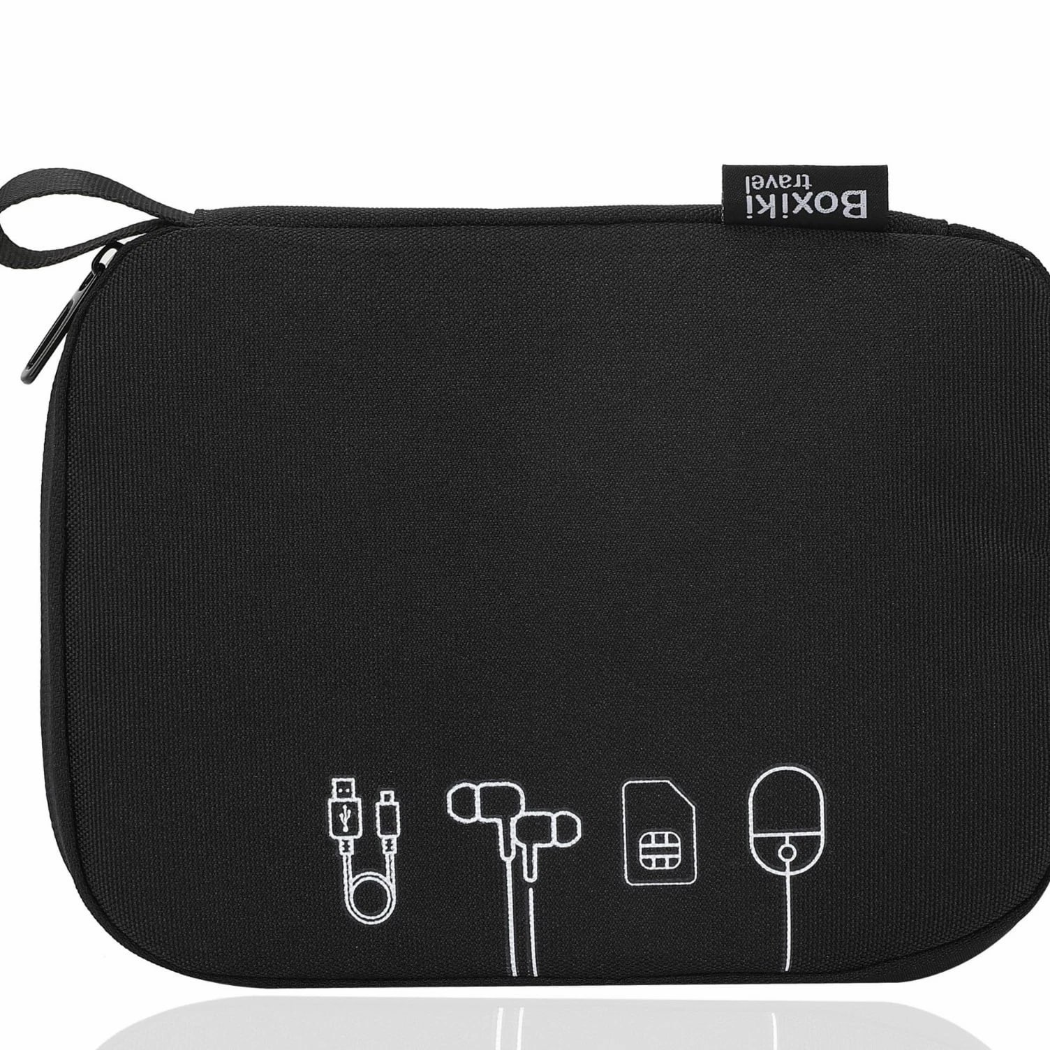 • Multiple compartments for organized storage • Lightweight and travel-friendly design • Durable zipper closure • Fits cables, chargers, and small gadgets • Sleek black minimalist aesthetic