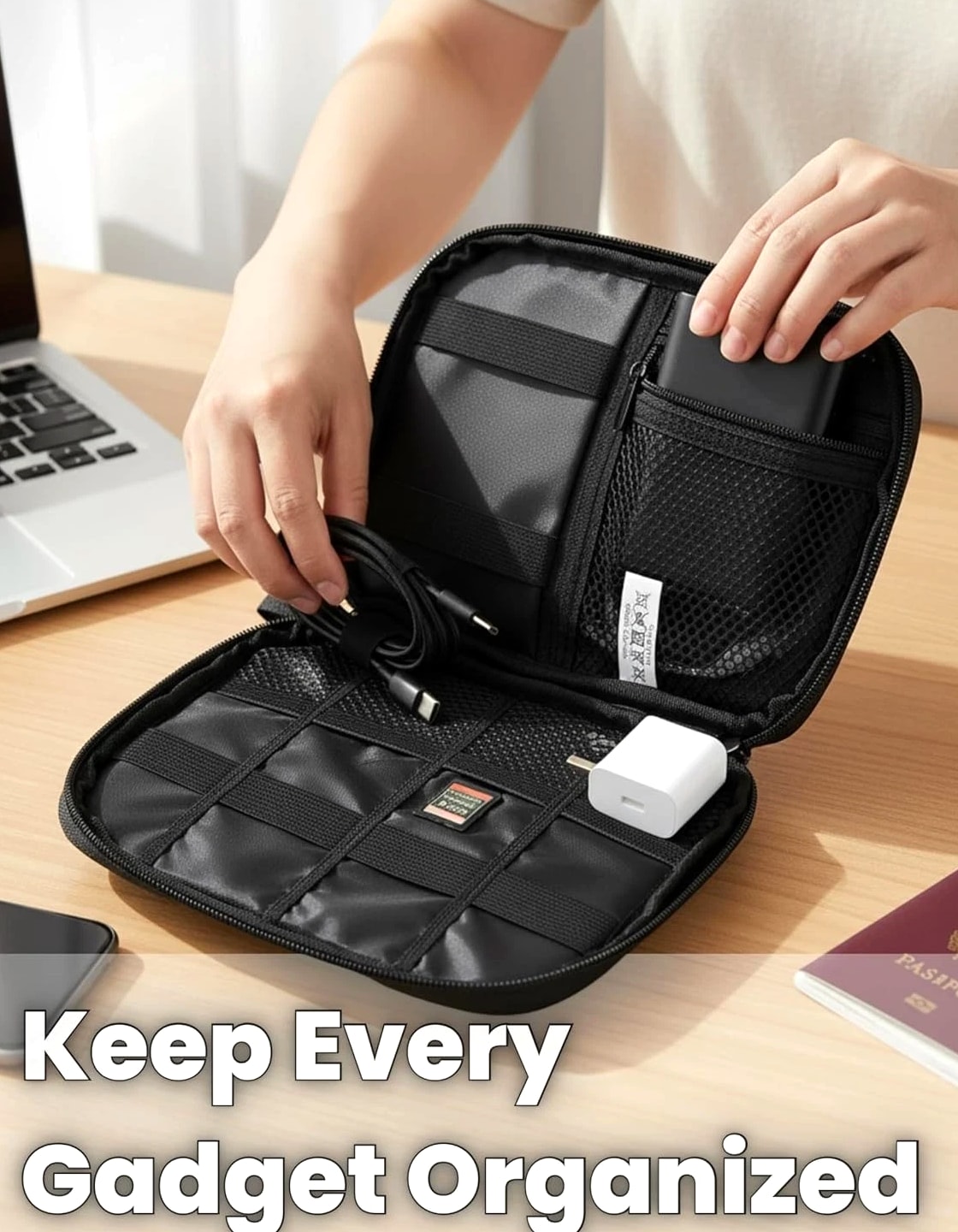 Cable Organizer Travel Pouch Electronics Accessories Black Chargers Cables Gadgets