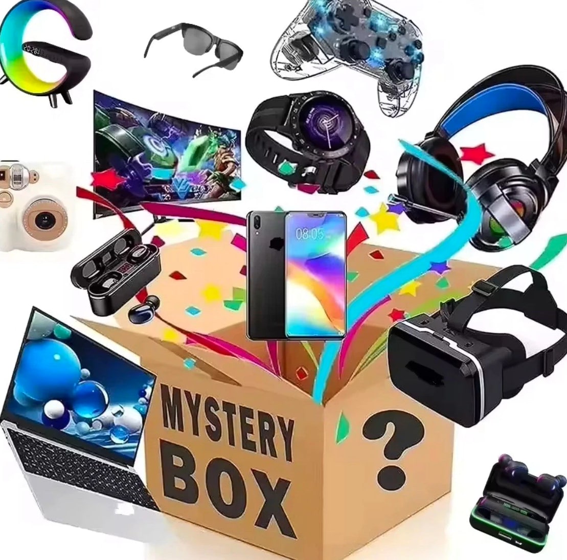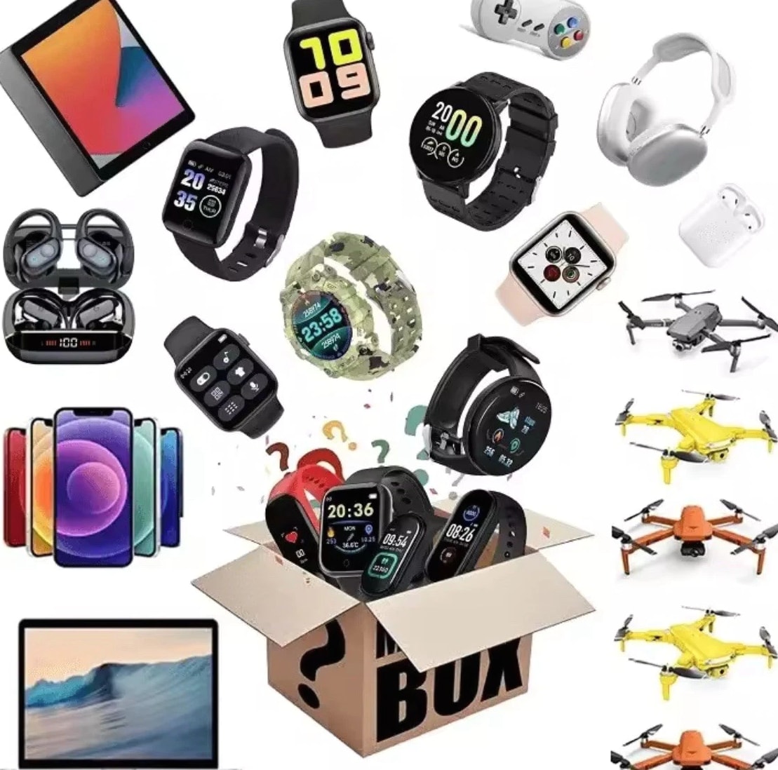 Electronics Mystery Box 1–5 Random Gadgets Smart Watch Earbuds Camera Surprise