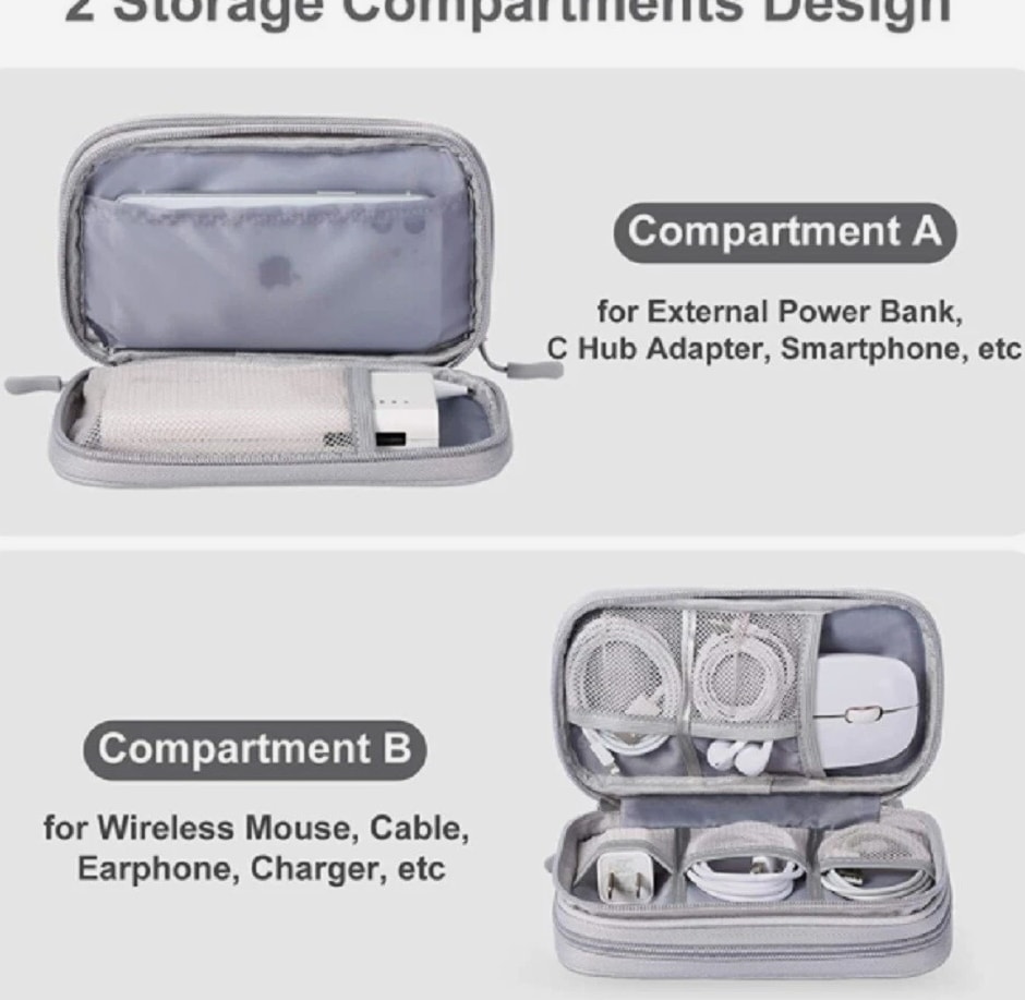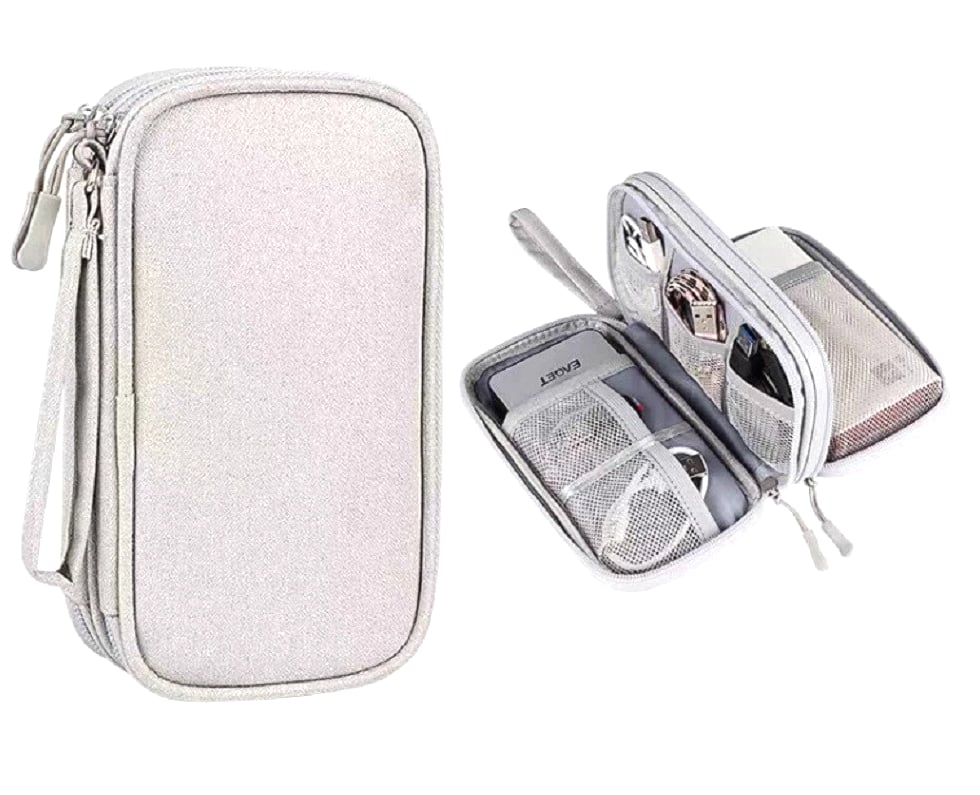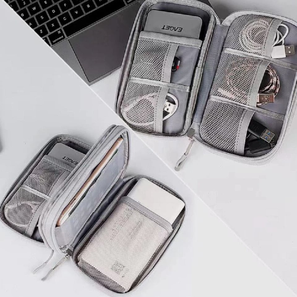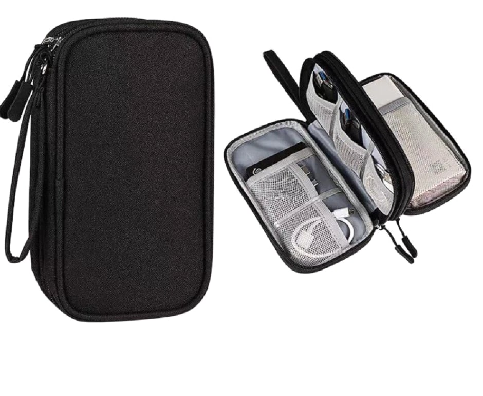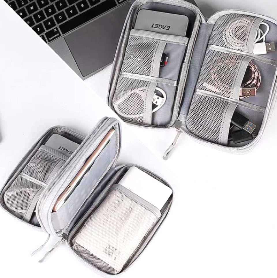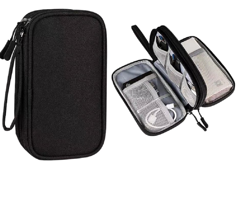 Electronics organizer travel bag keeps cords, chargers, USB cables, earbuds, SD cards organized Waterproof (water-resistant) storage case helps protect small gadgets from spills and moisture Multi-pocket cable organizer with elastic loops for power banks, adapters, mouse, flash drives Compact travel cable bag fits backpack/suitcase—great for flights, office, school, road trips Easy-access zip pouch reduces tangles and clutter—ideal tech gift for men, women, students
