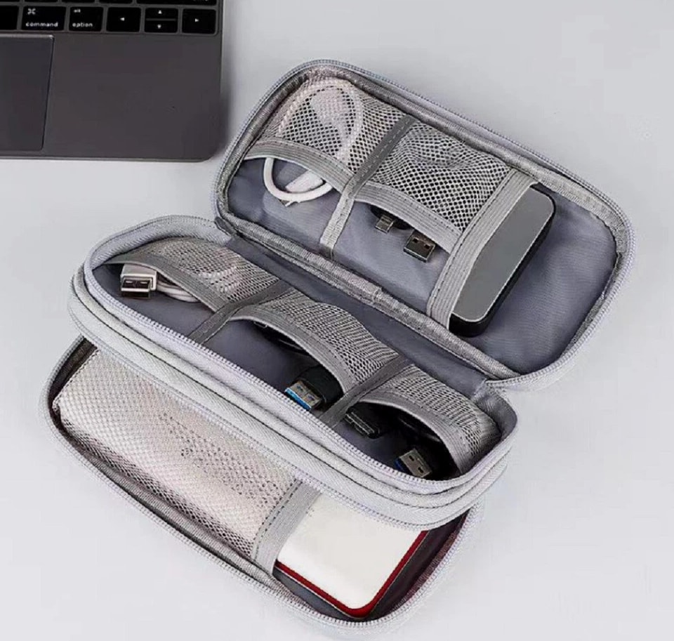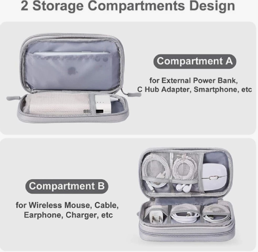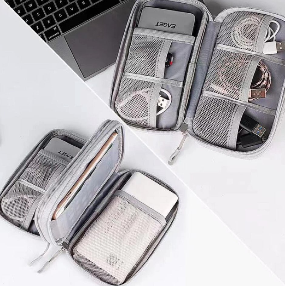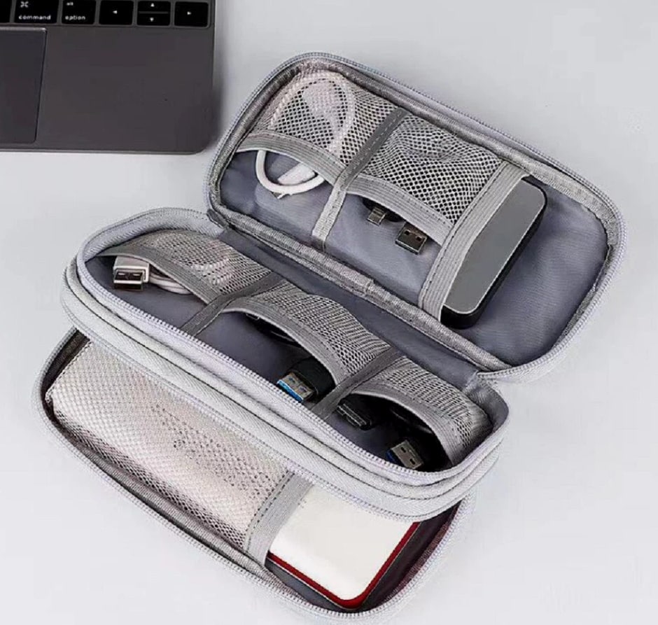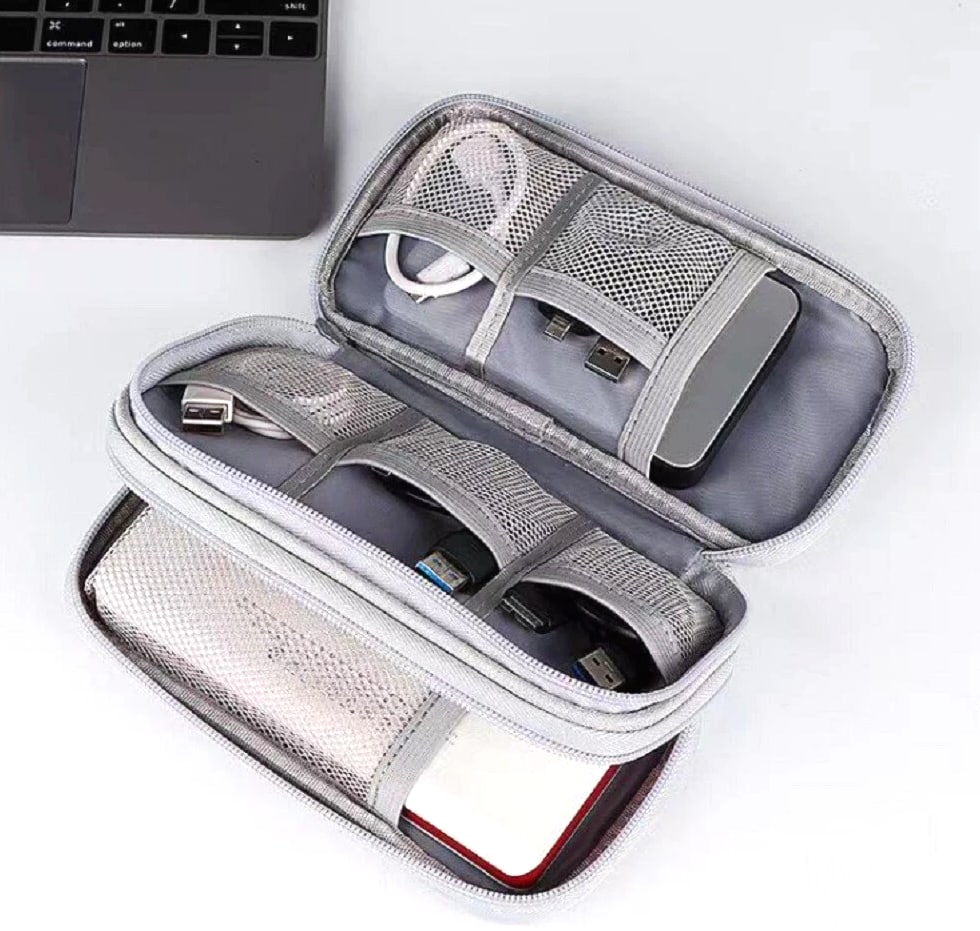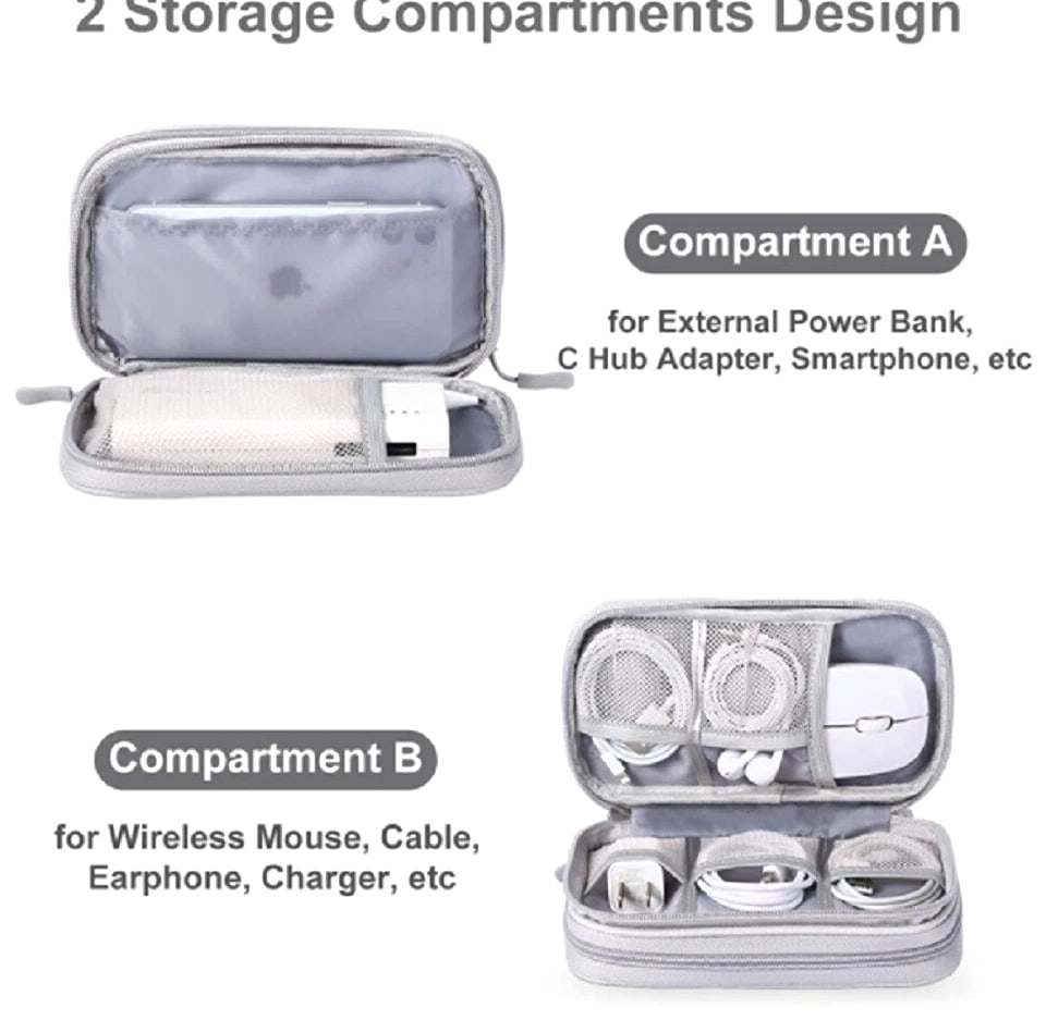 Electronics organizer travel bag keeps cords, chargers, USB cables, earbuds, SD cards organized Waterproof (water-resistant) storage case helps protect small gadgets from spills and moisture Multi-pocket cable organizer with elastic loops for power banks, adapters, mouse, flash drives Compact travel cable bag fits backpack/suitcase—great for flights, office, school, road trips Easy-access zip pouch reduces tangles and clutter—ideal tech gift for men, women, students