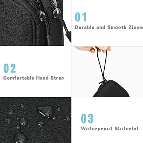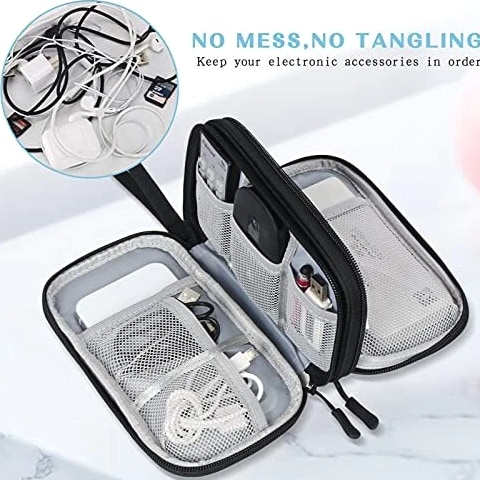 Small Electronics Carrying Case Bag Gadgets Organizer Pouch for Tech Accessories Features: Dimensions: The cable storage travel case measures 7.5" x 4.3" x 2.2". Compact size and lightweight make it easy to carry and put into your backpack, handbags or laptop bag without taking much space. Suitable for family use and daily organization. Please Note: The little net pockets can only fit cords no longer than 3ft; charging cords longer than 3ft should be placed in the larger pockets. Quality Material: This electronic organizer travel case is made of high quality durable waterproof oxford with soft sponge inside to secure your gadgets in place and deliver quick access whenever you want, a perfect case protects your electronics accessories. Double Layers Design: The electronics storage bag has 2 layers interior compartment with enough space to accommodate your cords, cables, USB drive, cellphone, charger, mouse, flash drive, and other accessories. Practical and Convenient: Comes with a comfortable hand strap for easy carrying; you can carry it in your hand when heading out. Durable and smooth zipper closure keeps your favorite device securely, convenient for quick access to the items inside the case. Portable and Lightweight: The small size and lightweight design of this durable cable organizer pouch is a perfect choice when going on holiday, business trip, travel, or office. Great gift for yourself or a nice share with families and friends. (Cords and electronic accessories not included) Description: About us: We are a Manufacturer, not a Retailer! That is why we offer you the highest quality product with reasonable price! Our factory was founded in 1999 and after decades of dedication and innovation, a mature Selection-Production-Examination-Sale-Post Service chain was developed. As a worldwide factory, we concentrate on quality of each product. Being environmentally-friendly is a vital principle we stress all the time. Brand: In order to keep up with all other sel