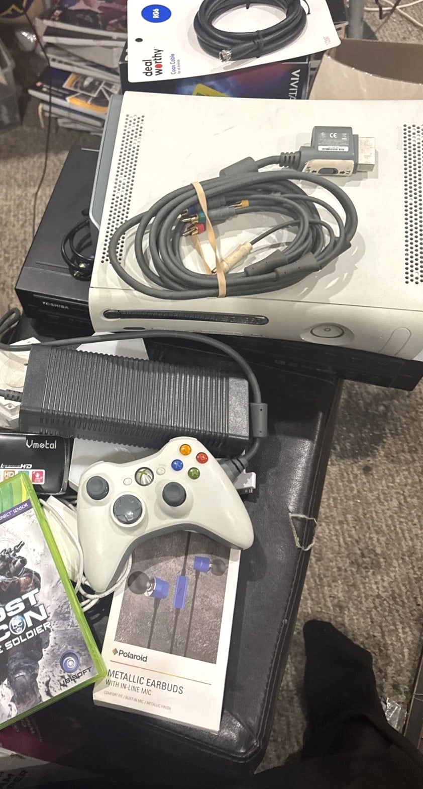 This product is a mixed lot of electronics gadgets from a junk drawer, sold as-is and untested for parts or repair. It includes a variety of electronic components and devices that may be salvageable or useful for tinkering or restoration projects. Perfect for tech enthusiasts or professionals looking for components to fix or customize electronic devices. Xbox 360, Toshiba, DVD player, and more.