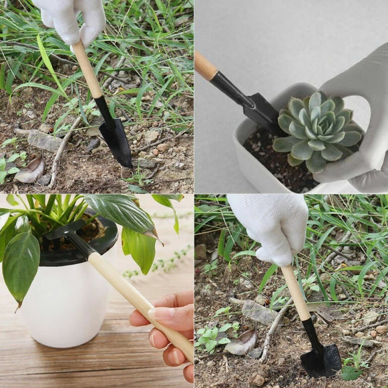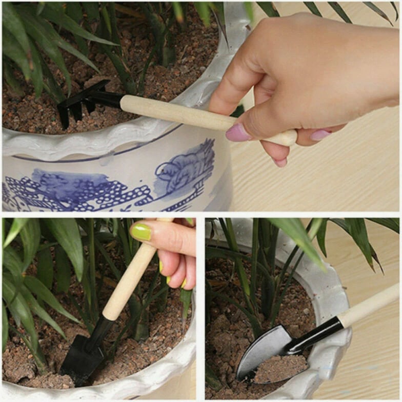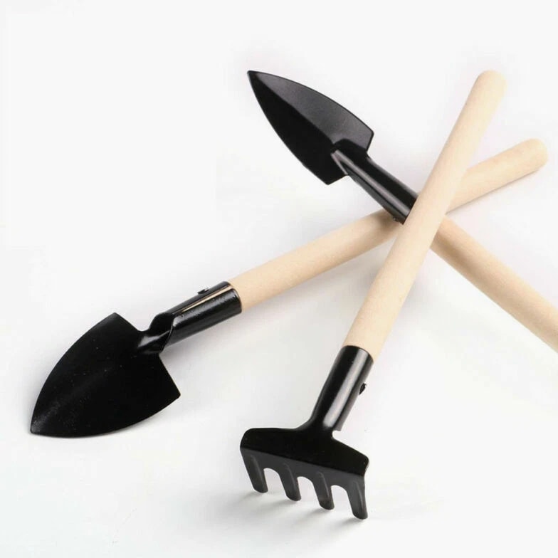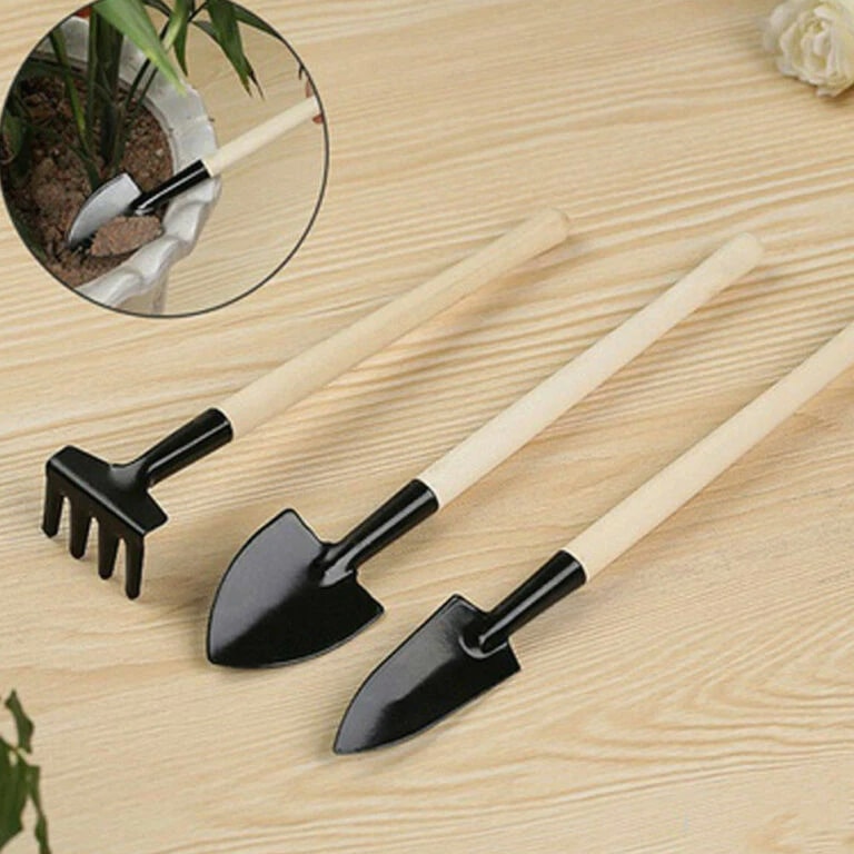 3 Pcs Wood Handle Garden Tool Set Planting Gardening Mini Tool Set Home Gardening
