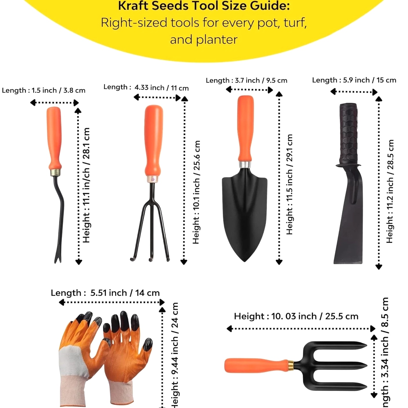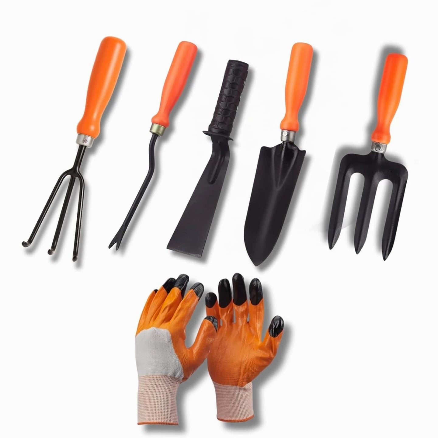 6 Pcs Gardening Tools Kit Set Cultivator, Fork, Trowel, Weeder Gloves Home Garden