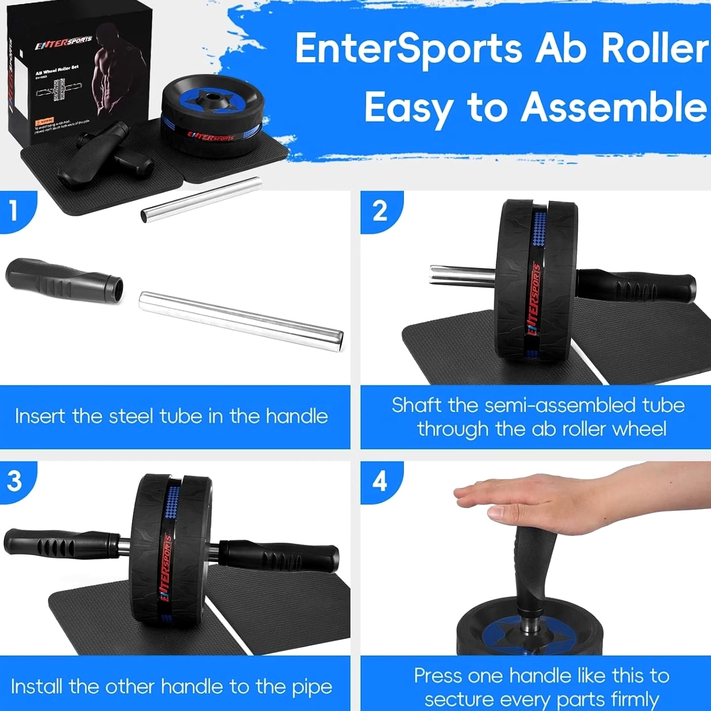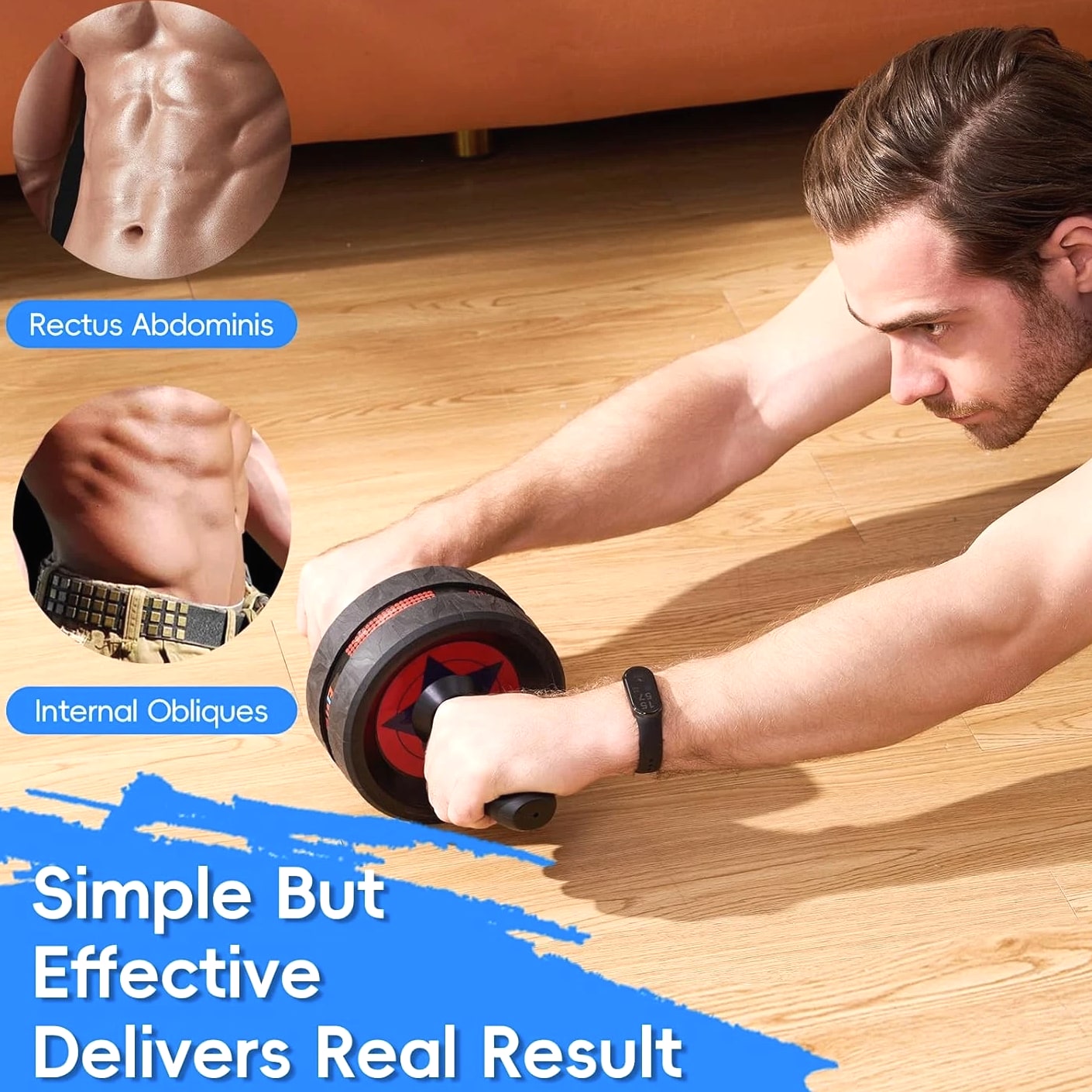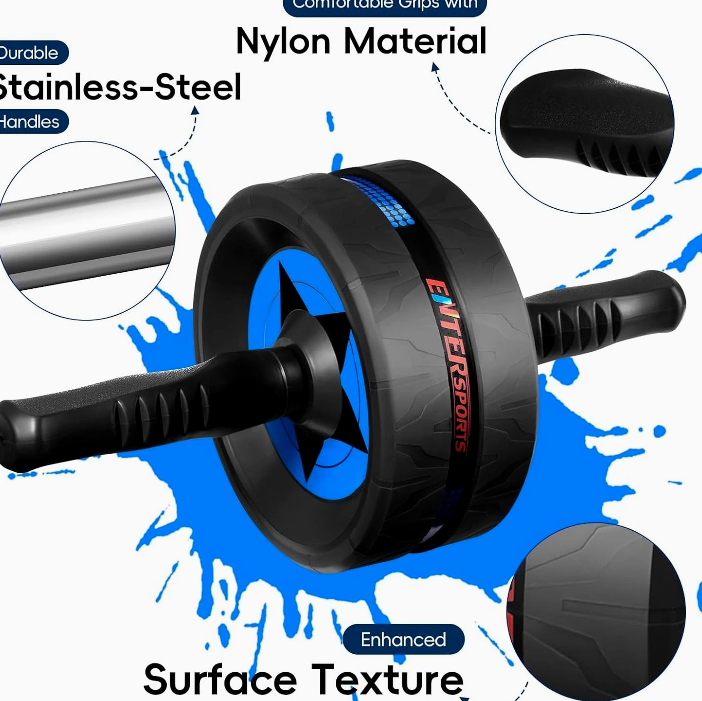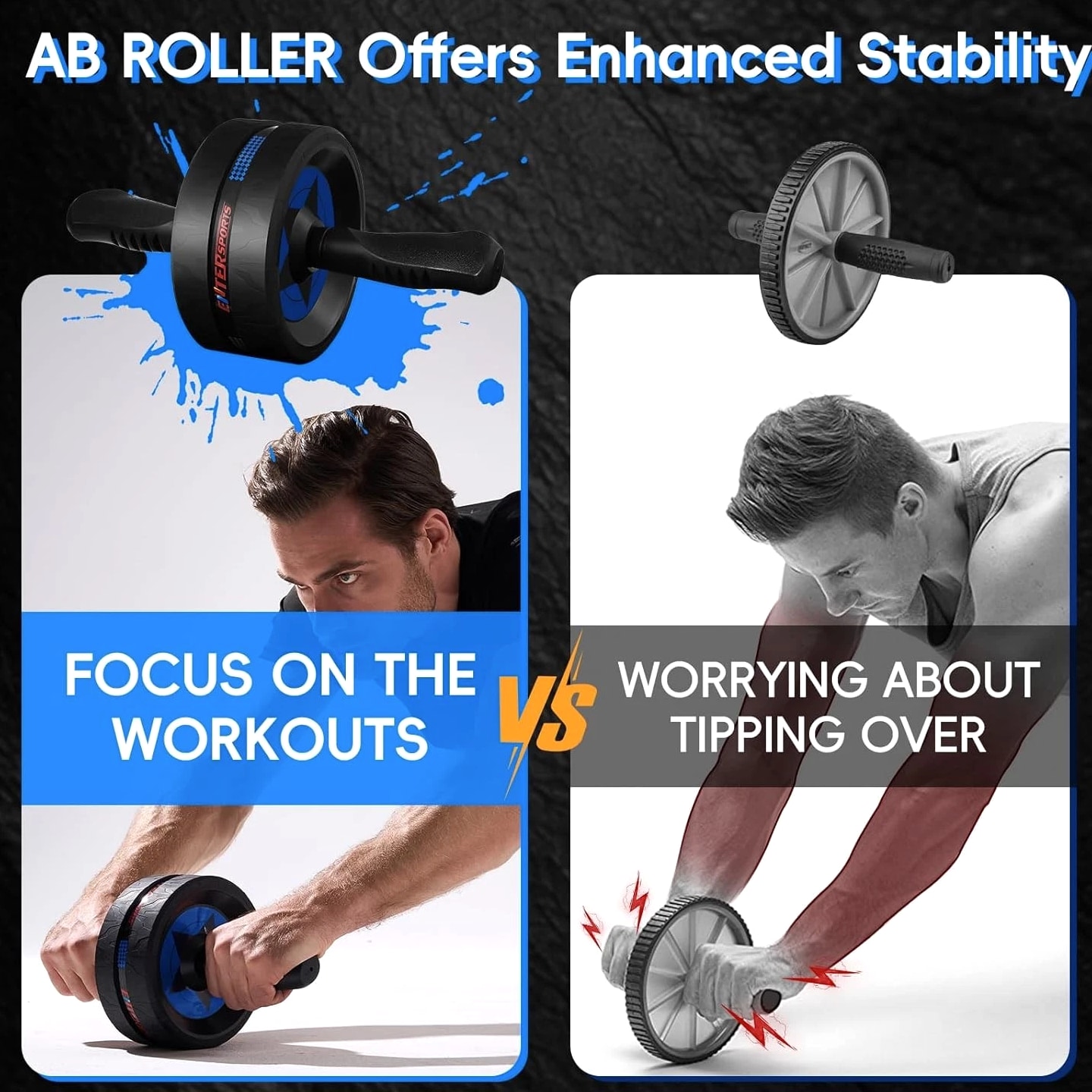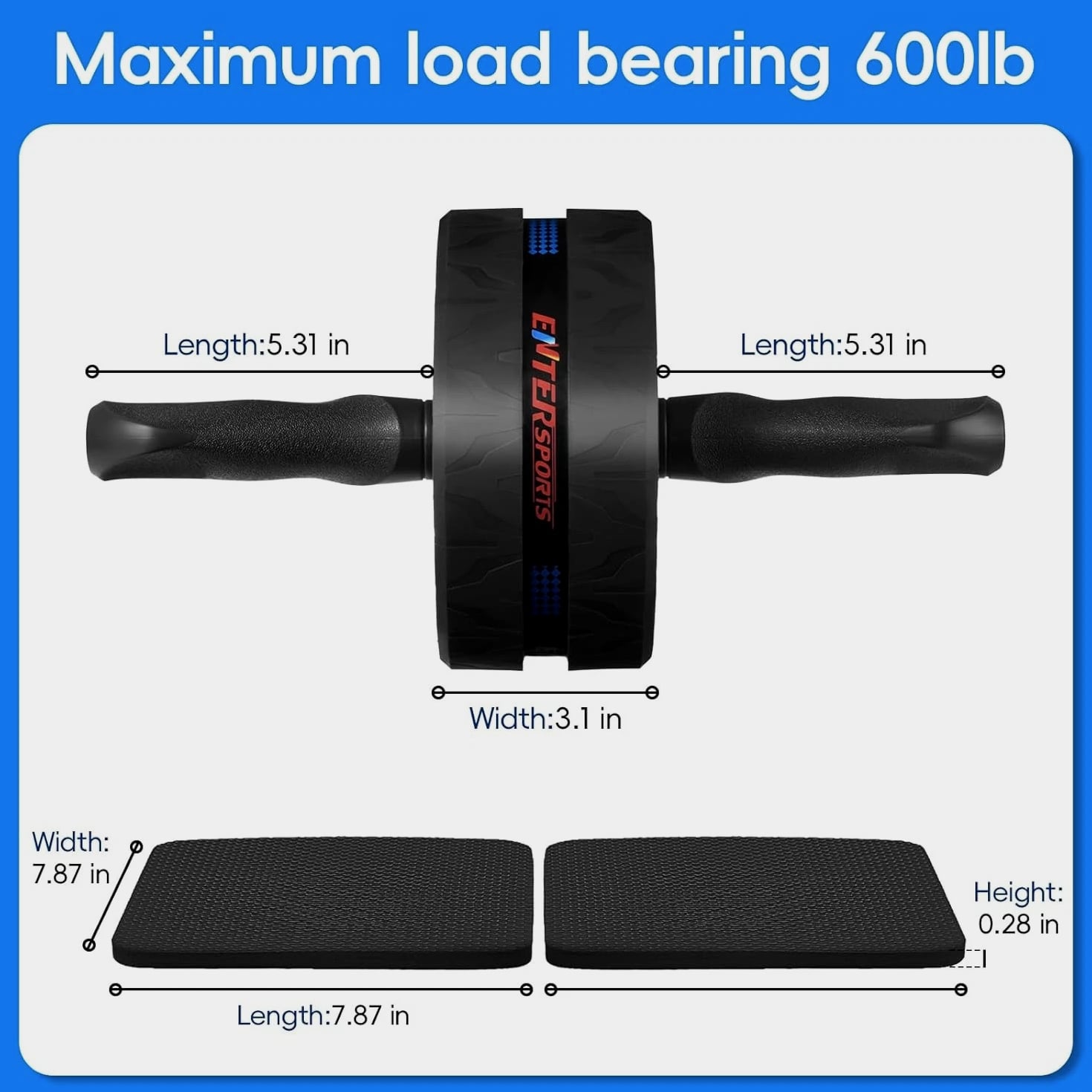 Ab Roller Wheel for Abs Workout - Abdominal Exercise Equipment with 2 Knee Pads for Home Gym, Core Strength Training, Fitness Equipment for Men & Women Extra-Wide Stability & Superior Grip: This ab roller features a 3.1-inch diameter, ensuring unparalleled stability during workouts. The textured wheel surface significantly increases friction with any floor type, preventing slips and enhancing control for a safer, more effective exercise experience. Full-Body Fitness Solution: More than just an abs workout tool, this versatile equipment engages your entire body. From core strengthening to upper body toning and even lower body involvement, it's a comprehensive fitness companion that takes your home gym routine to the next level. Premium Build Quality for Durability: Constructed with a robust stainless steel rod, this ab roller is built to last, supporting weights up to 600 pounds. This solid foundation guarantees secure and steady workouts, making it suitable for users of all fitness levels. Comfort-Focused Design: Ergonomically designed Nylon handles provide a comfortable, non-slip grip, reducing hand fatigue during intense sessions. Coupled with two adjustable knee pads (7.87in x 7.87in each), you can customize the width to match your comfort, protecting your knees while maximizing performance. Compact & Portable for On-the-Go Fitness: Engineered for convenience, this ab roller is compact and effortlessly portable, fitting into any gym bag or suitcase. Whether you're at home, in the office, or traveling, assemble it in just 4 simple steps and maintain your fitness regimen anywhere, anytime. Stay committed to your health goals without missing a beat. Full-Body Fitness