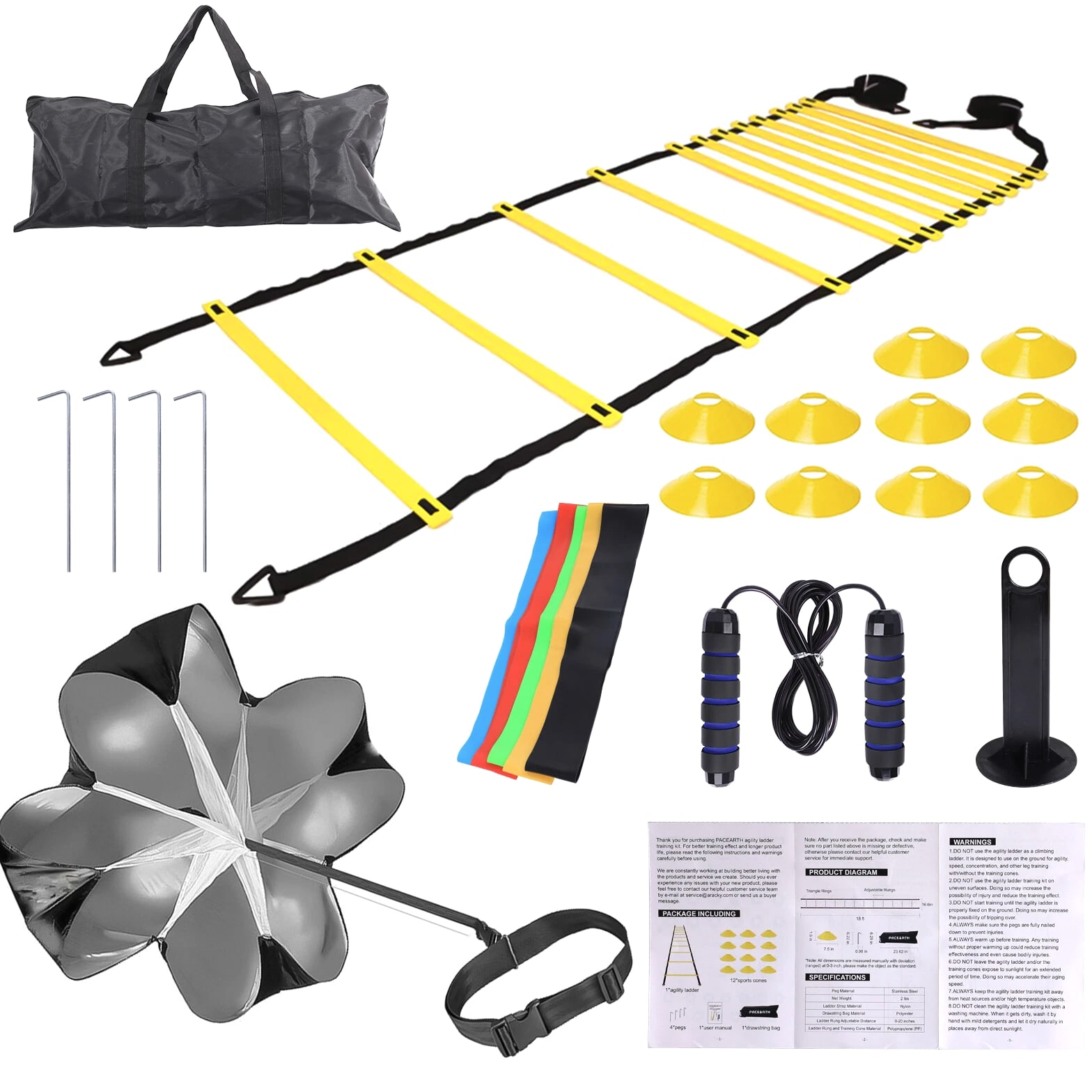 24pcs Agility Ladder and Cones Speed Training Equipment Set - Exercise Sports