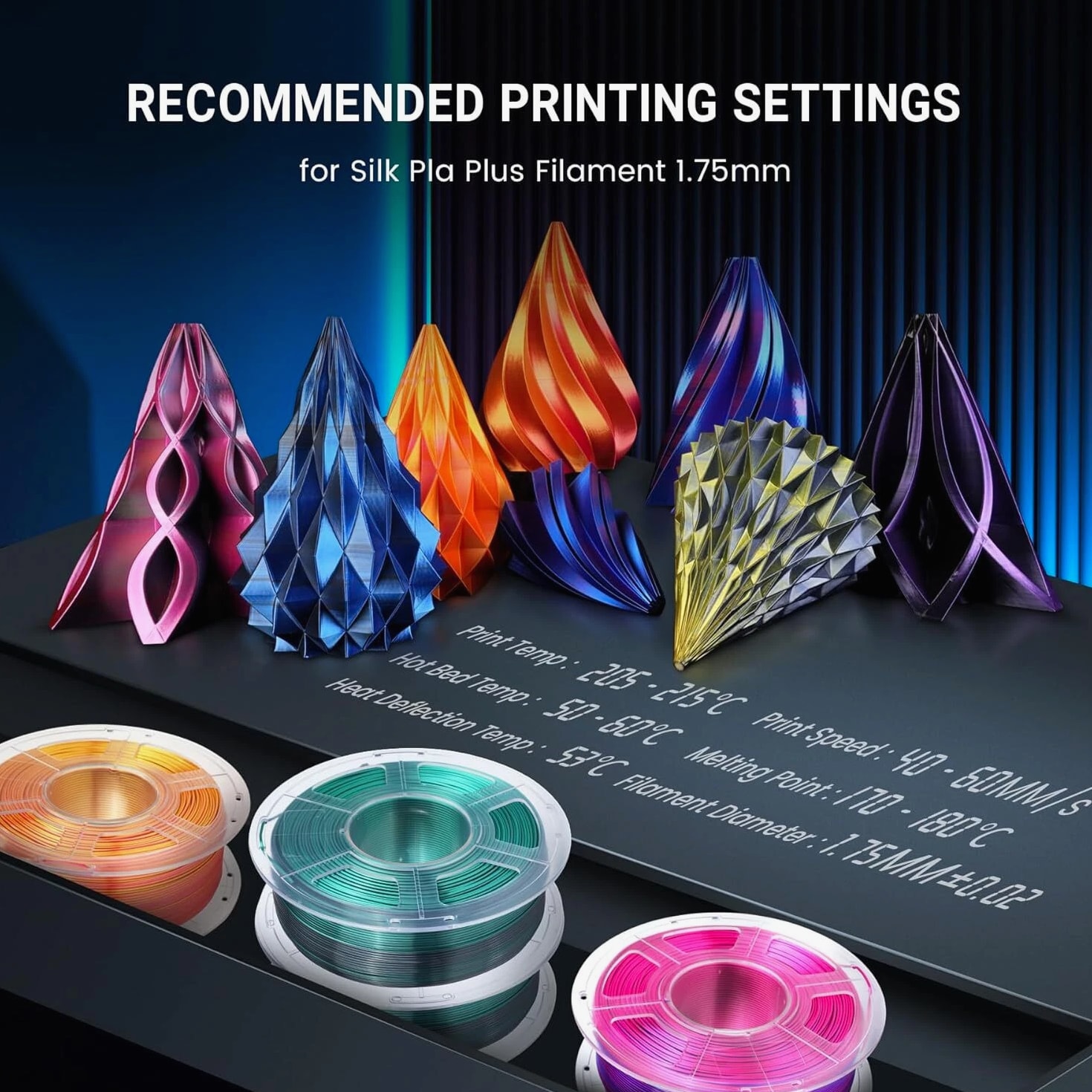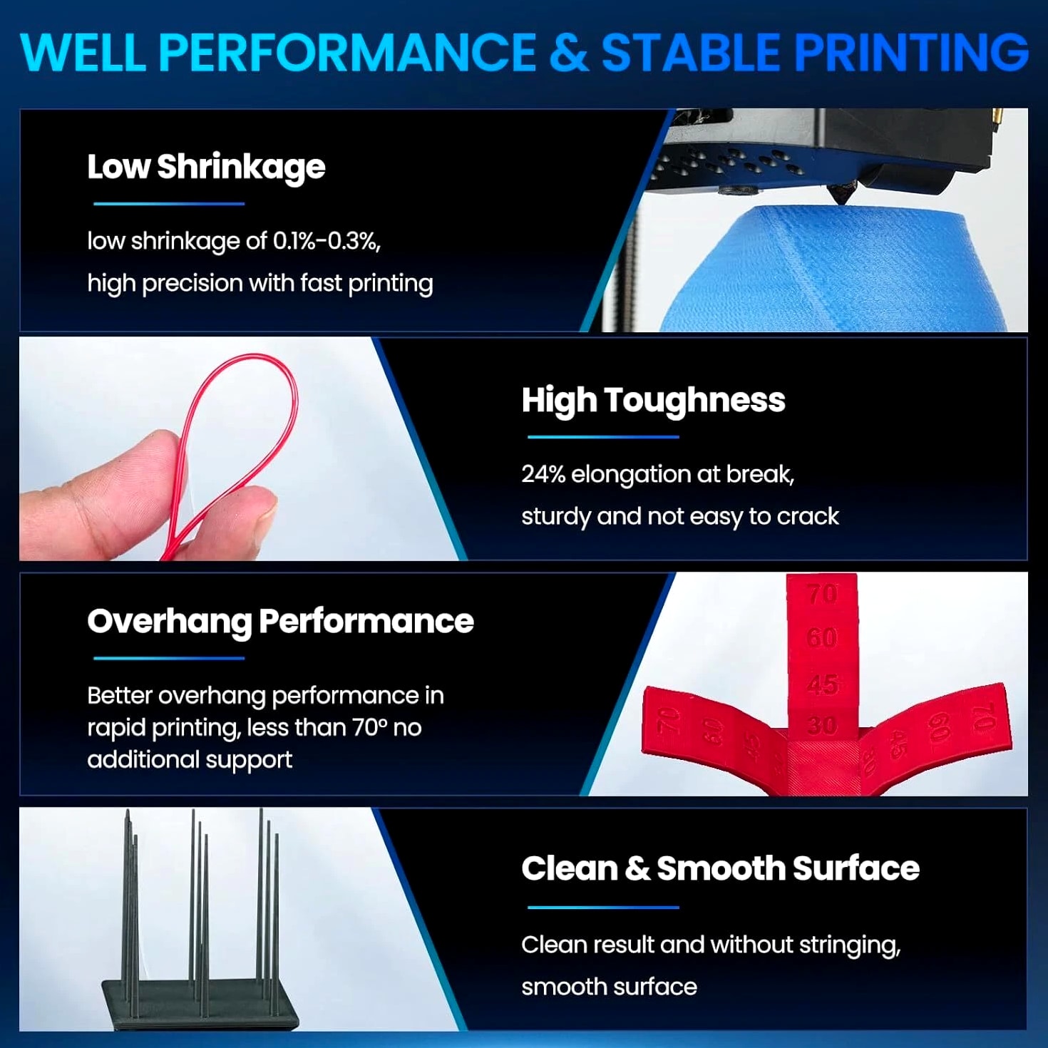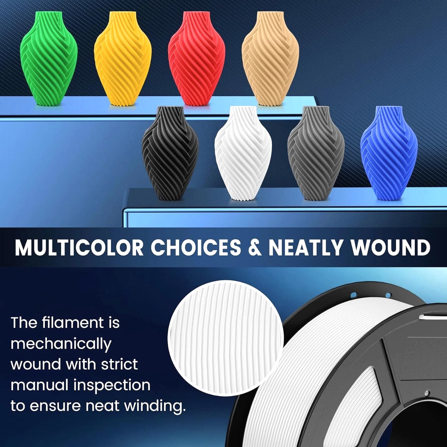 JAYO 1.1KG 1.75mm 3D Printer Filament π Tips: This "Buy 10, Pay 6" promotion requires you to add 10 items to your cart and pay for them together. Will automatically calculate the discount, so you'll only be charged for 6 items. For example: If you want to buy 10 items, add 10 to your cart and you'll only be charged for 6. If you want to buy 20 items, add 20 to your cart and you'll only be charged for 12. The Following Filaments are 100% Neatly Wound -- PLA / PLA+ / PETG / SILK / PLA Meta / PLA Matte (ABS / TPU / PLA Marble is not included.) Filament Wire Diameter Tolerance Printing Temperature Print speed Heat Distortion Temperature Print Platform Temperature Net weight 1.75MM Β±0.02mm 200-210β 50-100mm/s 53β 50-60β 1.1KG PLA+ Β±0.02mm 195-205β 50-100mm/s 50-60β 1.1KG PLA+2.0 Β±0.02mm 195-205β 50-100mm/s 50-60β 1.1KG PLA Meta Β±0.02mm 185-195β 50-150mm/s 50-60β 1.1KG PLA Matte Β±0.02mm 205-215β 50-100mm/s 50-60β 1.1KG HighSpeed PLA Β±0.02mm / 190-210β, 50-150mm/s 210-230β,150-300mm/s 230-260β,300-600mm/s 53β 50-60β 1.1KG PLA Glow Β±0.02mm 195-215β 50-100mm/s 53β 50-60β 1.1KG PLA Carbon Fibre Β±0.02mm 205-215β 40-60mm/s 53β 50-60β 1.1KG PLA Marble Β±0.03mm 210-220β 40-60mm/s 53β 50-60β 1.1KG WOOD Β±0.03mm 195-215β 40-60mm/s 53β 60-70β 1.1KG PETG Β±0.02mm 230-240β 40-60mm/s 63β 60-70β 1.1KG PLA+ SILK Β±0.02mm 205-215β 40-60mm/s 53β 50-60β 1.1KG TPUοΌ95A) Β±0.03mm 195-205β Proximal Extrusion:40mm/s Remote Extrusion:20mm/s 52β 50-60β 0.5KG TPU-SILKοΌ98AοΌ Β±0.03mm 210-220β Proximal Extrusion:50mm/s Remote Extrusion:30mm/s 131β 50-60β 1.1KG ABS Β±0.03mm 250-260β 40-60mm/s 84β 80-100β Easy ABS Β±0.03mm 225-235β 40-60mm/s 57.9β 60-70β JAYO 1.1KG PLA Filament 1.75mm Dimensional Accuracy +/- 0.02mm, Compatible with Most FDM Printers JAYO 1.1KG PLA+ Filament 1.75mm Dimensional Accuracy +/- 0.02mm, Compatible with Most FDM Printers JAYO 1.1KG Matte PETG Filament 1.75mm