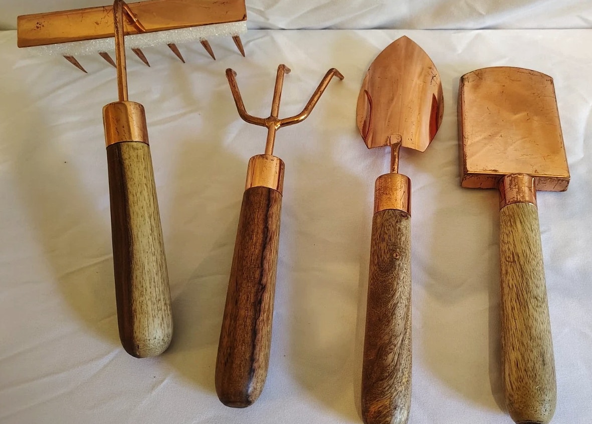 Copper & Wood Garden Hand Tools Set - 4 Pieces - Sturdy, Functional & Attractive