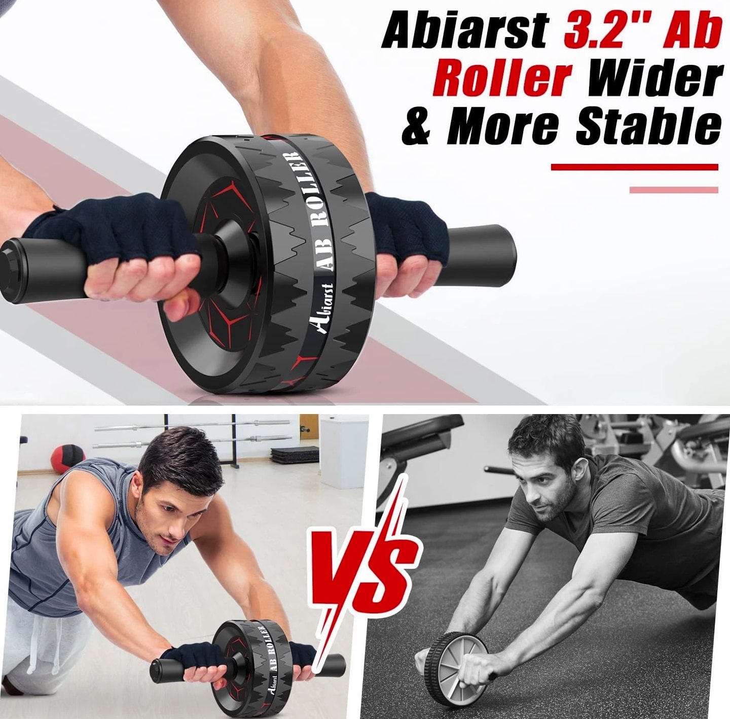ULTRA-WIDE AB WHEEL: The 3.2 inch dual-wheel ab roller provides extra support and stability compared to standard single ab wheels Amazingly Durable & Stable: The high-strength stainless steel shaft of the ab roller for abs workout can support a maximum weight of 500 pounds for your safety. EVA rubber cotton handles offer nonslip and comfortable grip Grow Eight Packs Faster & Safer: The Abiarst abs wheel targets your abdominals, hip flexors and back muscles. With consistent practice, this exercise wheel will accelerate your core & low back strengthening while reducing your risk of muscle injury Efficient Exercise Equipment: Unlike large gym machines or heavy weight benches, the Abiarst ab wheel roller features portable dimensions, a compact design enabling you to take it anywhere to exercise, whether at home, office, gym, or outdoors Ideal Gift for Fitness Enthusiasts: This workout roller goes beyond toning your abs and burning fat. As a versatile roller wheel, it makes an ideal gift for family and friends ULTRA-WIDE AB WHEEL: The 3.2 inch dual-wheel ab roller provides extra support and stability compared to standard single ab wheels Amazingly Durable & Stable: The high-strength stainless steel shaft of the ab roller for abs workout can support a maximum weight of 500 pounds for your safety. EVA rubber cotton handles offer nonslip and comfortable grip Grow Eight Packs Faster & Safer: The Abiarst abs wheel targets your abdominals, hip flexors and back muscles. With consistent practice, this exercise wheel will accelerate your core & low back strengthening while reducing your risk of muscle injury Efficient Exercise Equipment: Unlike large gym machines or heavy weight benches, the Abiarst ab wheel roller features portable dimensions, a compact design enabling you to take it anywhere to exercise, whether at home, office, gym, or outdoors Ideal Gift for Fitness Enthusiasts: This workout roller goes beyond toning your abs and burning fat. As a versatile roller wheel, it makes an ideal