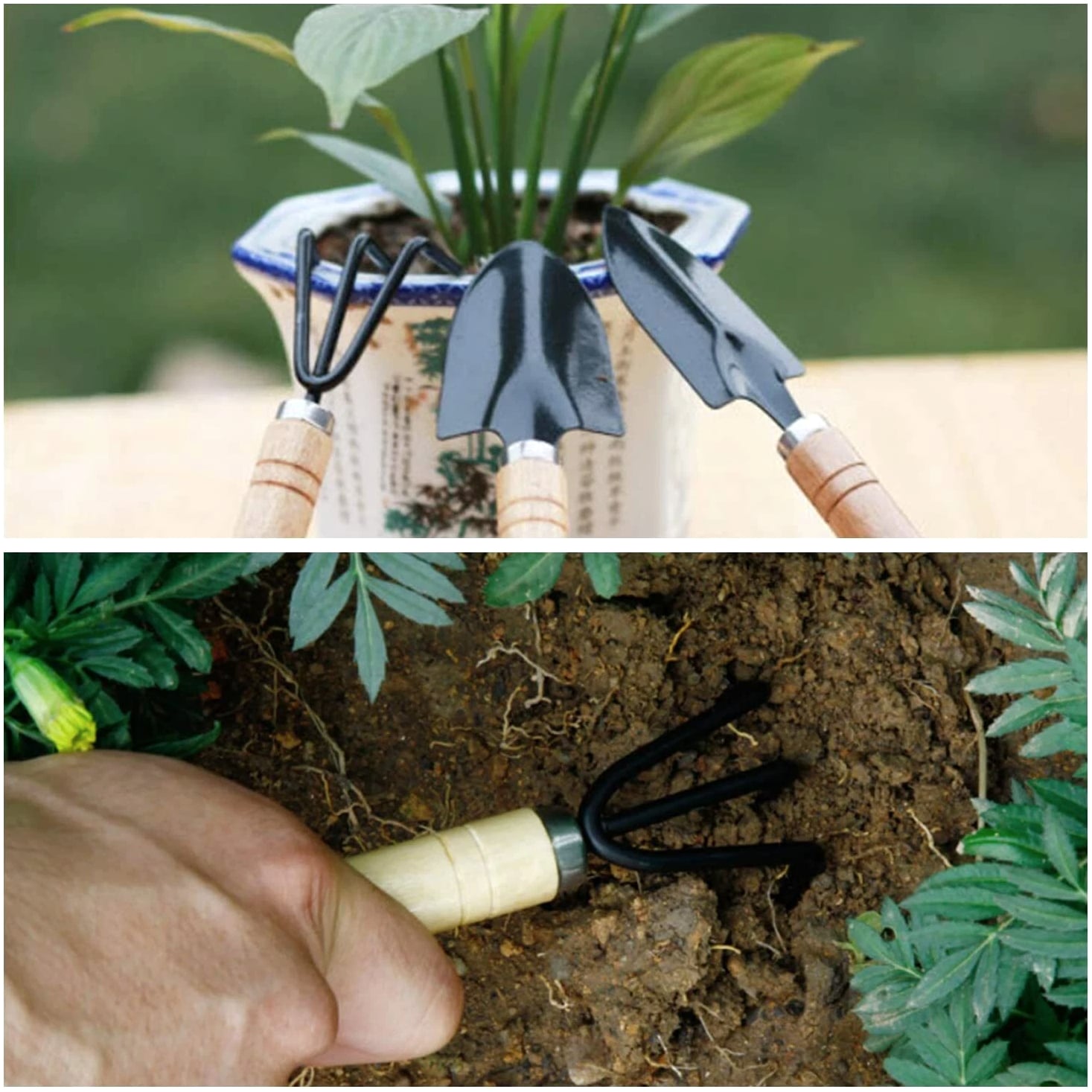 3 Pcs Garden Tools Set Mini Trowel Rake Shovel For Small Pot Plants Home Kit