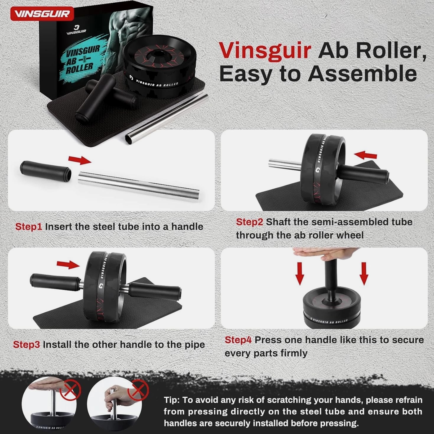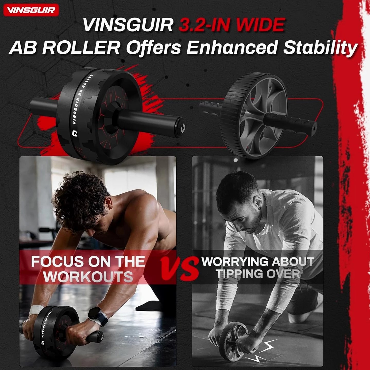 【More Accessible & Hassle Free】The 3.2 inch dual-wheel ab roller offers extra support and stability compared to the common single ab wheel. Equipped with a knee pad, this ab roller wheel delivers comfortable workout experience and caring protection. Just embrace the freedom of more thrilling and challenging routines without the hassle of using resistance bands! 【Grow Six Packs Faster & Safer】The Vinsguir abs wheel targets your abdominals, hip flexors and back muscles. With dedicated practice, this exercise wheel will speed up your core & low back strengthening while lessening your risk of muscle injury. 【Efficient Exercise Equipment】Unlike big gym machines, or heavy weight benches, dumbbells and the like, the Vinsguir ab wheel roller is portable size-wise -- a compact design that enables you to take it anywhere to exercise, be it your home, office, gym, or outdoors. 【Amazingly Durable & Stable】The high-strength stainless steel shaft of the ab roller for abs workout can hold a maximum weight of 440 pounds for your safety. The 3.2 inch ultra-wide abs roller ensures balance and stability as it does not deviate sideways. EVA rubber cotton handles provide nonslip and comfortable grip. 【Top Gift Choice for Fitness Enthusiasts】This workout roller goes beyond working your abs and burning your fat. As a versatile roller wheel, it is ideal when it comes to selecting a gift for your family and friends; not to mention the satisfaction guaranteed after-sales services. Wish you a joyful shopping experience!