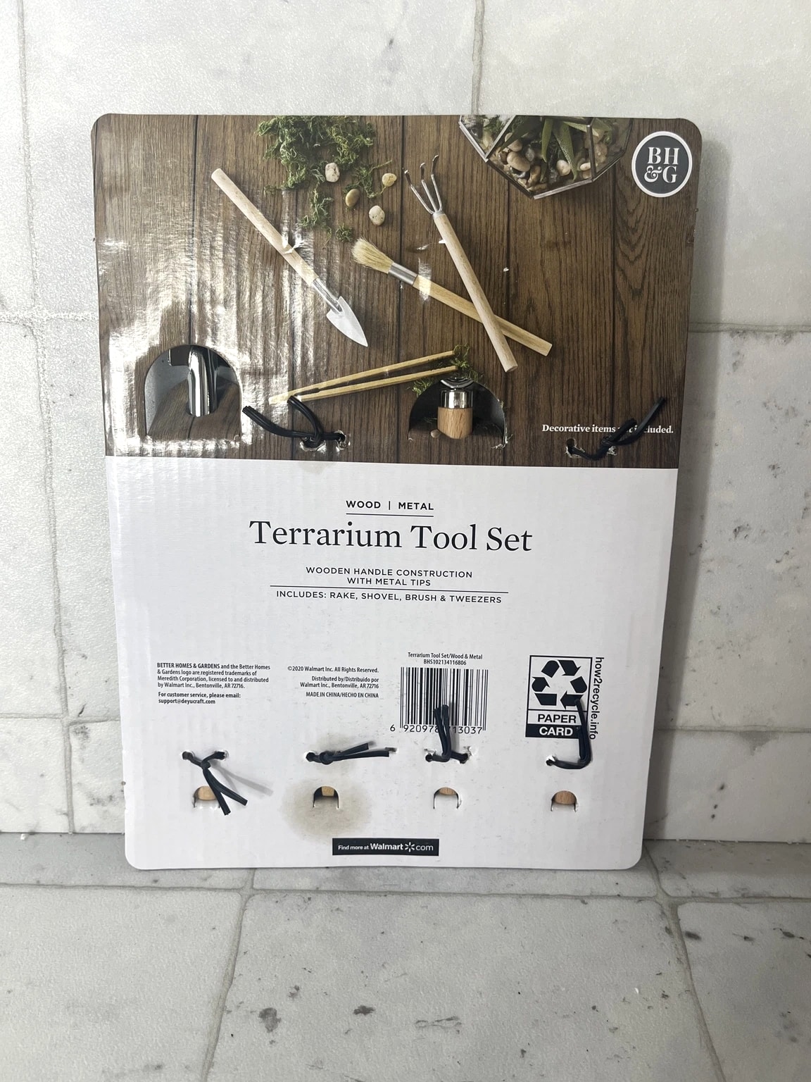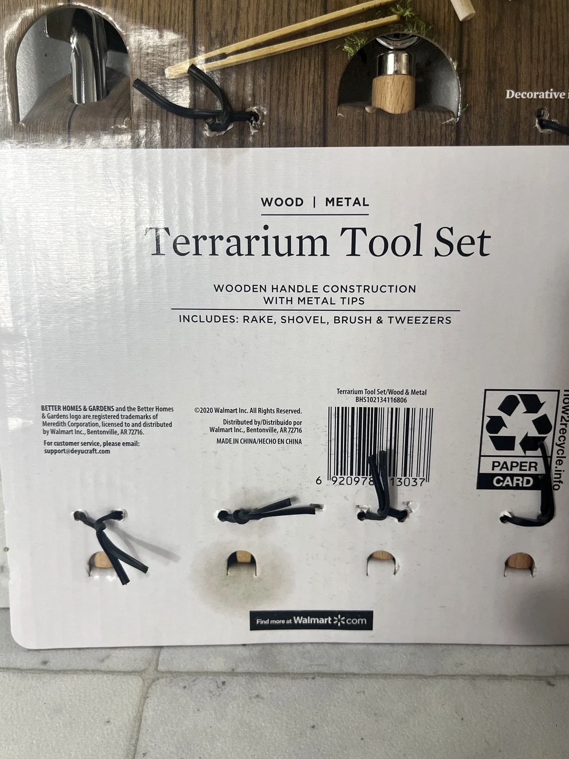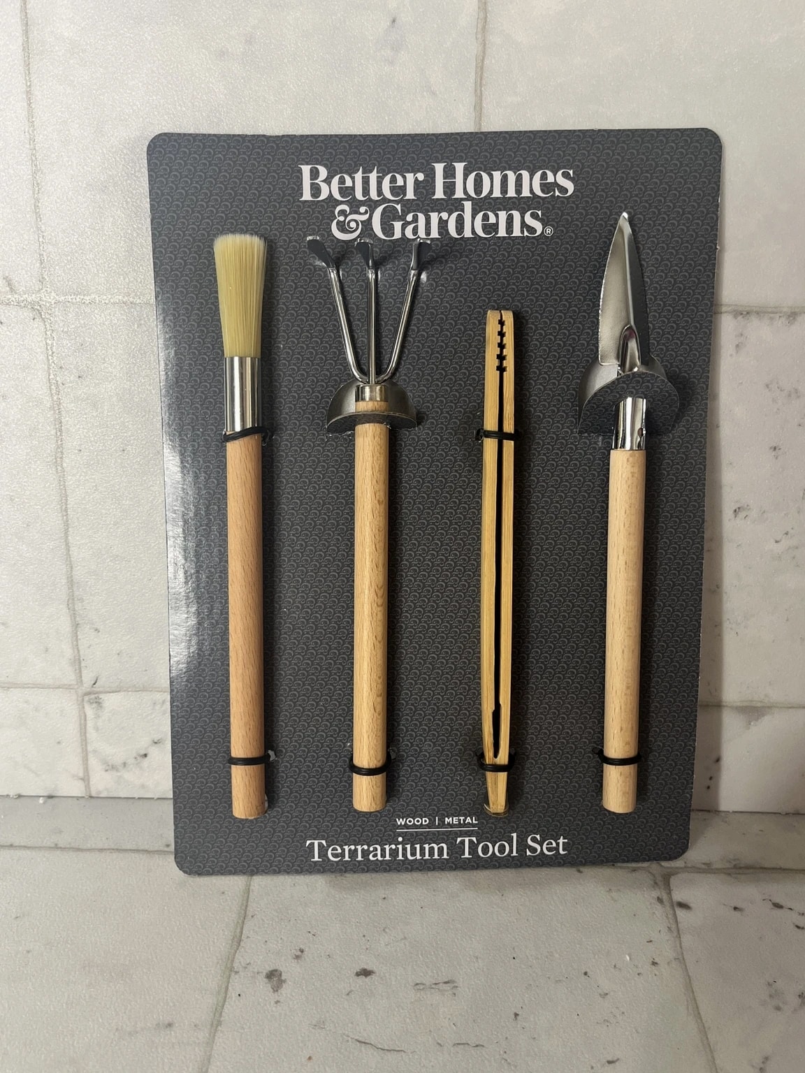 Better Homes & Gardens Terrarium Tool Set - Wood Metal Rake, Shovel, Brush, Tweezers