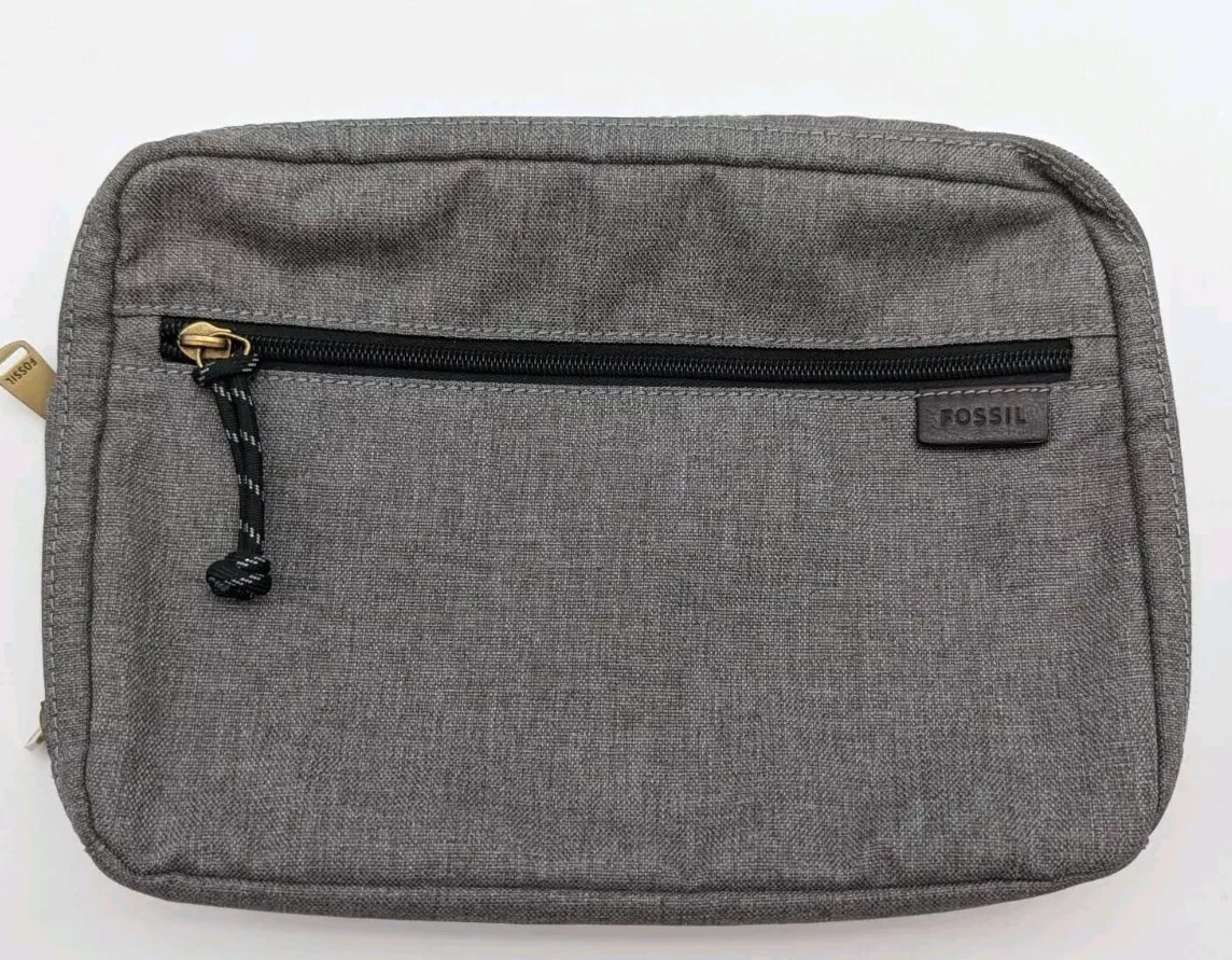 Fossil Travel Personal Organizer Bag Gray Electronics Gadgets 10" x 7" x 2"