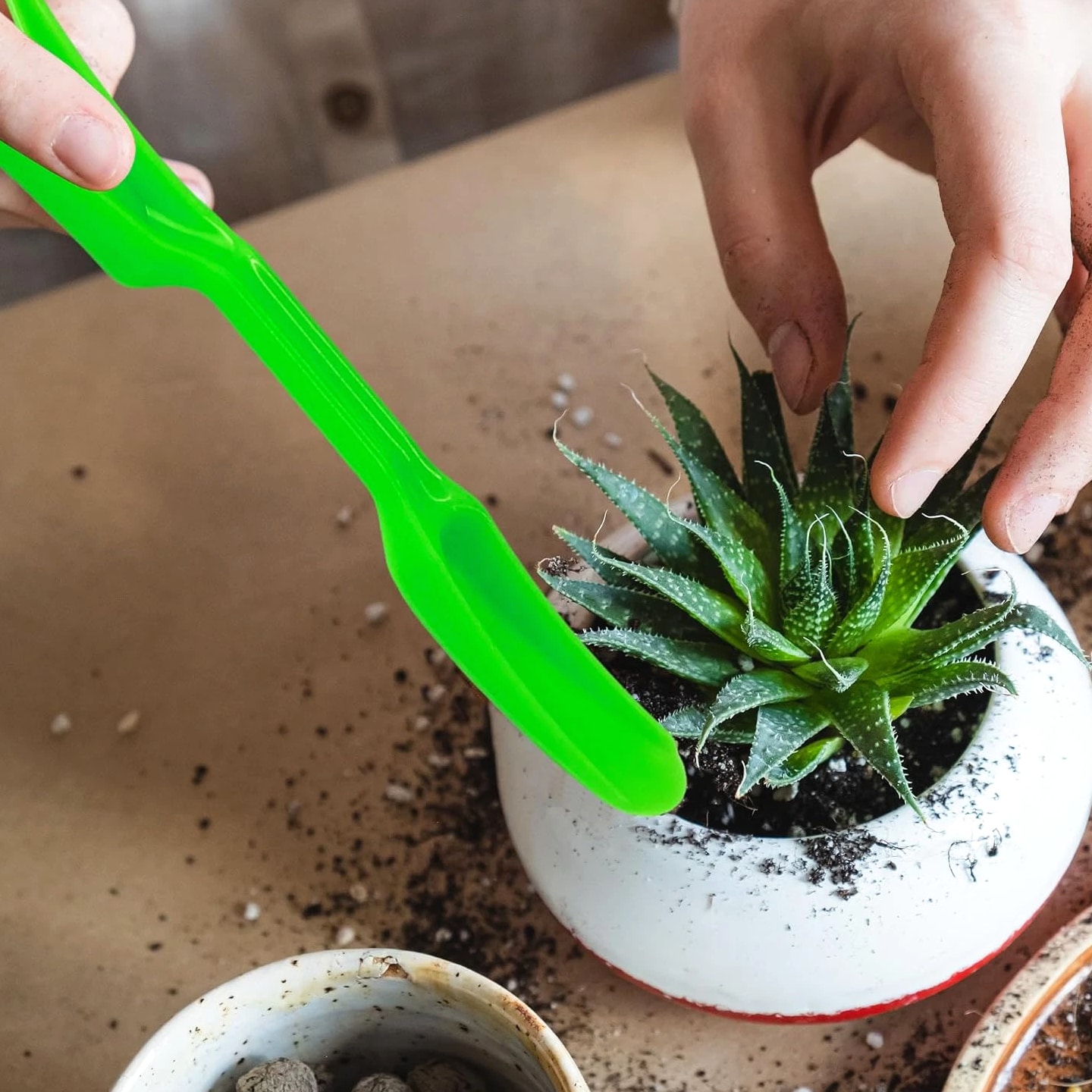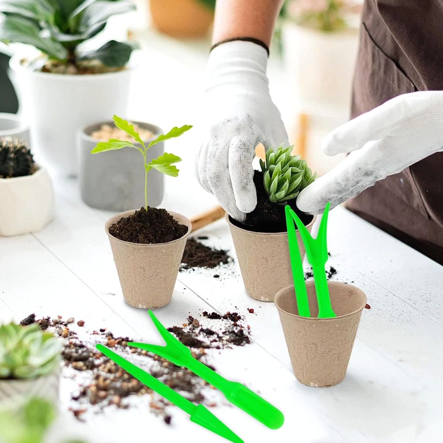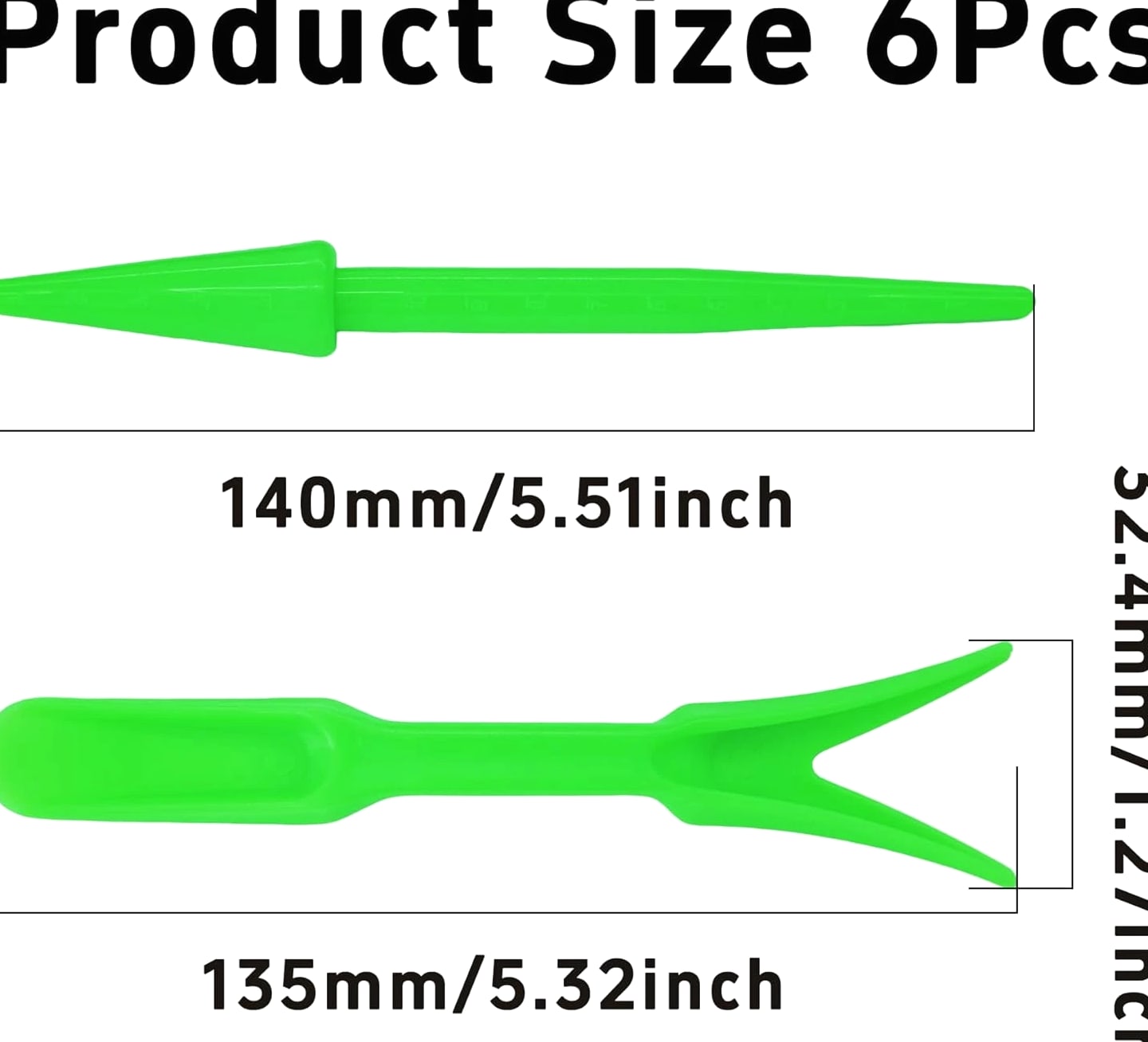 Package Including: You will receive 6 Pcs Mini Garden Hand Succulent Transplanting Tools. Transplanting widger for delicate plant handling and seedling dibber for precise planting and sowing. Strong and Lightweight Material: Made from high-quality plastic, these transplanting tools resist breakage and provide long-lasting performance for all your indoor gardening needs. Versatile Gardening Applications: Ideal for succulent planting, seedling transplanting, soil loosening, and potting, this set suits home plant care, repotting, and lawn maintenance tasks. Ergonomic and Comfortable Grip: Each tool features an ergonomic handle design for a firm, comfortable hold, making precise digging, sowing, and transplanting easy and effortless. Compact and Easy to Store: The mini size of these garden hand tools makes them convenient to carry, use, and store, perfect for both small plant pots and larger indoor gardening projects. Product Description: Features: High Quality Plastic Construction: Made from strong plastic, these tools are designed to withstand daily use for succulent planting and seedling transplanting. Comfortable to Hold: Ergonomic handles offer a secure and comfortable grip, making digging and repotting easy for extended gardening sessions. Perfect for Indoor Plants: Ideal for indoor gardening, these mini tools help with soil loosening, potting, and precise care for small plants and succulents. Easy to Store and Carry: Compact and lightweight, the set is simple to store and transport, suitable for both home use and gardening on the go. Product Specifications: Material: PP Color: Green Size: 14cm Package contains: 6 Pcs Mini Garden Hand Succulent Transplanting Tools. NOTE: Please allow 1-2mm difference between actual and manual due to manual measurement. The color you actually see may be slightly different due to different displays.