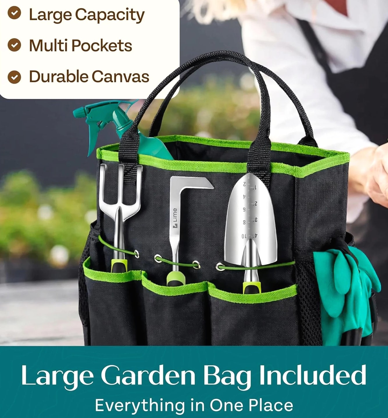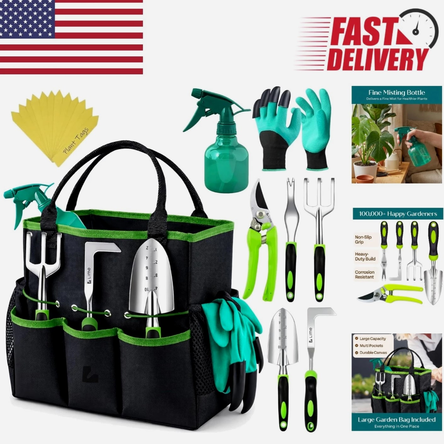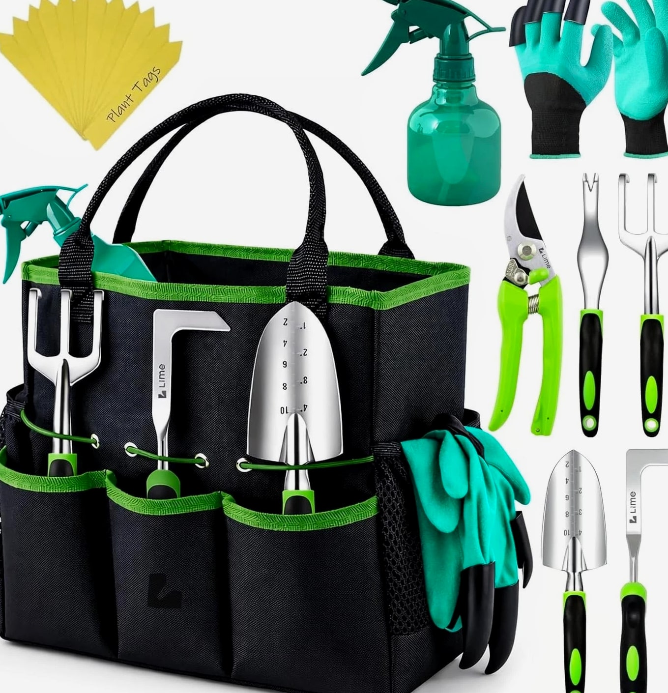 Ergonomic Gardening Tools Set - Complete Kit for Home Gardeners & Enthusiasts Perfect Gift for Garden Lovers Looking for the ultimate gift for the gardening enthusiast in your life? Our Ergonomic Gardening Tools Set is the answer! Designed for both men and women, this gardening kit is perfect for anyone who loves nurturing their green space. With rust-proof and durable tools, it ensures your loved ones have everything they need for a flourishing garden. This thoughtful gift is ideal for a wife, mom, daughter, or grandma. All-in-One Gardening Solution This complete gardening tool set includes: Spray Bottle Shovel Crack Weeder Hand Rake Weeder Pruner 15 Plant Tags A Pair of Hand Gloves Heavy Duty Garden Bag With everything needed to maintain a beautiful and healthy garden, you'll find your gardening experience more enjoyable and efficient. Durability You Can Trust Crafted from high-quality aluminum alloy, our gardening tools are strong, durable, and resistant to rust and corrosion. Lightweight yet robust, they reduce hand fatigue while allowing you to garden with ease. Plus, eco-friendly and non-toxic materials ensure a sustainable gardening experience. Ergonomic Design for Ultimate Comfort Say goodbye to sore hands! With an ergonomic handle design, our tools provide comfortable grip that minimizes hand fatigue, even during arduous gardening tasks. The soft yet sturdy handle ensures secure grip and prevents slipping, allowing you to perform delicate tasks with confidence. Convenient Garden Bag Keep your gardening tools organized and easily accessible with our spacious garden tote. The tote features ample room for all your tools, making it easy to carry everything out to the garden.