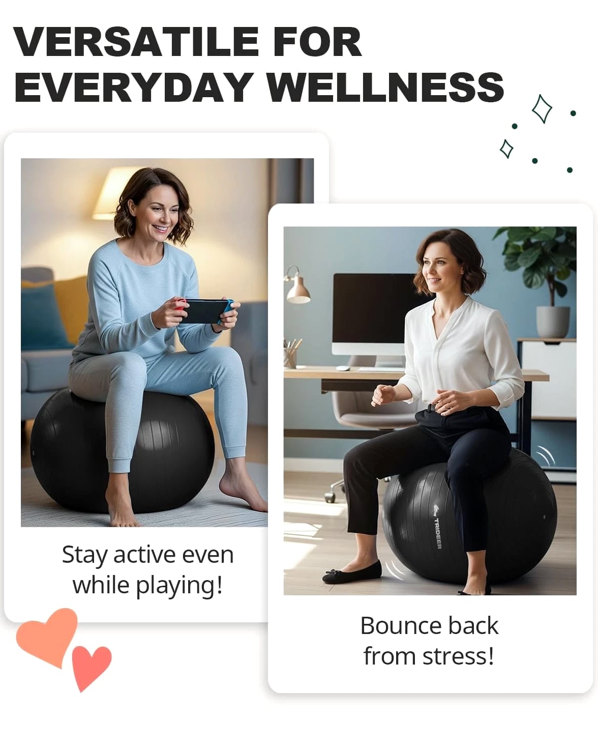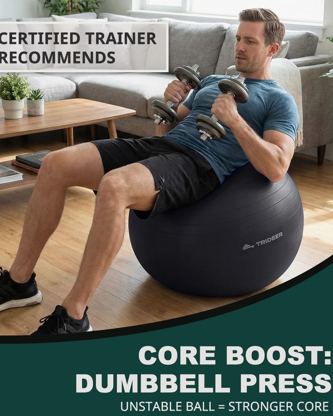Trideer Exercise Ball for Yoga, Pilates & Fitness - Stability Ball Equipment
