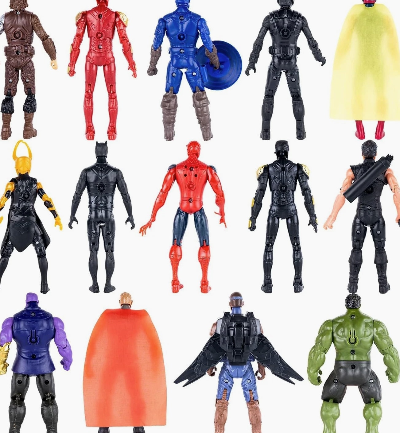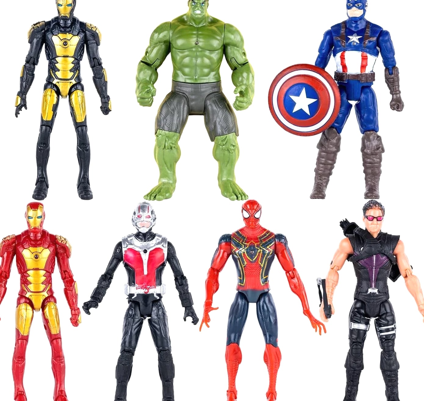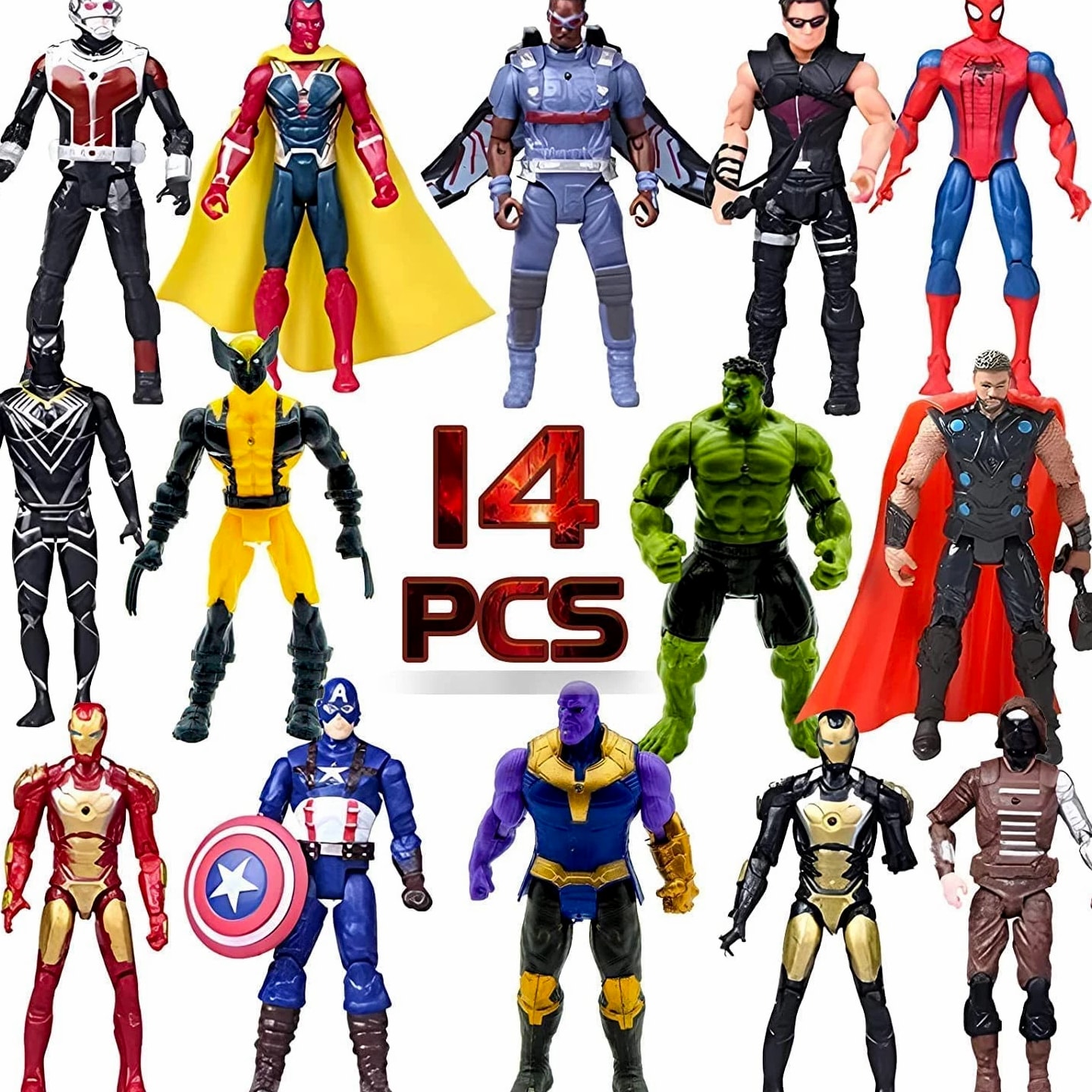 14 pcs big set superhero action figures – collectible models 6.5 inches tall, exclusive set superhero toys, holiday gift for kids, figure cake topper. Superhero Toys Set includes movable joint toys of Ironman, Spiderman, Vision, Falcon, Black Panther, Star-Lord, Ant-man, Hawkeye. They inspire imaginative play and curiosity. Superhero toys bring unlimited joy. The Titan Heroes are 6.3 inches tall each and are perfect for action figure collectors and enthusiasts. These Superhero Action Figures make a good addition to any collection or a nice accent for home interior. Playset for kids: Superhero toys present famous characters. Recommended for children from 6 years old to play on their own or together with other children and adults. Articulated toys recreate actions from favorite cartoons. Quality: These movie figurines are made of quality plastic and have multiple points of articulation. The figures are carefully designed, using abrasion-resistant paints. Each character has its iconic weapon and equipment. They inspire imaginative play and encourage creativity. The Superhero set brings unlimited fun and joy.