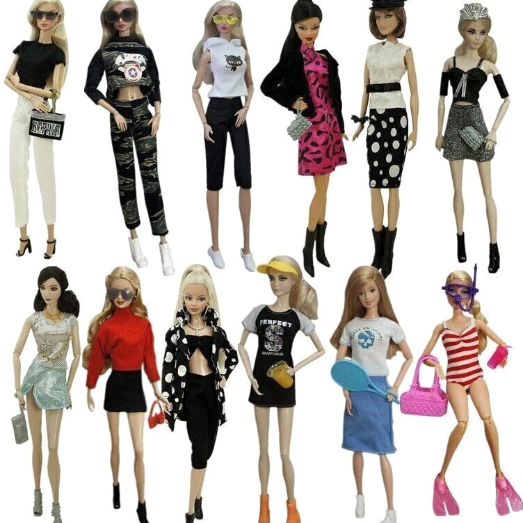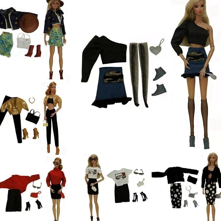 Fashion 11.5" Doll Outfits For Clothes Set Shirt Coat Jacket Skirt Dress Crop Pants Shoes Glasses Hat 1/6 BJD Accessories. Fits dolls approximately 11.5"(28cm-30cm) height. Clothes only, doll not included. Package includes 1 clothesset with accessories as pictured. Monitor color variations may occur. Thanks for understanding.