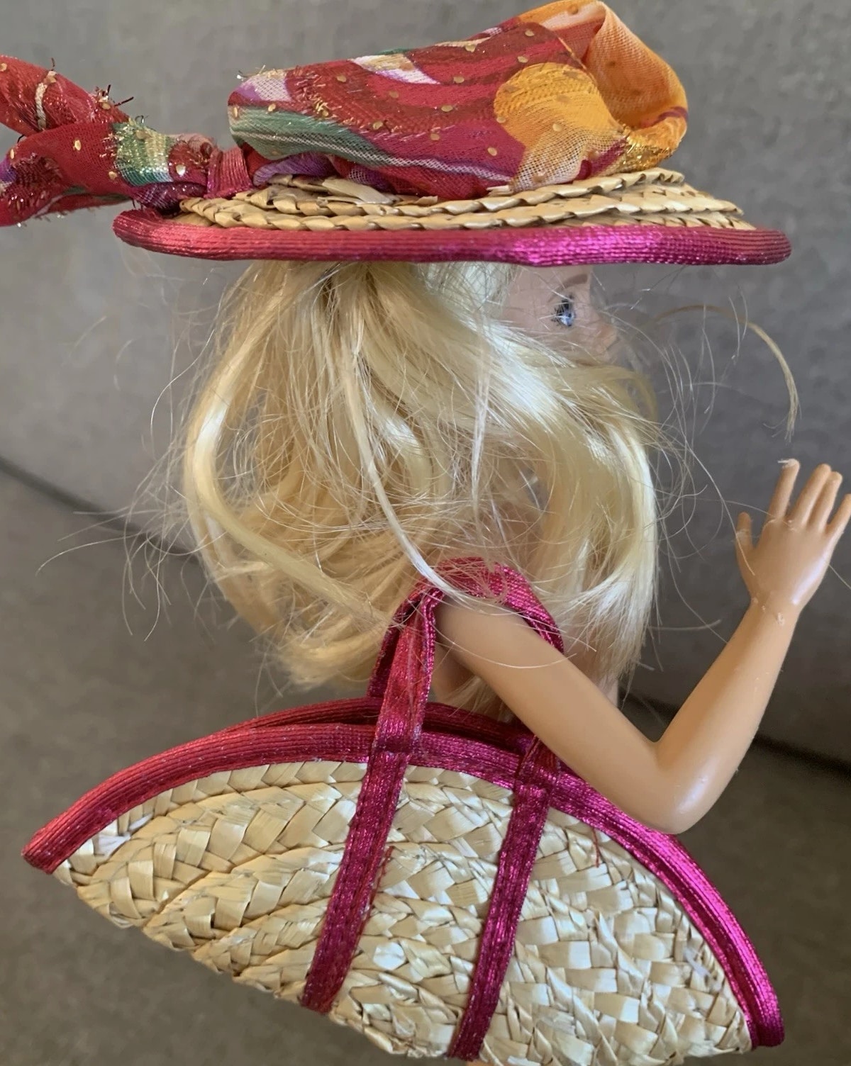 Barbie Doll Sized Straw Hat and Matching Tote Purse. Doll not included.