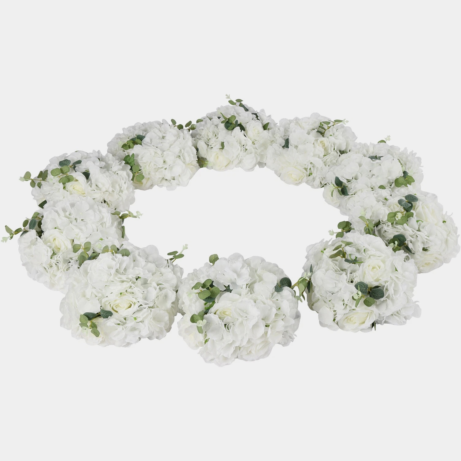 10 Pcs Handmade Artificial Flower Balls for Weddings, Parties, Events Transform your special occasions into unforgettable memories with our exquisite Flower Balls! Perfect for weddings, graduations, birthdays, and more, these stunning decorations will add a touch of elegance to any event. 🌹 High-Quality Material: Crafted from durable silk cloth and plastic, our Flower Balls resist deformation and fading, ensuring they remain beautiful for years to come. This enduring quality symbolizes everlasting love. Handmade Craftsmanship: Each Flower Ball is meticulously handmade, representing heartfelt blessings and enhancing its beauty while making maintenance a breeze. Symbolic Design: Featuring six roses and six hydrangeas, these Flower Balls embody warmth, purity, and eternal love, helping you create cherished memories. Ready to Use: No assembly required! Simply unpack and enjoy the vibrant colors that brighten your significant moments. Versatile Decoration: Use them as desktop accents, wall hangings, or combine multiple Flower Balls for a stunning centerpiece. Cost-Effective Choice: With ten sets included, these reusable Flower Balls save you money and eliminate worries about pollen allergies. They require no water or sunlight, making them easy to care for. Our Flower Balls are not just decorations; they are atmosphere creators! They can enhance any setting, from weddings to birthday parties, and even holiday celebrations. The addition of green vines makes them even more lifelike and visually appealing. 🌿 Specifications: Color: White Material: Silk Cloth + Plastic Manufacturing Process: Purely Handmade Shape: Hemispherical Number of Items: 10 Flowers per Ball: 6 Roses, 6 Hydrangeas, 4 Leaves Net Weight: 3 kg / 6.61 lbs Gross Weight: 3.6 kg / 7.94 lbs Product Size: 40 × 40 × 20 cm / 15.75 × 15.75 × 7.87 inches Diameter of Base: 20 cm / 7.87 inches Package Size: 50 × 60 × 30 cm / 19.69 × 23.62 × 11.81 inches What's Included: 10 Flower Balls Usage Tips: Adjust the flowers as desired for personalized arrangements