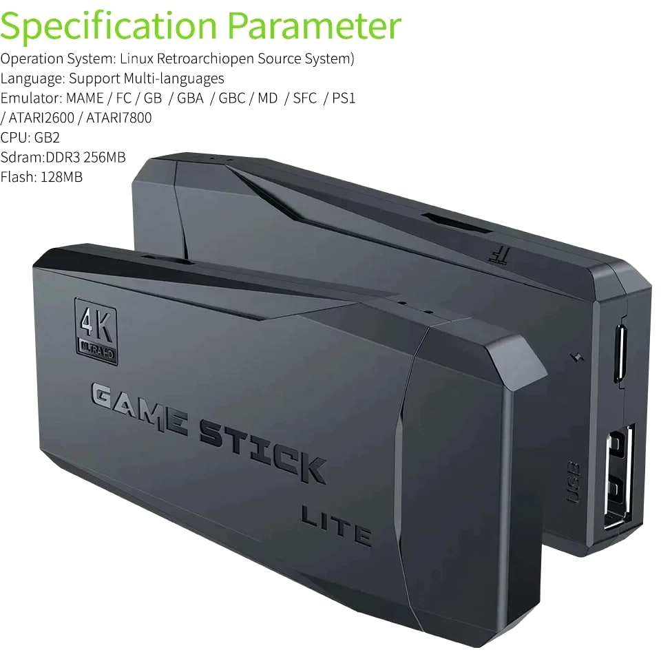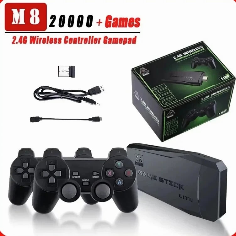 M8 Game Console Built-In 20000 + 64GB Two-Person Wireless Controller 2.4G Joystick 4K HD PS1 GBA Video Children's Christmas Gift Video Game Controller included : YES Type of devices : other Removable/Replaceable Battery : YES Bluetooth-compatible : NO Wi-fi : no Games included : 20000 Category : Video Game Console Size : 16.5cm*11.8cm*11cm Weight : 380g Supporting Language : japanese,FRENCH,English,Latin American Spanish,Brazilian Portuguese,Simplified Chinese Package : Yes Origin : Mainland China • 4K HD Gaming Experience: Experience the best in gaming with the M8 Console's 4K HD resolution, offering crisp and vibrant visuals that bring your favorite games to life. • Built-in 20000+ 64GB Storage: With its impressively large built-in storage of 20000+ 64GB, this console ensures you have ample space for all your favorite games and applications. • Wireless Controller: Enjoy seamless gaming with the included wireless controller, offering 2.4 G connectivity for a lag-free gaming experience. • Two-person Gameplay: Designed for two players, this console allows for fun and competitive gaming sessions, perfect for siblings or friends. • PS1 GBA Video Support: This console also supports PS1 and GBA videos, making it a versatile entertainment device for children and adults alike. • Ideal Christmas Gift: With its stylish design and impressive specs, this console makes an ideal Christmas gift for any avid gamer. Language: Multi-language Support Gaming emulator Package List : 1x Game Console, 2x Wireless Gamepads, 1x USB Receiver, 1x Power Cord, 1x HD-Compatible Extension Cable Game Download Support: This game console supports gamers to search games, supports gamers to customize their favorite games and can play and download games by themselves. Equipped with a wireless dual joystick, you can play all the excellent games, let you enjoy the game more, let you remember quickly and enjoy childhood joy! If you need a game list, please contact customer service for the game list