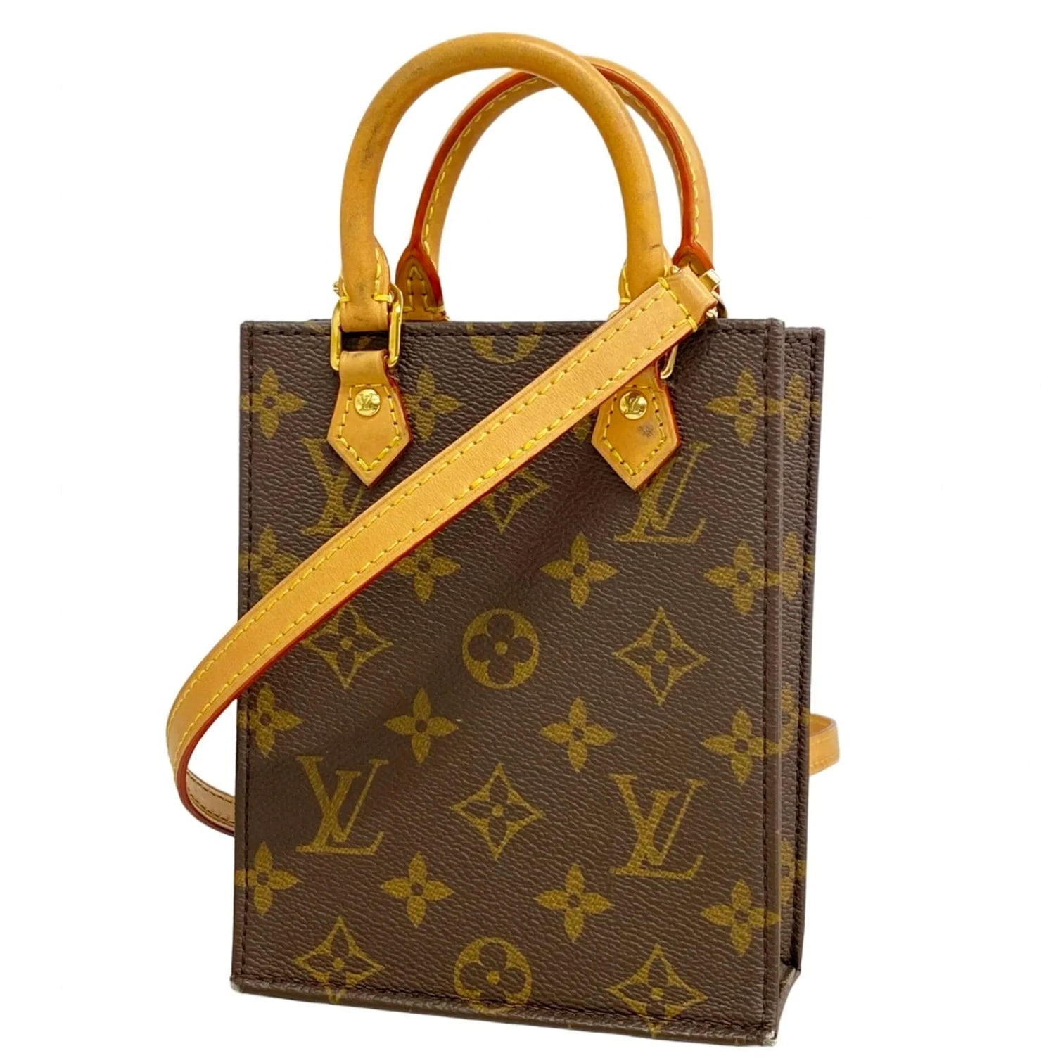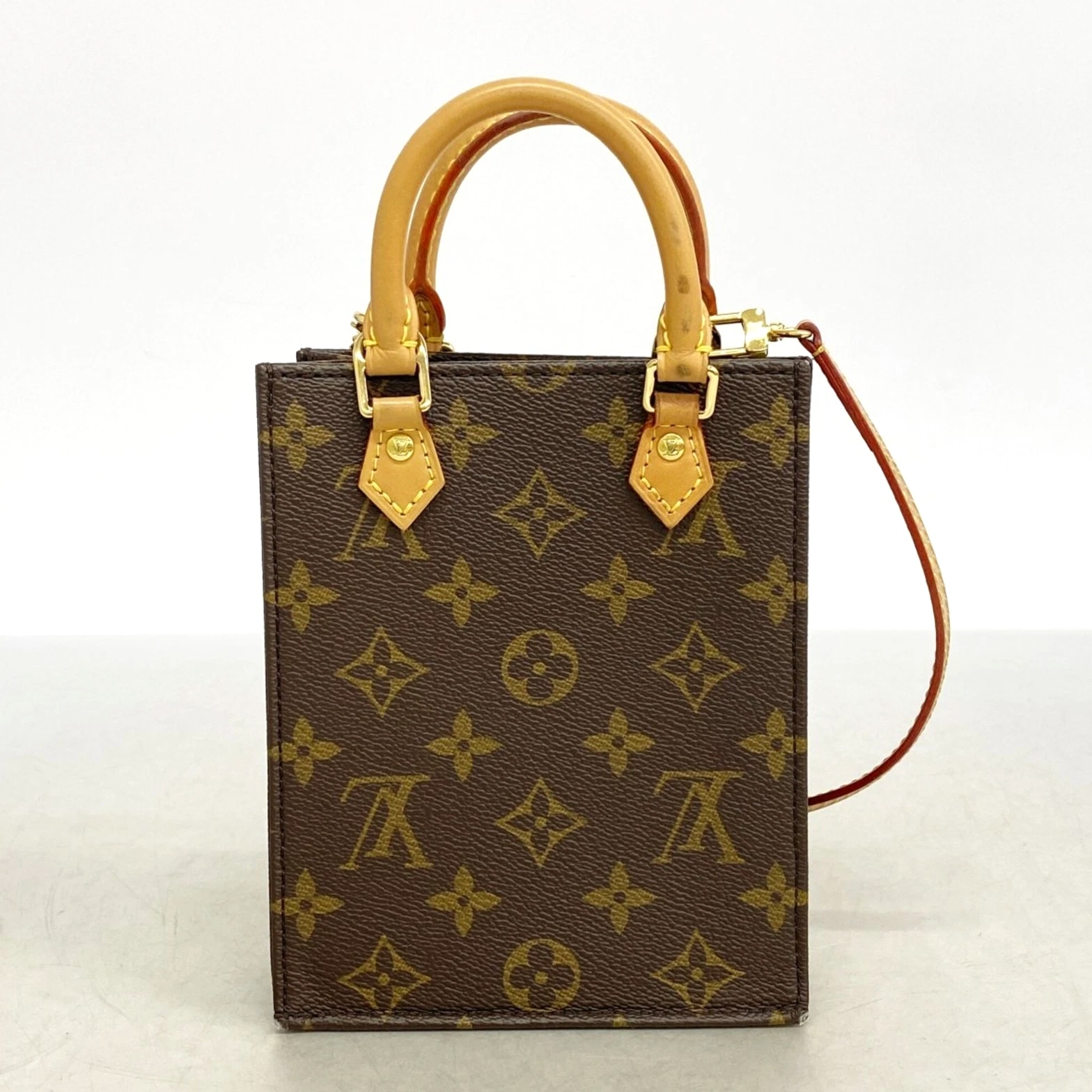 Louis Vuitton Monogram Petite Sac Plat Handbag M81295 Brown 2-Way
