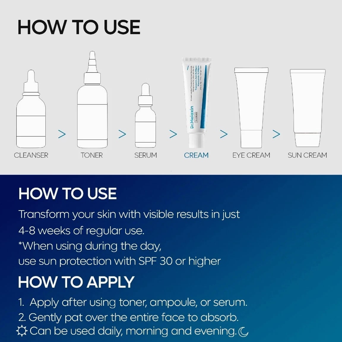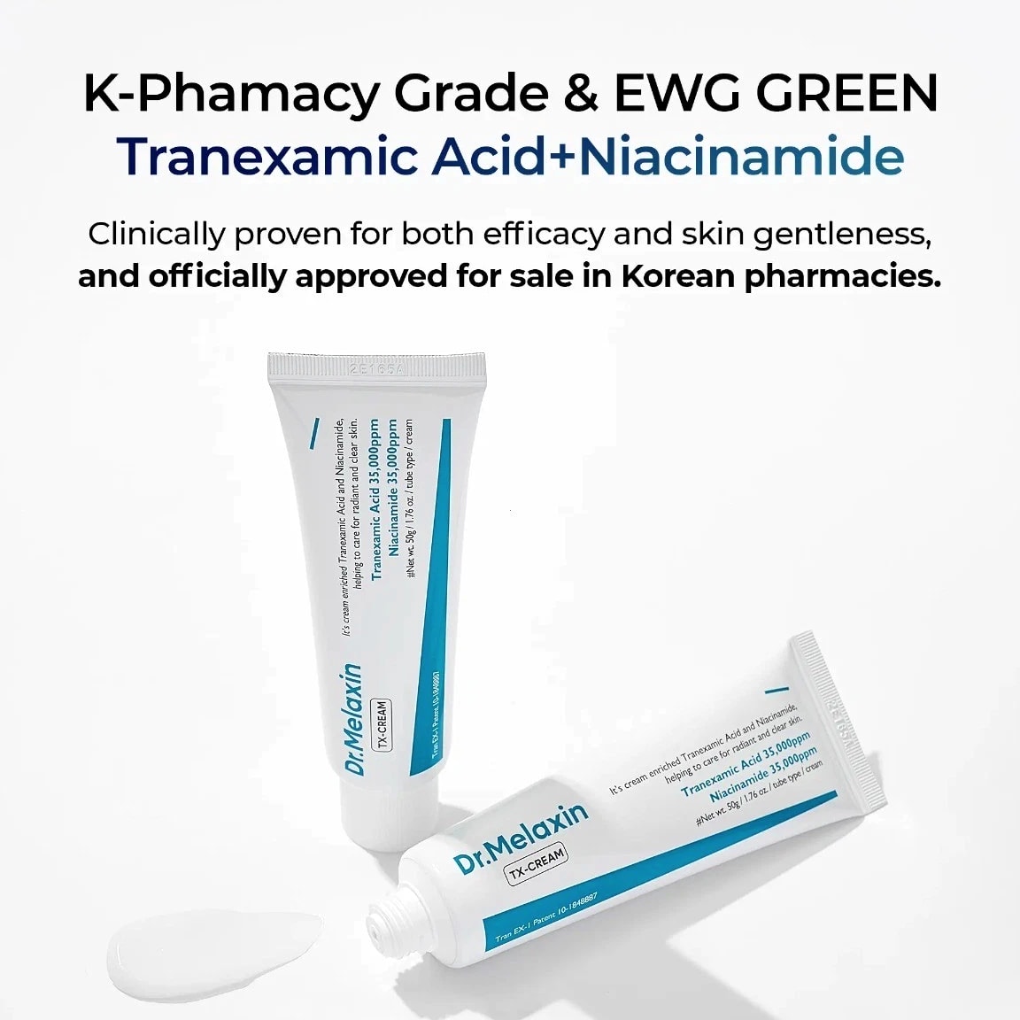 ✨ Key Benefits Targets Dark Spots & Hyperpigmentation: 35,000ppm tranexamic acid visibly fades dark spots, post-acne marks, and discoloration at the source. Brightens & Evens Skin Tone: 35,000ppm niacinamide reduces dullness and uneven tone for a radiant complexion. Antioxidant Protection: Glutathione lightens pigmentation and protects against environmental stressors. 🧪 Key Ingredients Tranexamic Acid (35,000ppm): Targets melanin production to fade dark spots. Niacinamide (35,000ppm): Brightens skin tone and strengthens the skin barrier. Glutathione: Powerful antioxidant that lightens pigmentation and boosts radiance. 📋 How to Use Apply after toner, ampoule, or serum in your skincare routine. Gently pat the cream over your entire face until absorbed. Use daily, morning and evening. If using during the day, always apply SPF 30+ afterward. Visible results in 4–8 weeks with regular use.