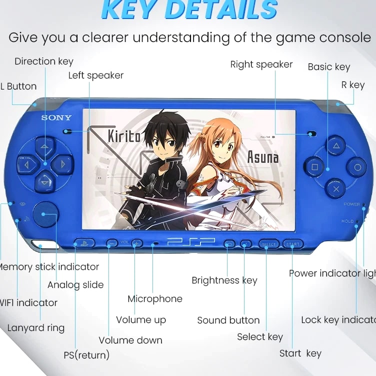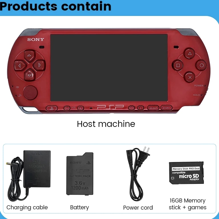 Original Sony PSP 3000 Handheld Game Console (PSP-3006) PSP3000 Gaming Console (Including Games) Due to the paint surface of the product, changes in light can cause color deviation. If you cannot accept it, please do not purchase. The PSP3006 is a special edition of the Sony PSP3000. Increased body capacity and broader compatibility. 1. The controller we sell has been previously used, and this link is an official refurbished product from Sony. This means using brand new accessories to replace the shells and buttons of these old machines, making their appearance more attractive. However, yellowing and small black or bright spots may inevitably appear on the screen, which will not affect functionality. If you mind this issue, please do not make a purchase! thank you. 2. The system language defaults to English. You can also set other languages yourself. PSP can use 12 system languages (excluding Russian), including the following language options: German, English, Spanish, French, Italian, Dutch, Portuguese, Filipino, Japanese, Korean, Simplified Chinese, and Traditional Chinese. 3. At present, the machine has been unlocked. Regarding the UMD disk function, no testing will be conducted, so its availability cannot be guaranteed. Please note that! Before making a purchase, please be aware of the unknown status of UMD functionality. If you have a demand for UMD functionality, please do not make a purchase. 4. Please use a 5V 1A low-power charger to charge the console. 5. Each machine will install different games. Games are free. If prompted to upgrade the system version during play, please ignore it. Otherwise, upgrading the system will result in cracking failure. We are unable to remotely solve this type of problem, please be careful! 6. Reminder: Each storage card can only be used on one game console! The seller is not responsible for any system issues caused by the buyer replacing the storage card independently! Please note. Item Specification mode