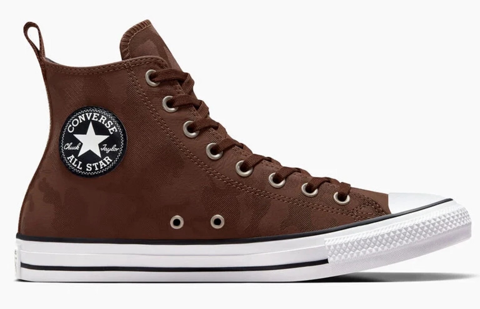 CONVERSE Men's Chuck Taylor All Star TecTuff Waterproof Camo This style runs large. Order a half size down. LISTED IN MEN'S SIZE (if you need to convert to women's size, buy 2 sizes smaller. For example, if you need a size 8 Women's buy a size 6) OUTDOOR EDGE Moody skies ahead? These waterproof Chucks are ready. A TecTuff upper helps you take on surprise showers or puddles. But it's not just about materials; easy-to-pair neutrals give you iconic style that goes with any look. Plus, a camo graphic looks natural outdoors, or wherever adventure takes you. WHY YOU SHOULD BE DOWN Waterproof TecTuff upper gives you premium durability and optimal comfort in wet weather OrthoLite cushioning helps to provide optimal comfort Heel loop for easy on and off Camo graphic on the upper brings the outdoor vibes Iconic Chuck Taylor patch and All Star license plate, with a TecTuff tag at the heel Handling time is 3 business days with standard shipping. Please verify the item matches your requirements before removal of labels. If wrong address was provided and item was returned to us, you will be charged for shipping expenses. Customers remain responsible for the shipping and handling expenses incurred in shipping the item to them. Returns must be sent to the address in the return request; do not use third party labels. No returns without original shoe box. No returns with shoe box taped or marred. No returns unless original shoe box is shipped in outer carton. No returns on merchandise not in original, resell-able condition. Merchandise with manufacturing defects will be refunded at our discretion. If merchandise is sent back as a return in unacceptable, or not in resellable condition, we are not responsible for return shipping. No Shipping to US Protectorates, Alaska or Hawaii No shipping to P.O. BOX, APO/FPO No shipping to International Postage Service Freight Forwarding companies