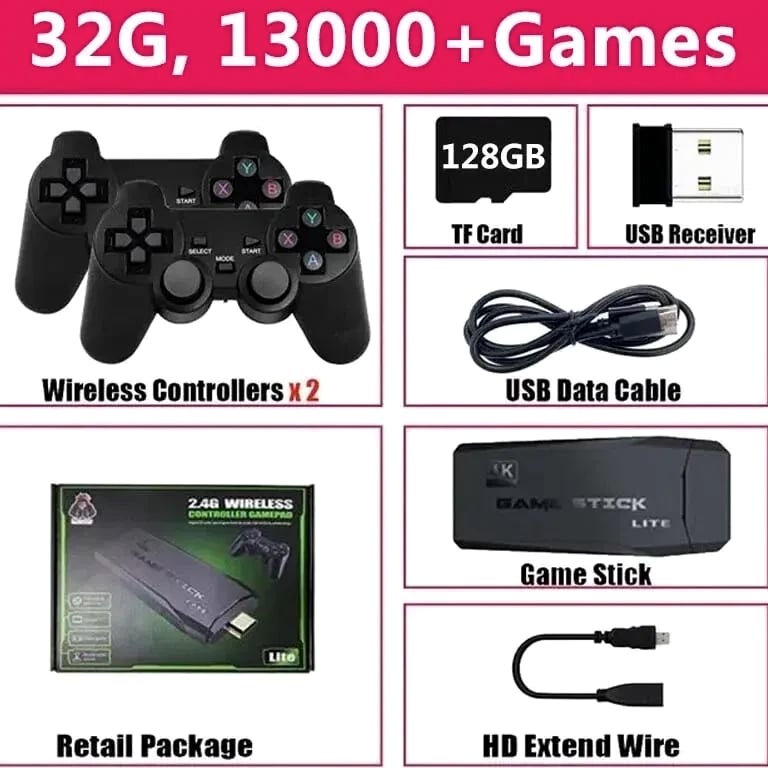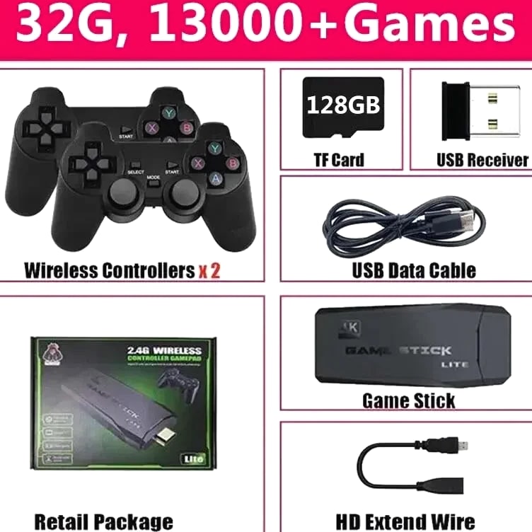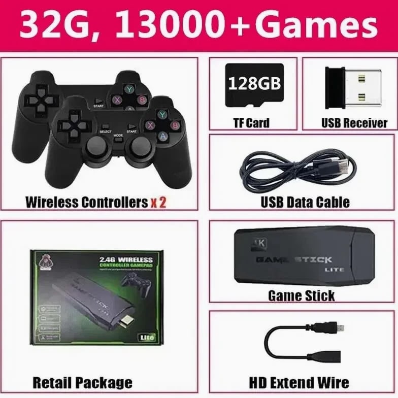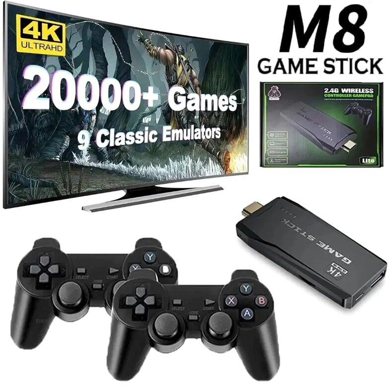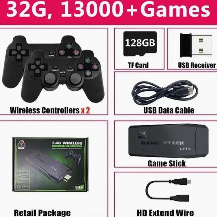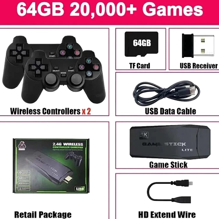 Built-In 20000 Games Video Game Console Wireless Controller TV Game Stick 4K HD