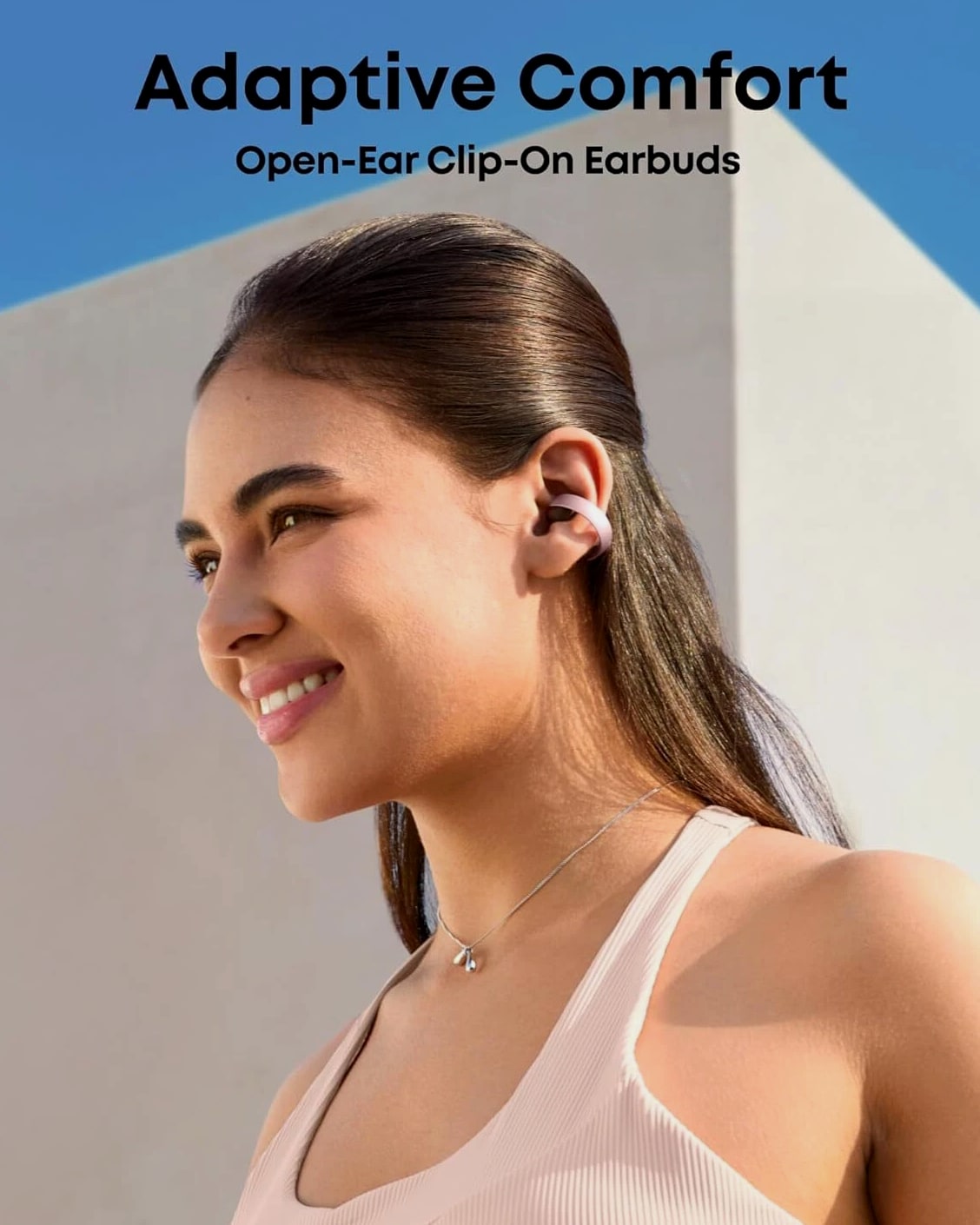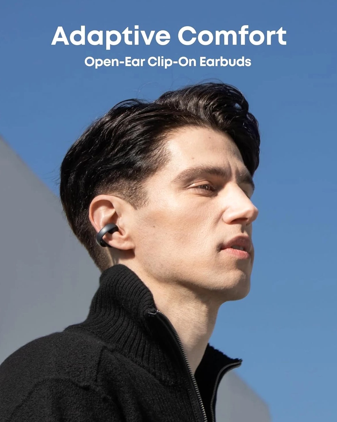 Soundcore AeroClip by Anker - Open-Ear Earbuds, Clip-On Headphones, Adaptive Comfort, Clear Calls with 4 Mics and AI, Stable Fit, 12mm Drivers for Crisp Sound, Open-Ring Design Product Details Adaptive Ultra-Comfort: Designed to relieve in-ear discomfort, Soundcore AeroClip open-ear clip-on earbuds let you enjoy music pressure-free for every outdoor venture. Flexible, Secure Fit: Soundcore AeroClip clip-on earbuds boast an adaptive open-ring design that endures 20,000 bends. Feather-light and flexible, they stay secure for all-day wear. Clearer Audio, Richer Bass: Enjoy ultra-clear, rich bass sound with in-ear-level quality. Our advanced virtual bass technology enriches the lows, complemented by a 12mm*12mm titanium-coated driver for clear listening. AI-Boosted Clear Calls: With 4 beamforming mics, wind-blocking meshes, and advanced AI, experience flawless calls, even in the busiest streets. Effortlessly Chic: Your style, your vibe. In three vibrant looks, these open-ear clip-on earbuds deliver incredible audio with a touch of flair. What You Get: Soundcore AeroClip x1 Charging Case x1 M/L Ear Grips x2 pairs USB-C Cable x1 QSG + Safety Card We gladly accept approved payment methods. Please make sure to submit the item number with your payment. If you have special requirements or requests, please contact via message. 30-day money-back guarantee for any reason. For 30 days after the date of purchase, return your undamaged Anker product and receive a full refund for any reason. 12-24 months warranty for quality-related issues (see description). For purchases under warranty, we take care of all quality-related issues with a replacement. Reminder: Be sure to use your product as directed. Free user support Not sure how to get your Anker product to work properly? Contact our world-class, friendly support team for quick solutions. Limitations Our returns and exchange service is limited to all purchases made from Anker Direct. If you purchased through a different retailer, please
