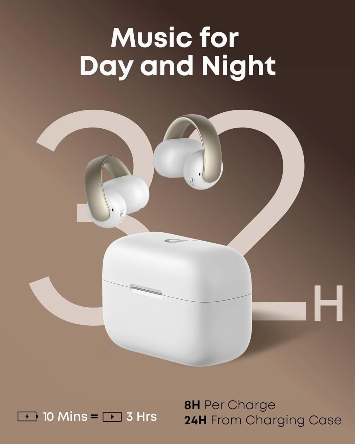 Soundcore AeroClip Open-Ear Earbuds Clip-On Headphones - 4 Mic AI-Boost Clear Call