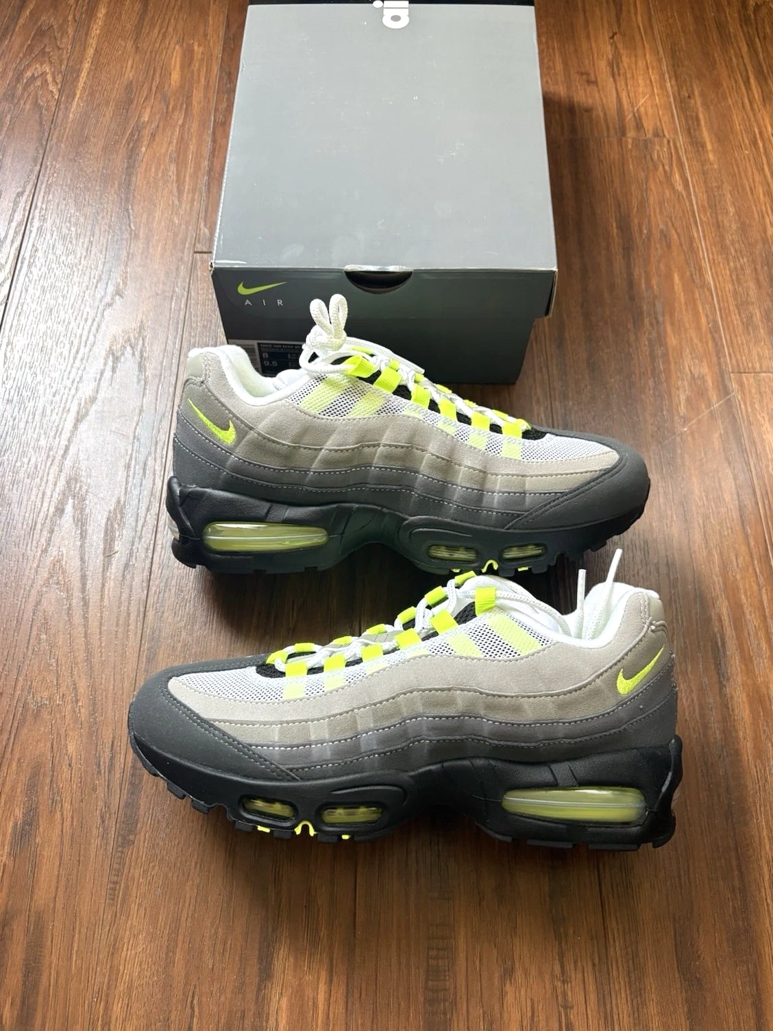 The Nike Air Max 95 OG Neon (2026) HM4740-001 is a brand new pair of men's athletic shoes, featuring a stylish mix of black, neon yellow, and cool grey tones. These sneakers are part of the popular Nike Air Max product line and deliver both comfort and performance. Size 8 men's fit offers a perfect balance of style and functionality for sports or casual wear. Rapid shipping available for expedited delivery.