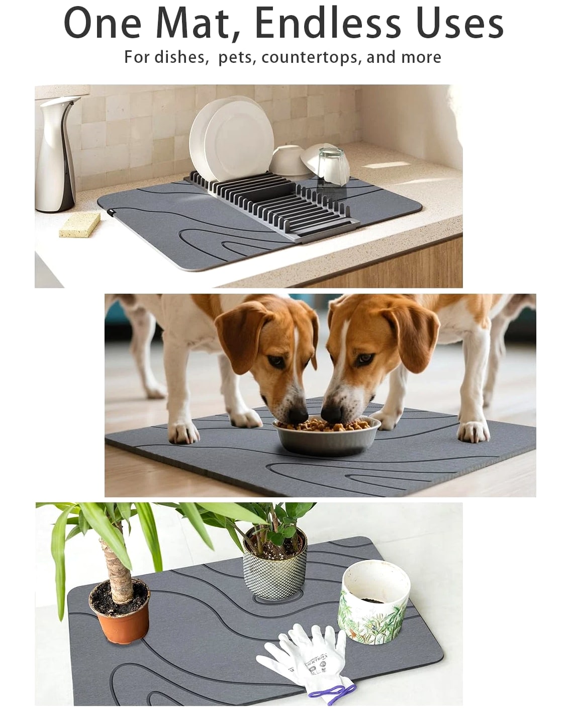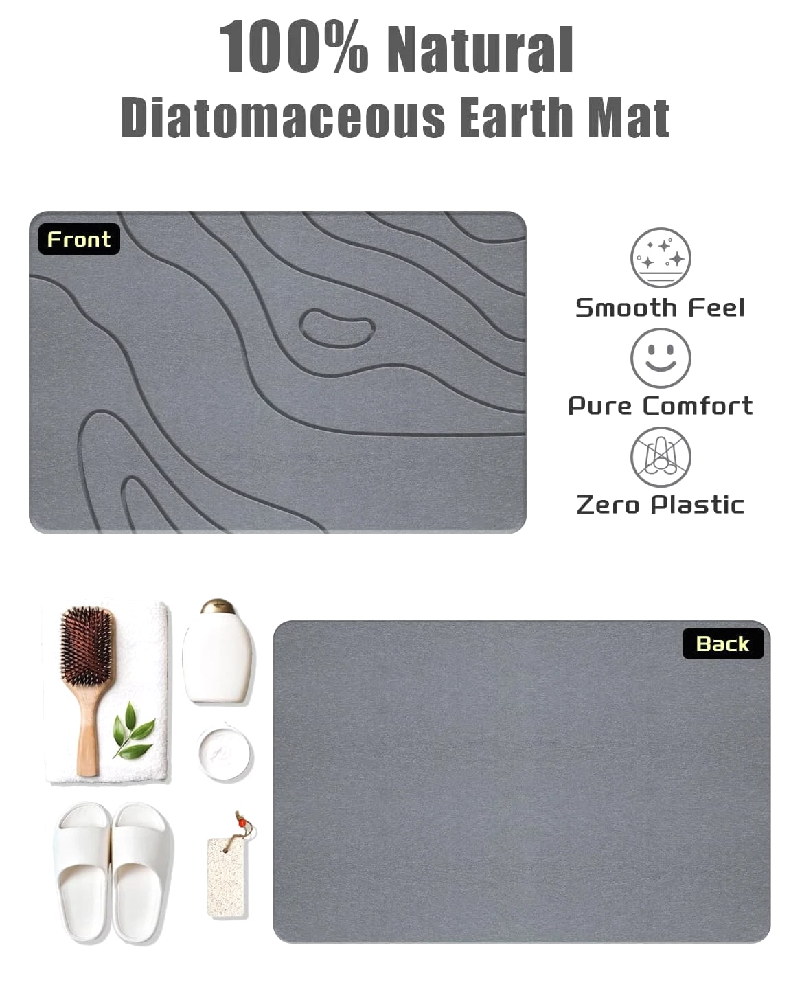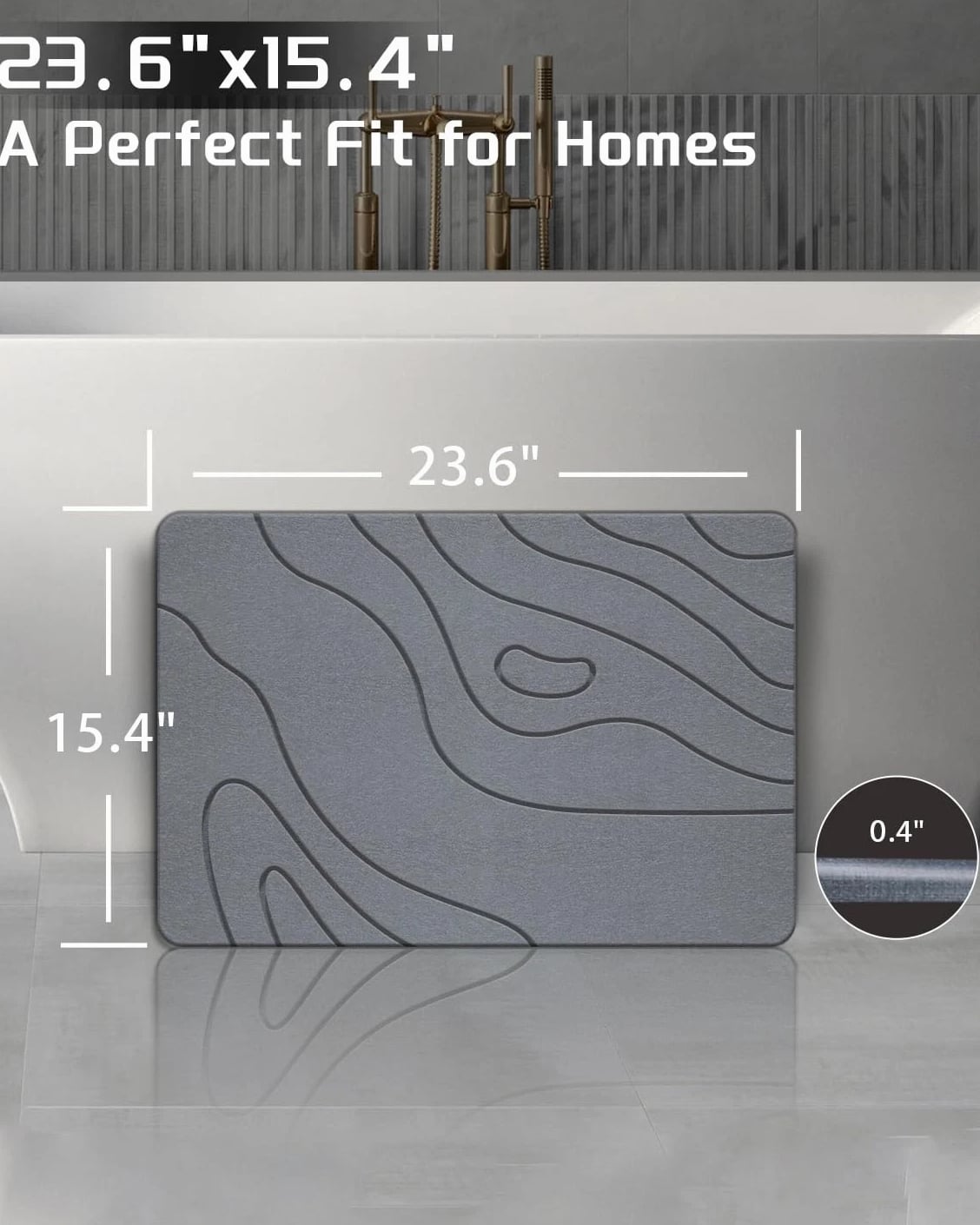 【3x Faster Drying Than Fabric Mats】Made of natural diatomite, this absorbent bath stone mat instantly soaks up water, leaving your bathroom floor dry and steady underfoot. No more wet floors or fabric mats! 【Premium Stone Construction】Crafted from natural diatomite, this bathroom stone mat outperforms conventional options with reinforced durability. Tested to withstand 300+ lbs, it maintains peak performance through years of daily use, delivering exceptional long-term value. 【Stable & Secure】Engineered with a dual-grip system: textured stone surface enhances traction when stepping out of the bath or shower, while the reinforced rubber base stays put—no shifting, even on wet floors. Provides reliable footing when moving around sinks or drying off. 【Easy Maintenance】Requires simple care - just monthly wipe-downs with mild soap. The included sanding tool refreshes surface porosity in seconds, ensuring consistent water absorption with minimal upkeep effort. 【Multi-Functional Design】Designed for versatile use throughout your home, this stone mat serves as a stylish kitchen counter drying pad for dishes, a stable foundation for plant pots, a practical mat under pet bowls, and an organized solution beside sinks. The minimalist stone aesthetic with natural texture complements modern, rustic, or industrial décor styles. Specifications: Size: 16"x24" | Color: Style 05-gray | Model: Shower Mat Stone | Style: Modern | Material: Diatomite | Weight: 5.80 pounds | Product Dimensions: 16.0 x 0.4 x 24.0 inches