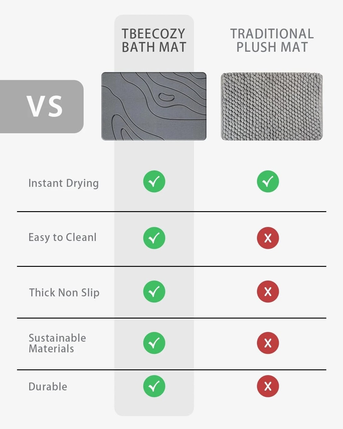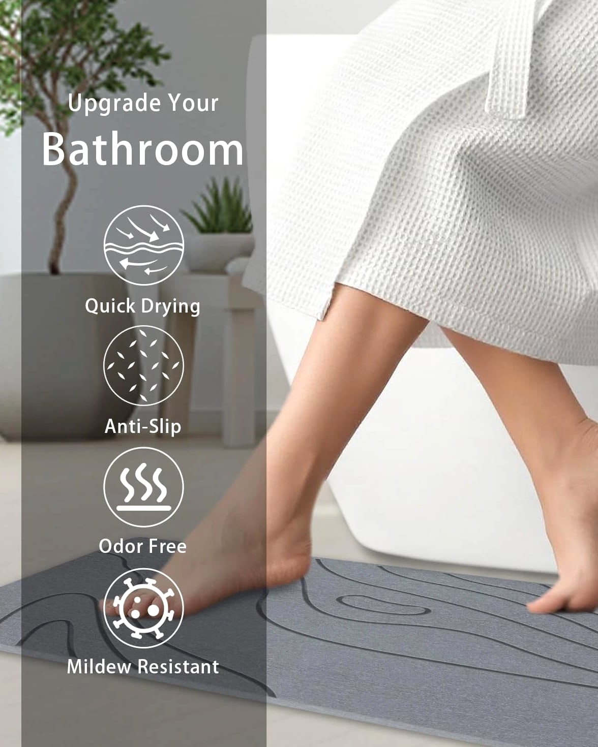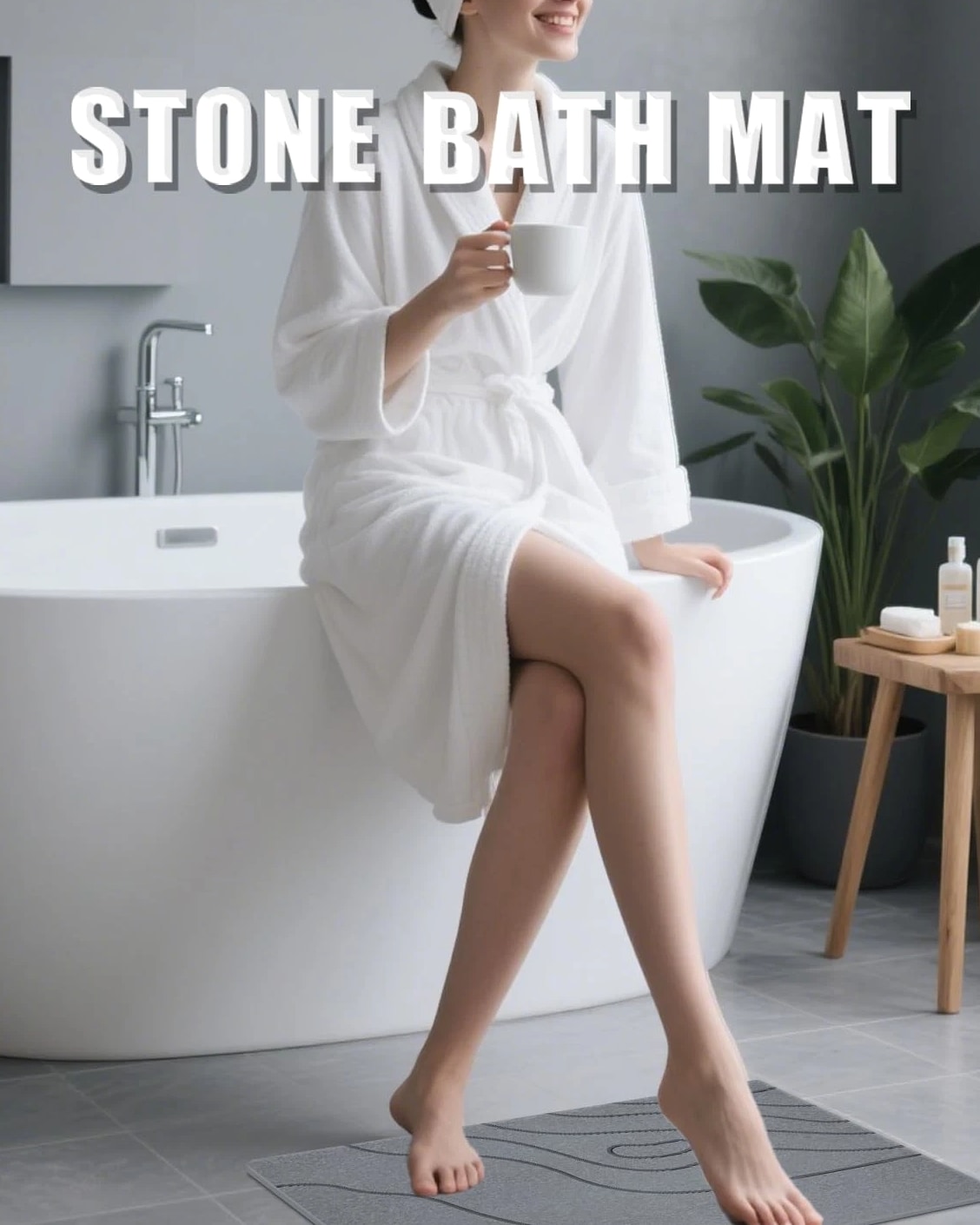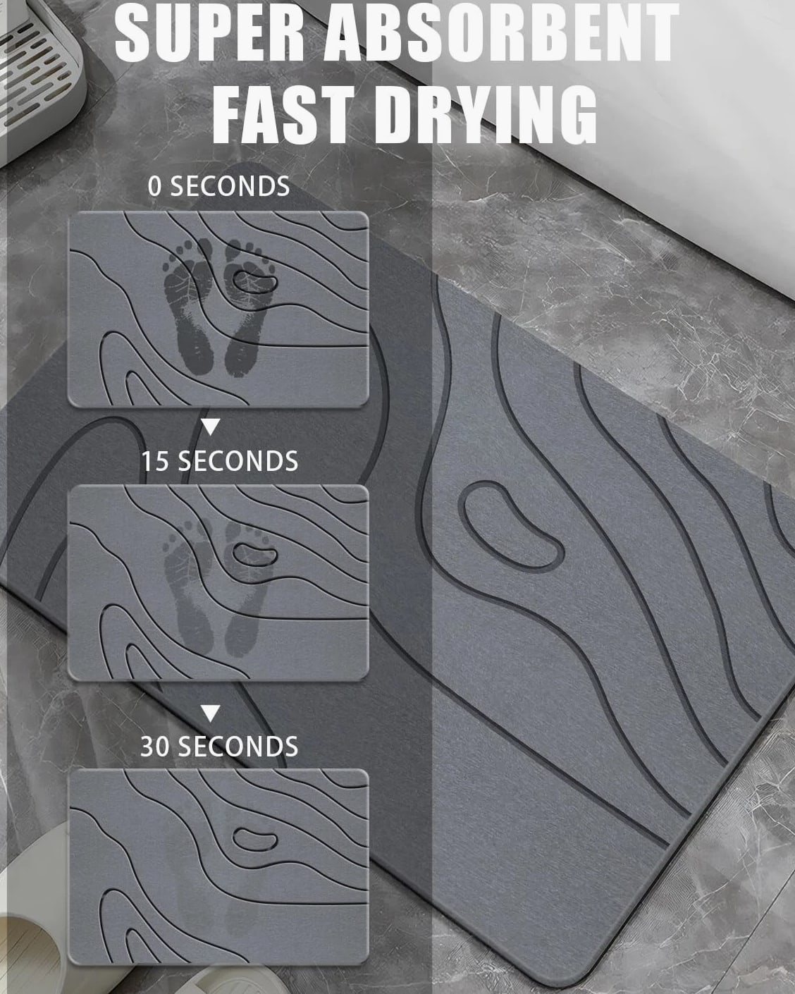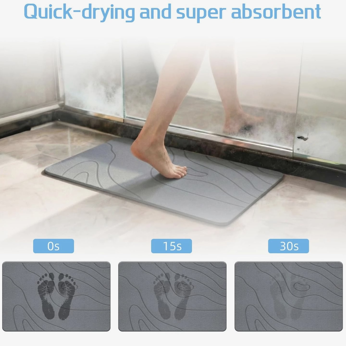 BIOIWGY Stone Bath Mat, Diatomite Fast Drying Non Slip Shower Mat, Super Absorbent