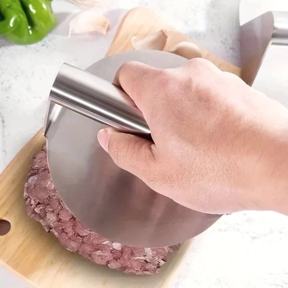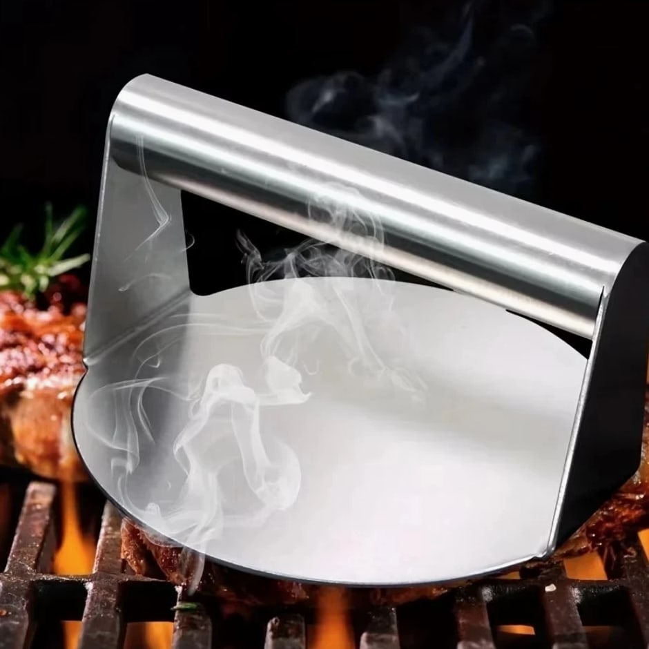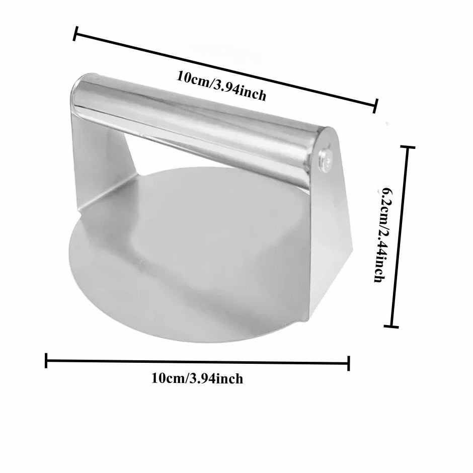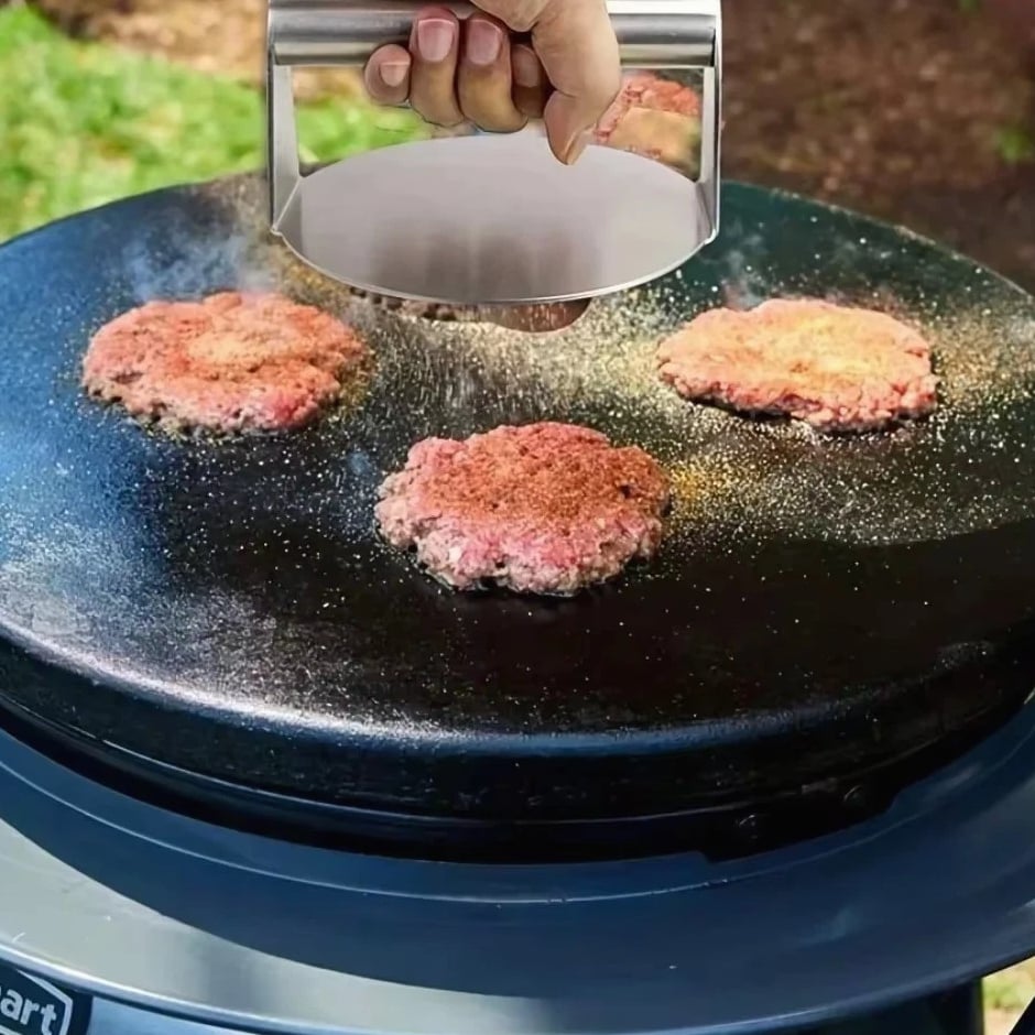 Create perfect burgers every time with this heavy-duty stainless steel smash burger press, designed for evenly cooked, juicy patties with a delicious crispy crust. Ideal for BBQs, grilling, and home cooking, it helps you achieve restaurant-quality smash burgers with ease. Made from high-quality stainless steel, this press is strong, durable, and resistant to rust and corrosion. The smooth, flat base ensures even pressure distribution for consistent cooking, while the non-stick surface allows easy release and hassle-free cleaning. Whether you're grilling outdoors or cooking in the kitchen, this versatile tool is perfect for shaping patties, pressing burgers, bacon, or sandwiches. Key Features: ✔️ Heavy-duty stainless steel construction ✔️ Creates evenly cooked, crispy-edge smash burgers ✔️ Flat base for consistent pressure and shape ✔️ Non-stick surface for easy release ✔️ Durable, rust-resistant, and long-lasting ✔️ Suitable for BBQ, grill, stovetop, and kitchen use Specifications: Material: Stainless Steel | Type: Hamburger Press / Meat Tool | Certification: FCM | Origin: Mainland China Package Includes: 1 x Smash Burger Press Note: Actual color may vary slightly due to lighting and display settings. Please allow slight measurement differences.