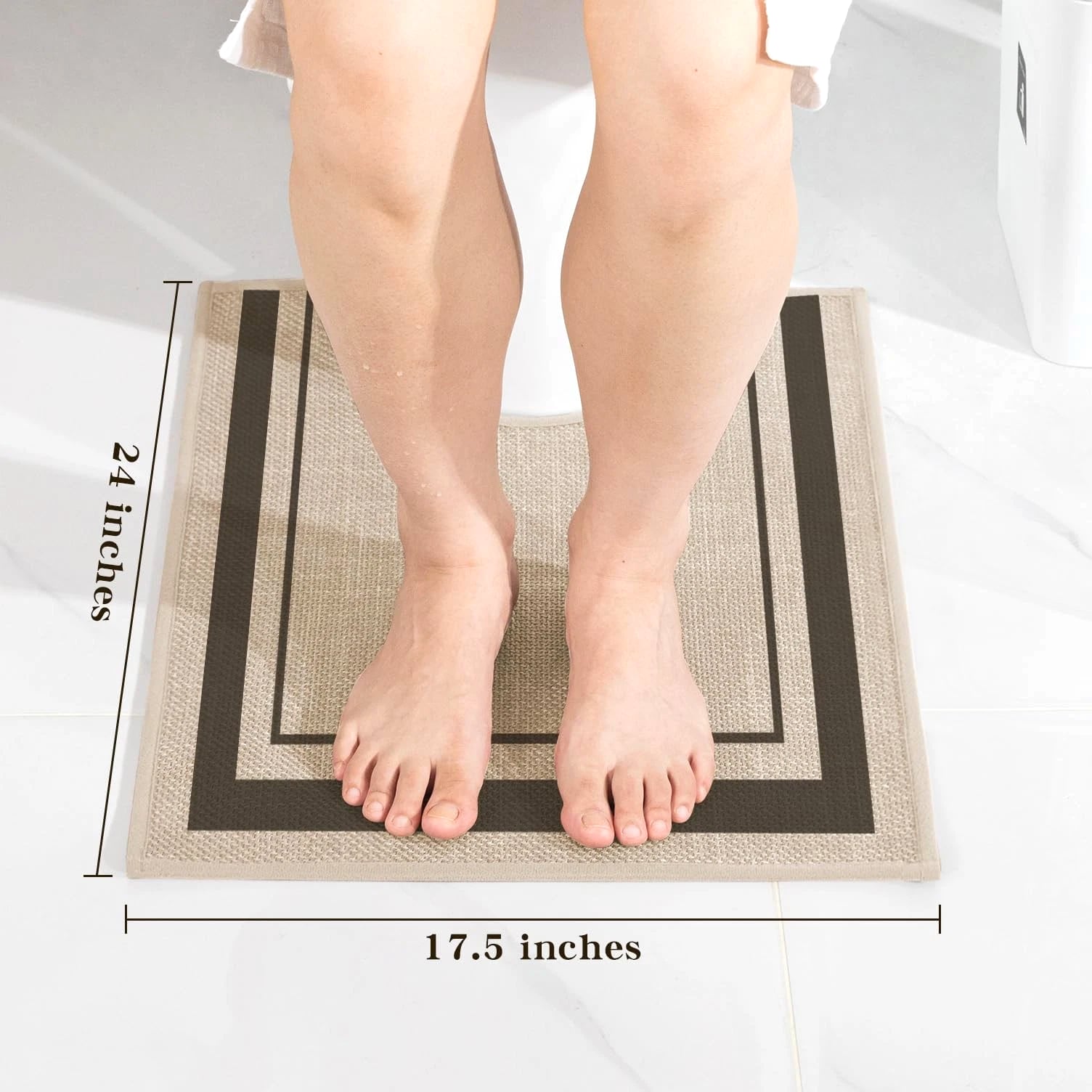 📝 Product Description 【Absorbing & Quick Drying】Bathroom mat quick dry made of absorbent fabric designed to dry quickly. Absorbent bath mat can suck up dripping water quickly when you come out from bathtub or shower, and our fabric technique allows the rug to dry fast in open air, bringing you a dry and comfortable bathroom. 【Non-Slip】High quality non-slip rubber back grips on floor tightly and flatly without skidding or curling up. Rubber floor mats make sure slipping accidents won't happen, and hence prevent and reduce the risk of falls for kids and the elderly. 【Durable】Say goodbye to fraying edges and pulled threads. Each edge of the bath rugs for bathroom is bordered with durable cloth and the trim is sewn well. Don't worry the braid chenille will come undone with abrasion or pulling. It does not collapse, deform, shed hair or fade. Used and cleaned many times, this soft bathroom rug is still like new. 【Easy to Clean】Non slip bath mat uses quick water absorption, dirt and hair will not stay on the surface. Machine washable (better in mesh laundry bag), or wash bathmat with shower nozzle or wet cloth then air dry. Please do not bleach or tumble dry. 【Wide Use】Low profile design makes it a perfect thin bathroom rug that fits under door so any wheel can easily pass on. The bathroom runner rug is perfectly made for bathroom shower, kitchen mat, bathroom runner rug, sink mat. 📋 Specifications size U-Shaped (24" x 17") color Light Beige style Modern material Rubber itemWeight 0.99 pounds manufacturer chakme productDimensions 1.8 x 1.8 x 17.0 inches ✓ Fast Shipping | ✓ Quality Guaranteed | ✓ Customer Support 30-Day Returns • 100% Satisfaction