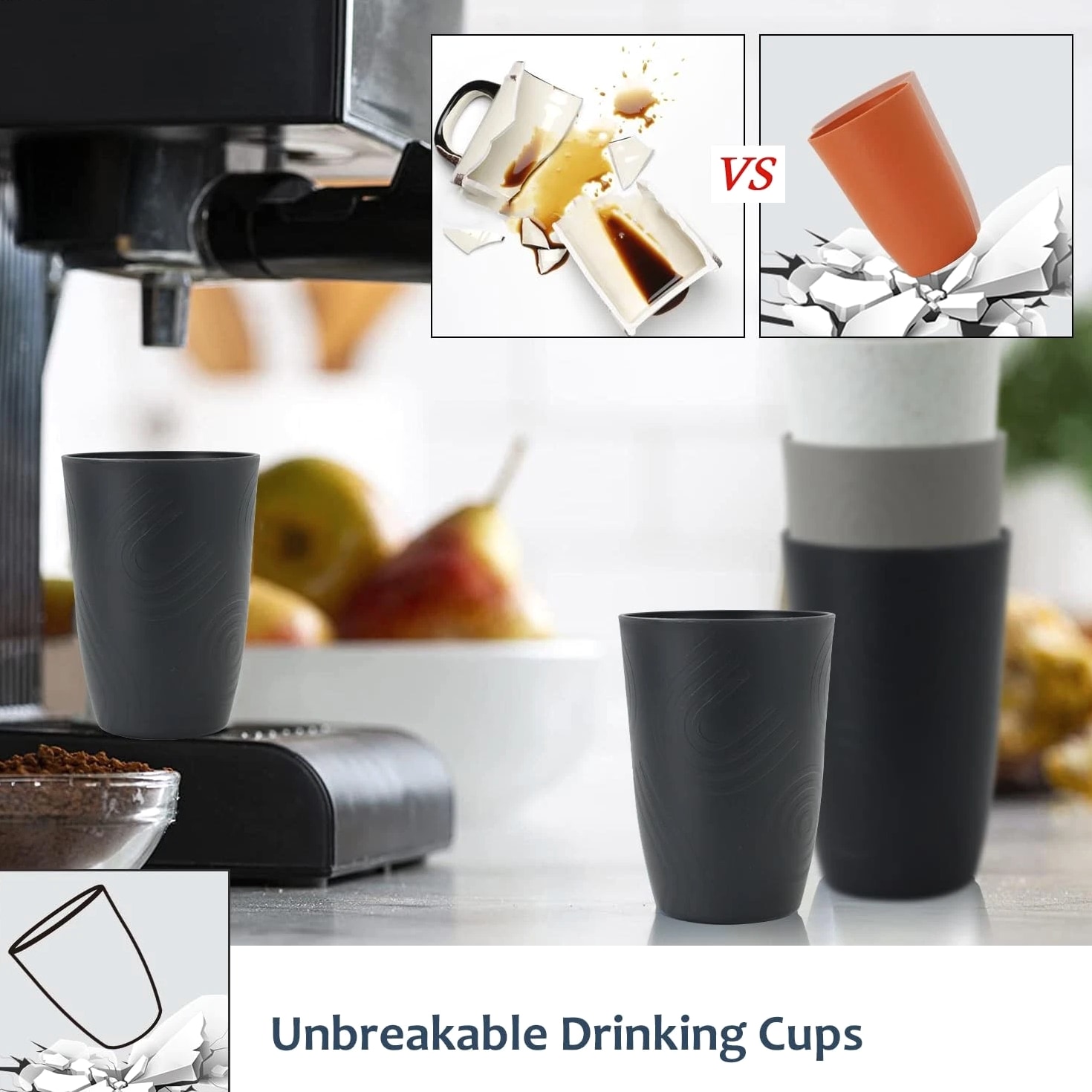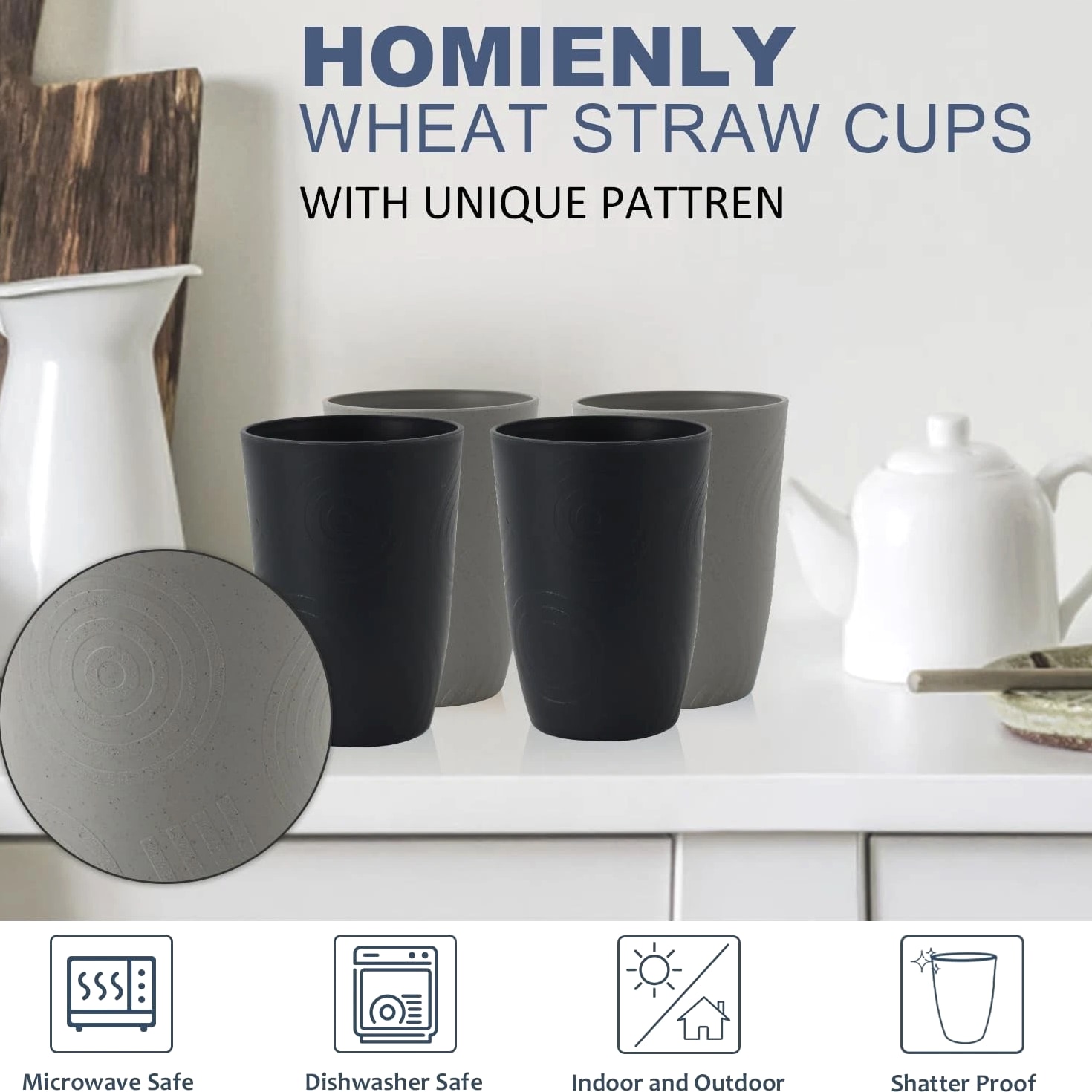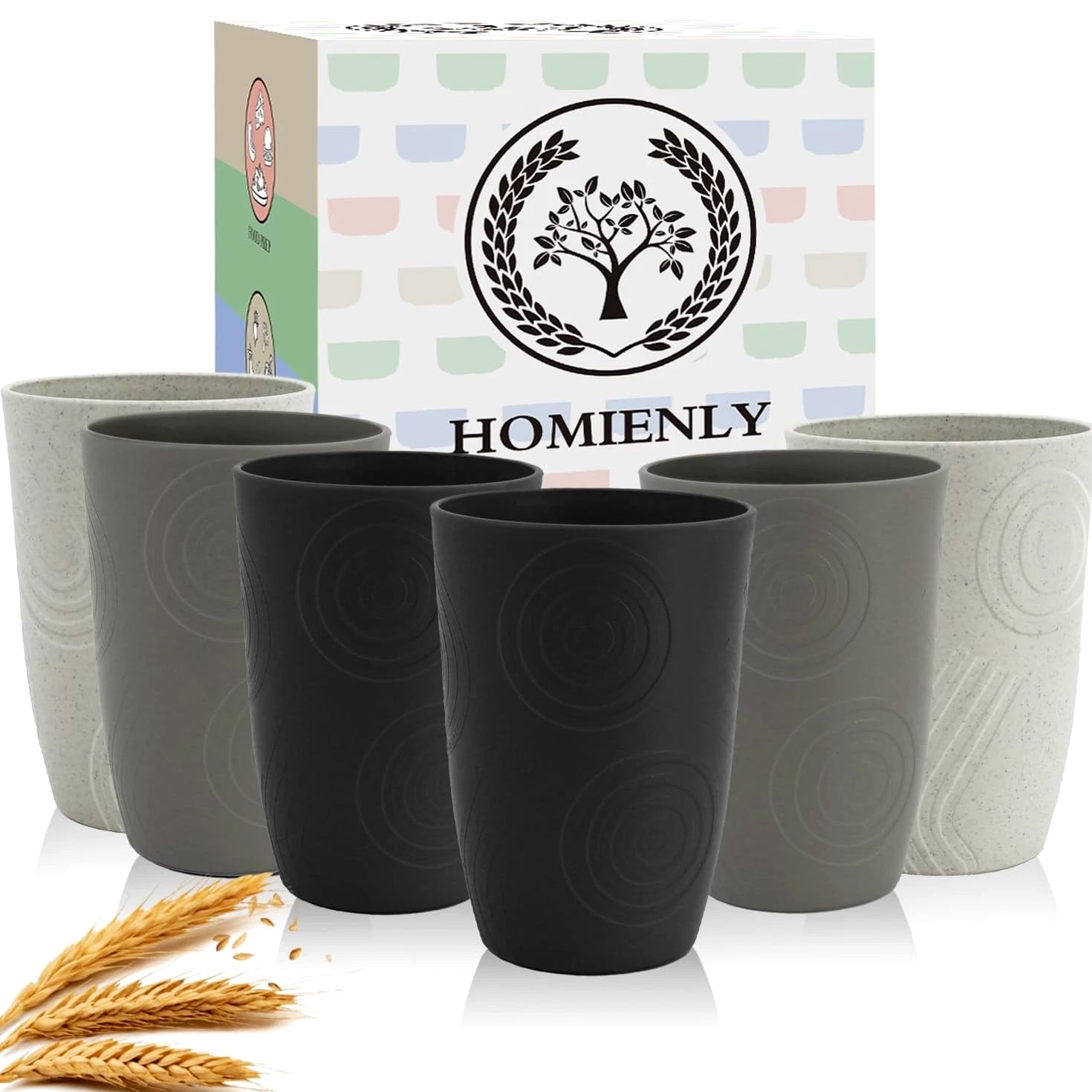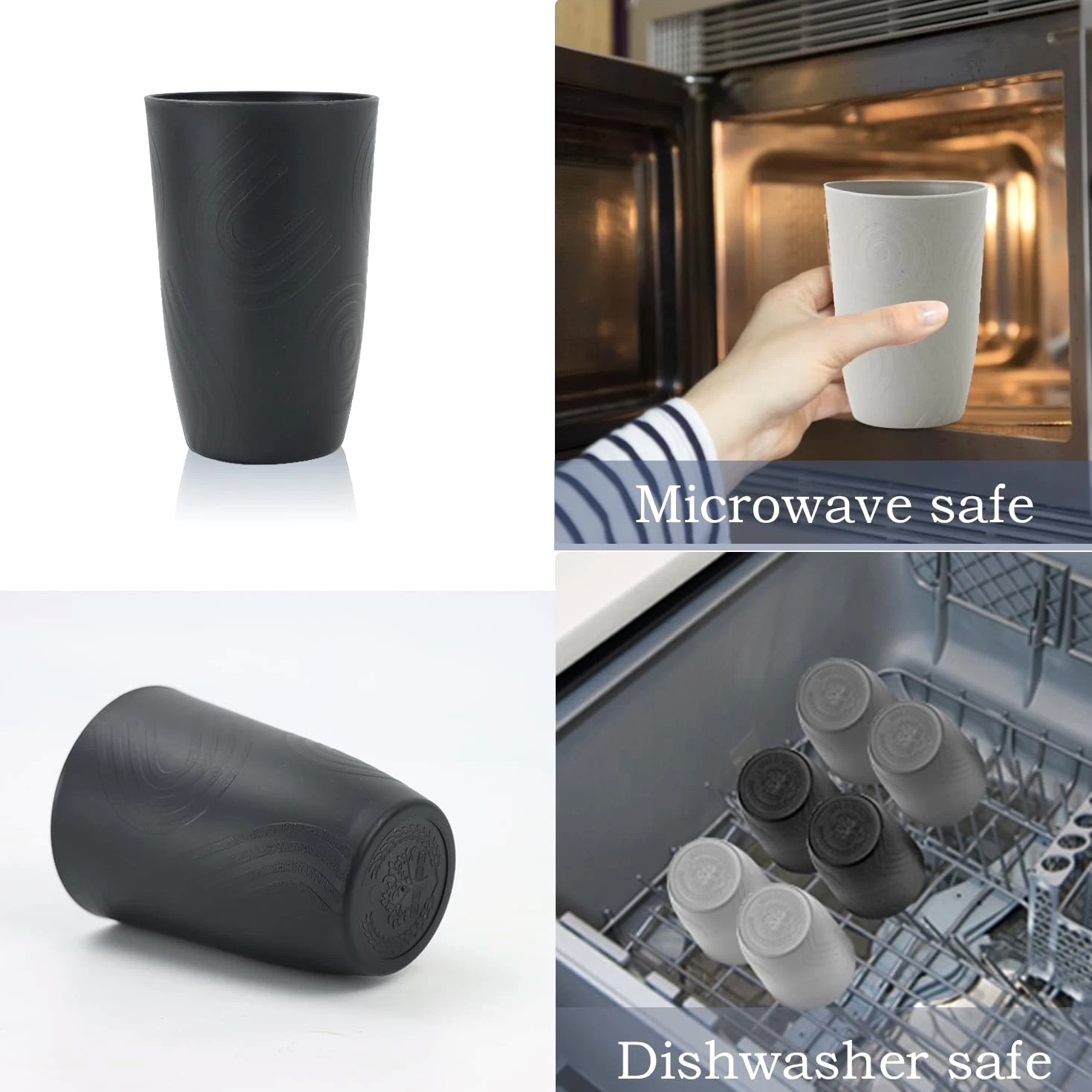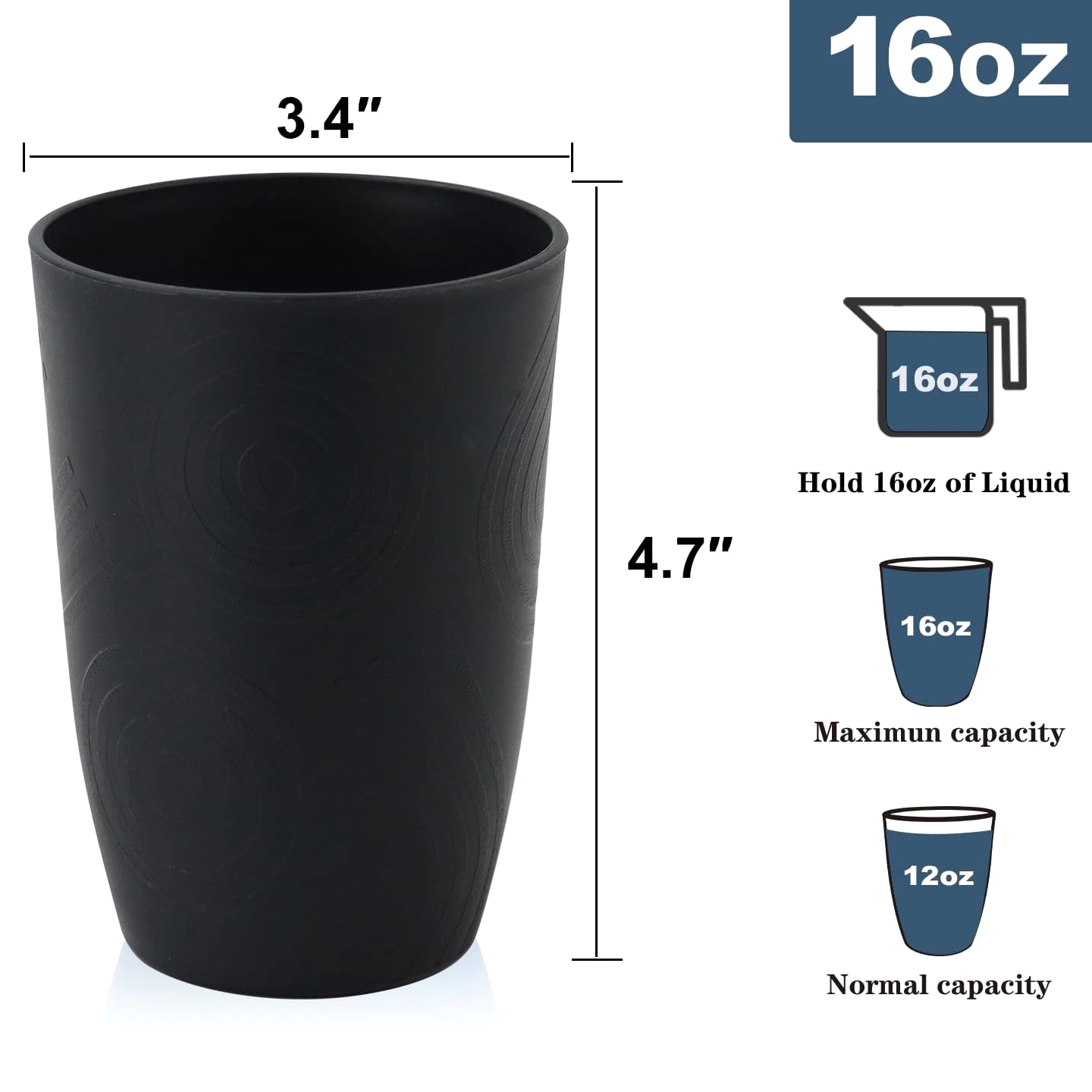 Introducing Set of 6 Wheat Straw Drinking Cups, the perfect solution for those seeking a reliable and reusable cup option. Made from natural wheat straw material, these plastic cups 16 oz are unbreakable, ensuring they will last for years to come and can withstand accidental drops without shattering. Each water cup has a capacity of 16 ounces, perfect for serving your favorite drinks like smoothies, iced tea, juice, water, wine, and more. (drinking cups for tea, juices, smoothies, water, wine, alcohol) And because they are dishwasher safe, cleaning and maintaining them is easy. These versatile tumbler cups with etched pattern are perfect for everyday use, family gatherings, picnics, camping trips, patio, poolside, and more. Plus, their unique etched pattern design with light and airy texture looks elegant and stylish on any table setting. The plastic cup set comes in a pack of six, so you always have enough cups for yourself and your guests. These plastic cups are kitchen essentials. (Wheat Straw Cups 6 Pcs Plastic Cups Reusable Unbreakable Drinking Cup Dishwasher Safe Water Glasses Alternative Plastic Drinking Glasses cup sets for kitchen kids drinking cups tumbler cups drinking glasses house accessories for home wheat straw reusable cups water glasses set of 6 16 OZ) UNBREAKABLE DESIGN: Experience worry-free daily use with these unbreakable drinking glasses. These lightweight wheat straw cups design is gentle on your hands and far more resilient than traditional glass, making them ideal sturdy reusable tumblers for active households and families. PREMIUM WHEAT STRAW MATERIAL: Crafted from high-quality wheat straw, the glassware set offers a sturdy and BPA-free foundation. The black gray cups provide a modern look for your kitchen, making them a safe and stylish choice for family use as reusable drinking glasses. STACKABLE & EASY TO CLEAN: Designed for convenience, these stackable cups nest neatly to save cabinet space