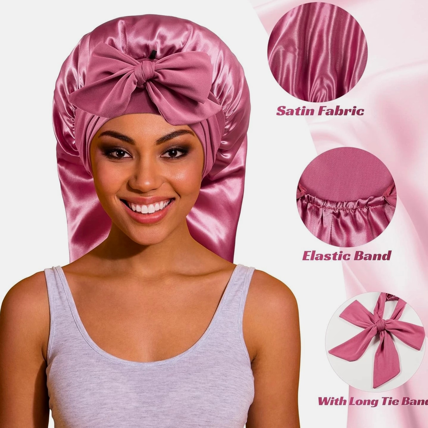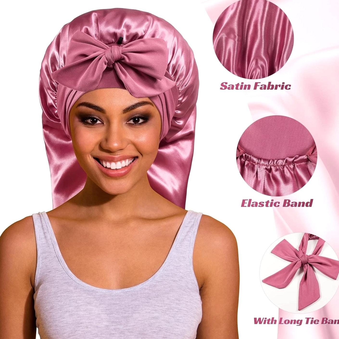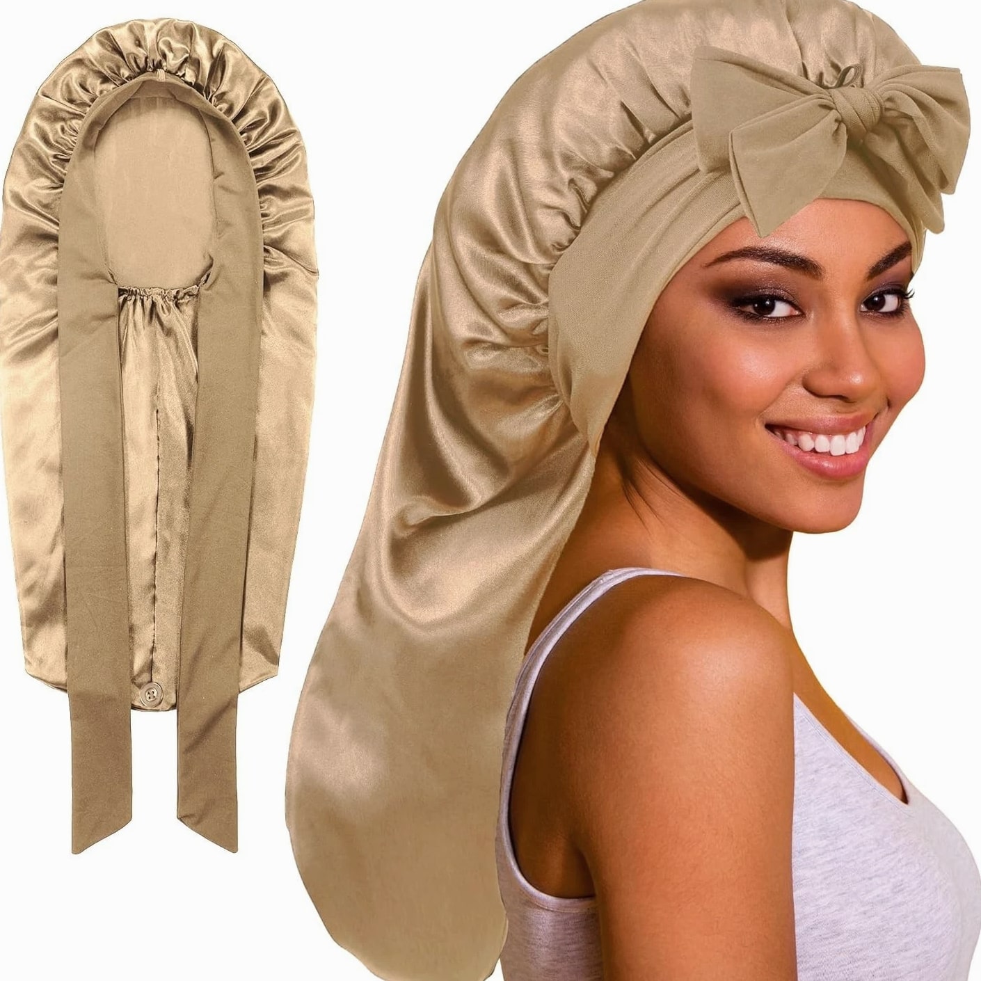Long Bonnet Satin Hair Silk Bonnet for Sleeping Women, Silky Bonnets