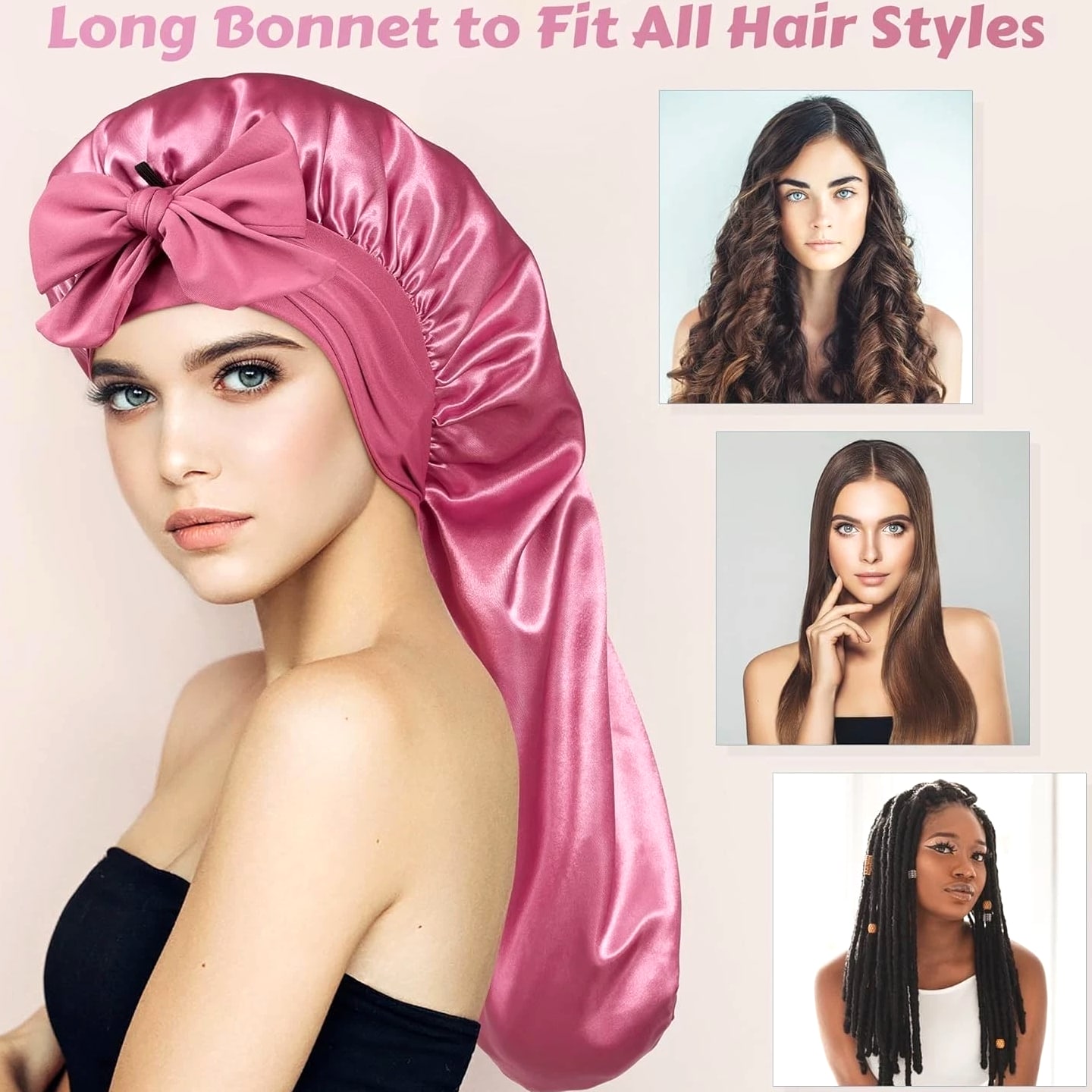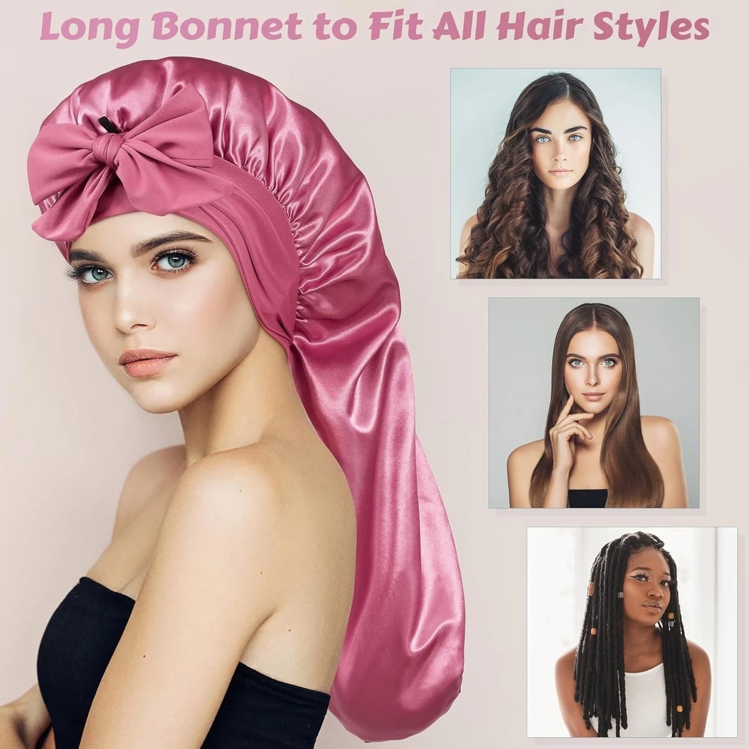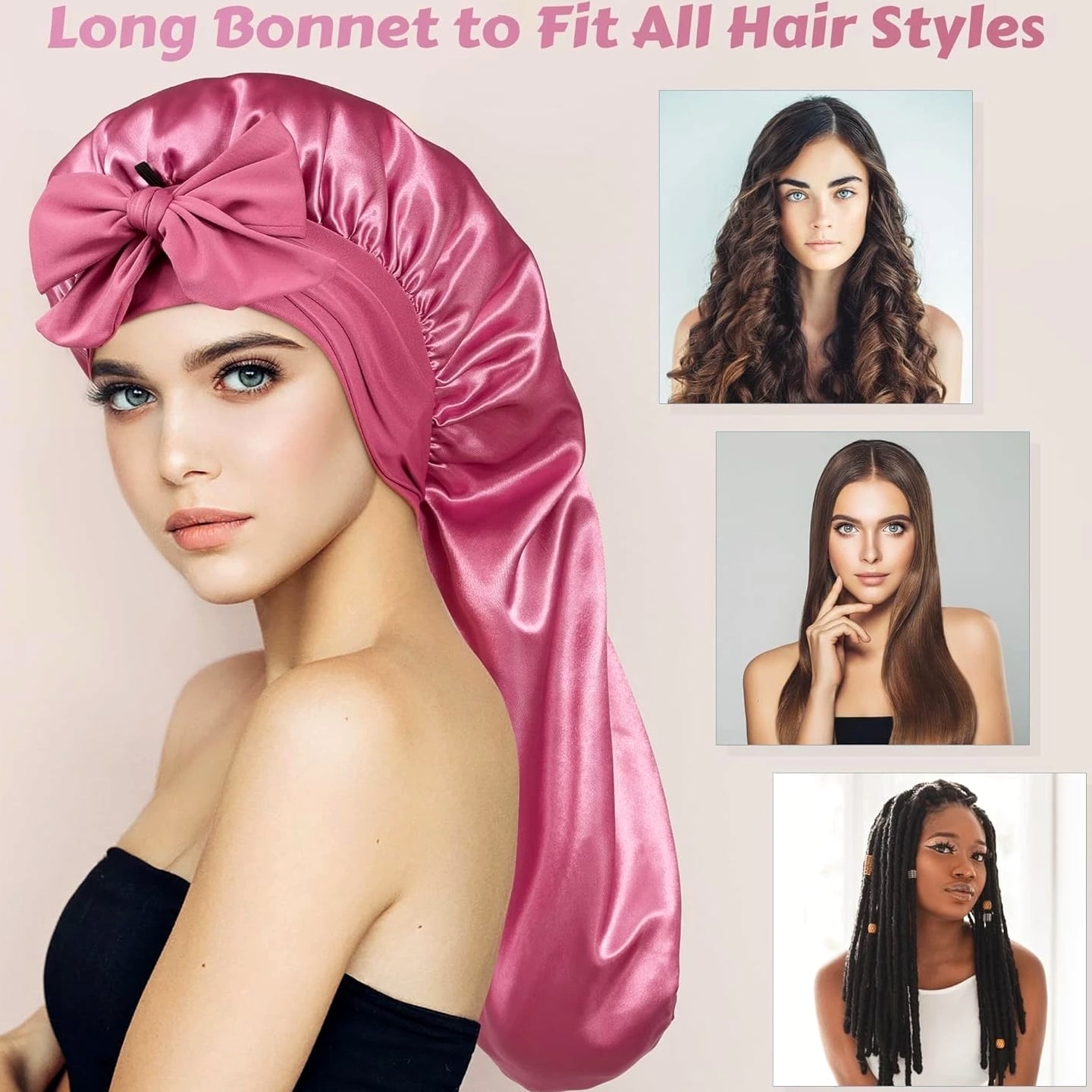 Long Bonnet Satin Hair Silk Bonnet for Sleeping Women, Silky Bonnets