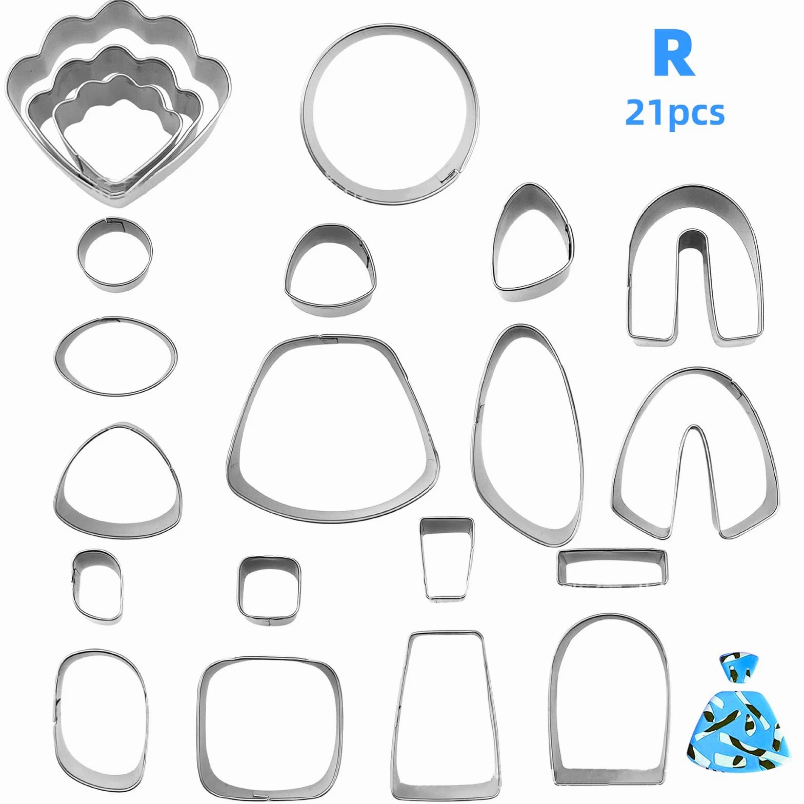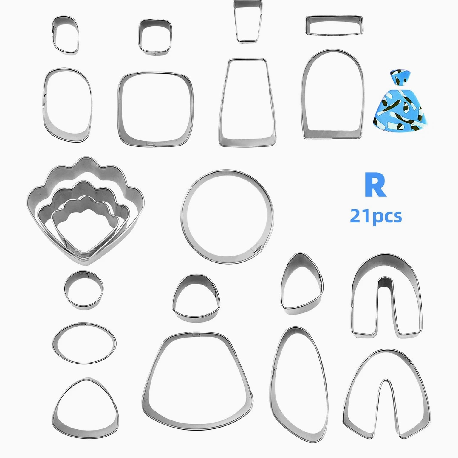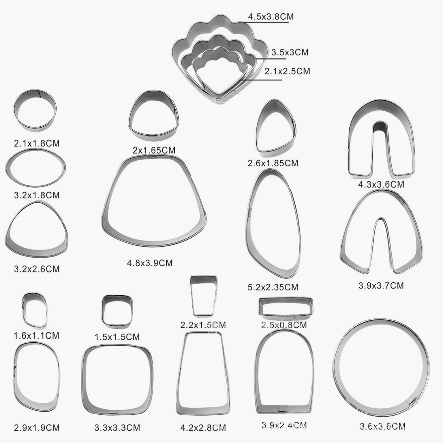Product Description 21Pcs Polymer Clay Cutters Set Earring Jewelry Cutting Mold Tool Findings DIY Features: Made of high quality stainless steel with sharp edges and clean cuts. The top is made of double stainless steel hems to protect your hands. Even if you are a beginner, you can easily make beautiful polymer clay earrings. Making earrings such as ear clips, ear hooks, ear tips, split rings. You can make more shapes with a combination of different shapes and sizes, use your imagination and your finished product will be the most eye-catching! Specifications: Product name: DIY clay earrings set Material: Stainless steel Size: As shown Weight: 85g Note: Due to the different monitor and light effect, the actual color of the item might be slightly different from the color showed on the pictures. Thank you! Please allow slightly measuring deviation due to manual measurement. Package include: 1Set DIY Clay Earrings Shipping & Returns We dispatch items the same working day if payment has been received before 2pm. Free domestic postage is available on all our products, along with optional paid services. Fast fulfillment and 100% assured — get the item you ordered or get your money back. Always believe we can solve problems through communication if there are any issues. If a return is necessary, the product must be intact and the same as you received, within 30 days after you receive your package. Feel free to contact us, we will always be here for you. Available 24/7/365. Any time, anywhere, we will assist you with your purchase and are happy to resolve your problem.