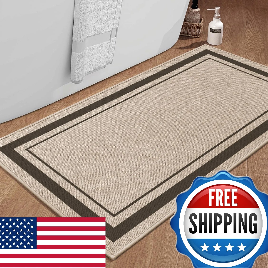 📝 Product Description 【Absorbing & Quick Drying】Bathroom mat quick dry made of absorbent fabric designed to dry quickly. Absorbent bath mat can suck up dripping water quickly when you come out from bathtub or shower. Our fabric technique allows the rug to dry fast in the open air, bringing you a dry and comfortable bathroom. 【Non-Slip】High quality non-slip rubber back grips floor tightly and flatly without skidding or curling up. Rubber floor mats ensure slipping accidents won't happen and hence prevent and reduce the risk of falls for kids and the elderly. 【Durable】Say goodbye to fraying edges and pulled threads. Each edge of the bath rugs is bordered with durable cloth and the trim is sewn well. Don't worry the braid chenille will come undone with abrasion or pulling. It does not collapse, deform, shed hair, or fade. Used and cleaned many times, this soft bathroom rug is still as new. 【Easy to Clean】Non-slip bath mat quickly absorbs water. Dirt and hair will not stay on the surface. Machine washable, preferably in mesh laundry bag, or wash bathmat with shower nozzle or wet cloth then air dry. Please do not bleach or tumble dry. 【Wide Use】Low profile design makes it a perfect thin bathroom rug that fits under doors and allows any wheel to easily pass on. The bathroom runner rug is perfectly made for bathroom shower, kitchen mat, bathroom runner rug, and sink mat. 📋 Specifications size: Large (47" x 24") color: Light Beige style: Modern material: Rubber itemWeight: 0.99 pounds manufacturer: chakme productDimensions: 1.8 x 1.8 x 17.0 inches ✓ Fast Shipping | ✓ Quality Guaranteed | ✓ Customer Support