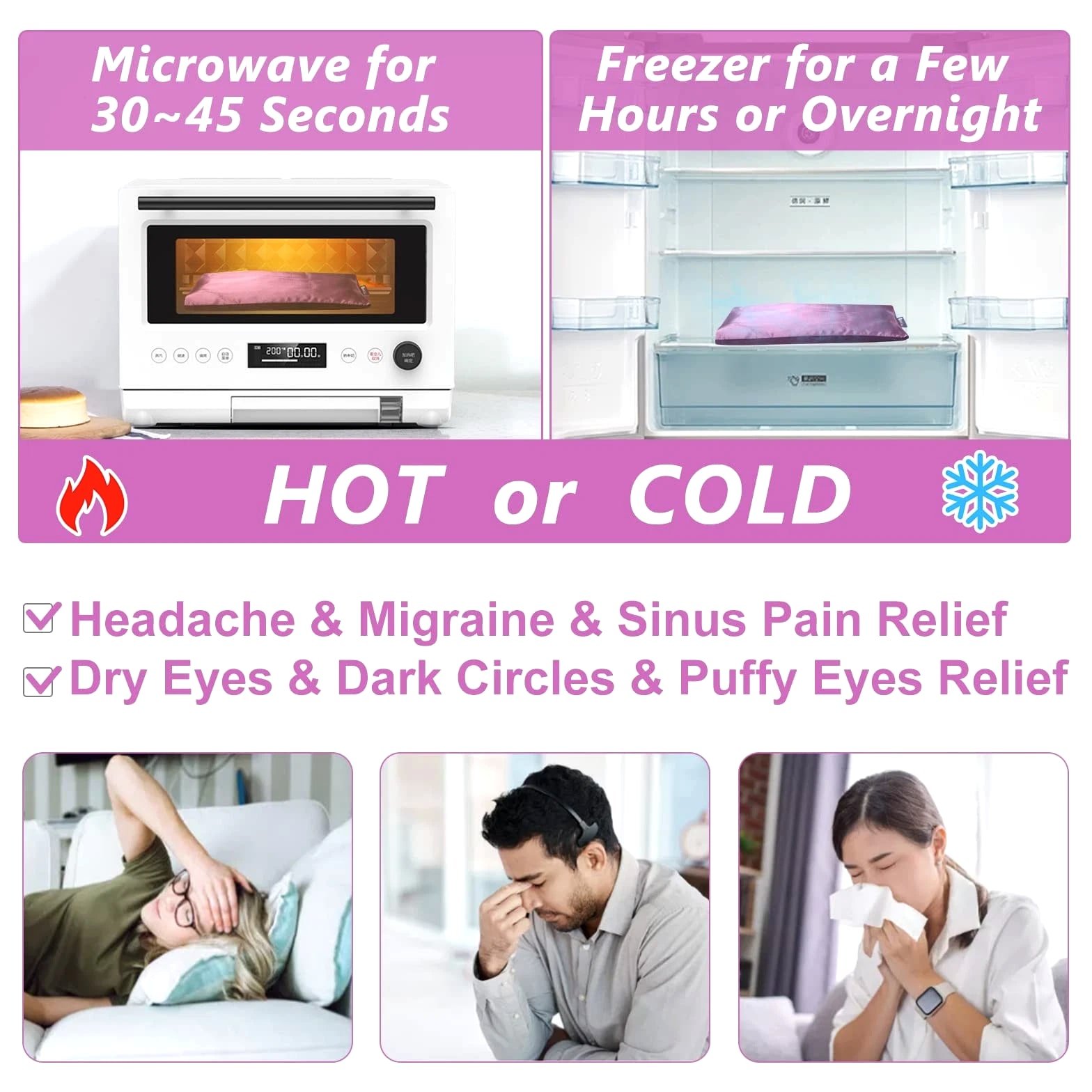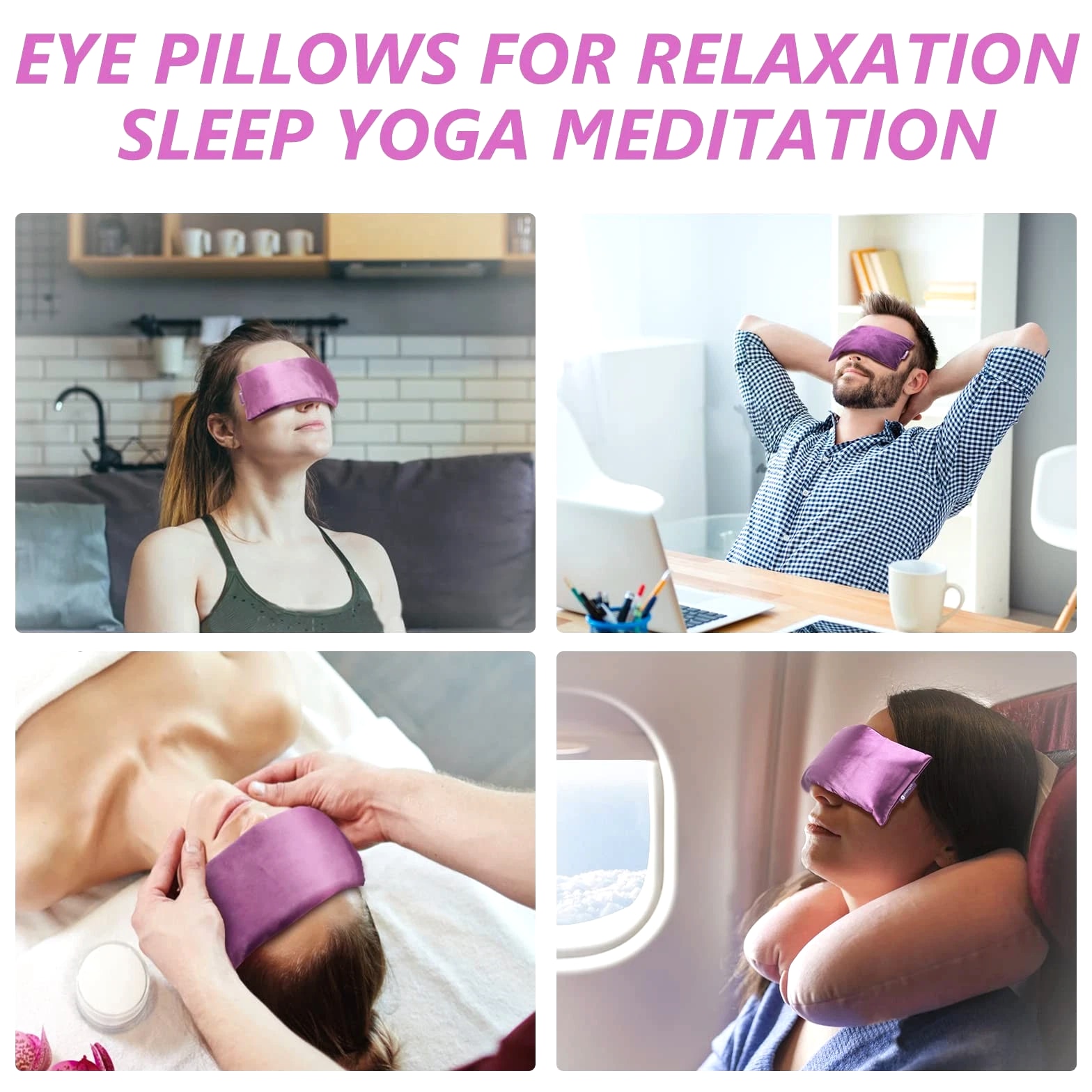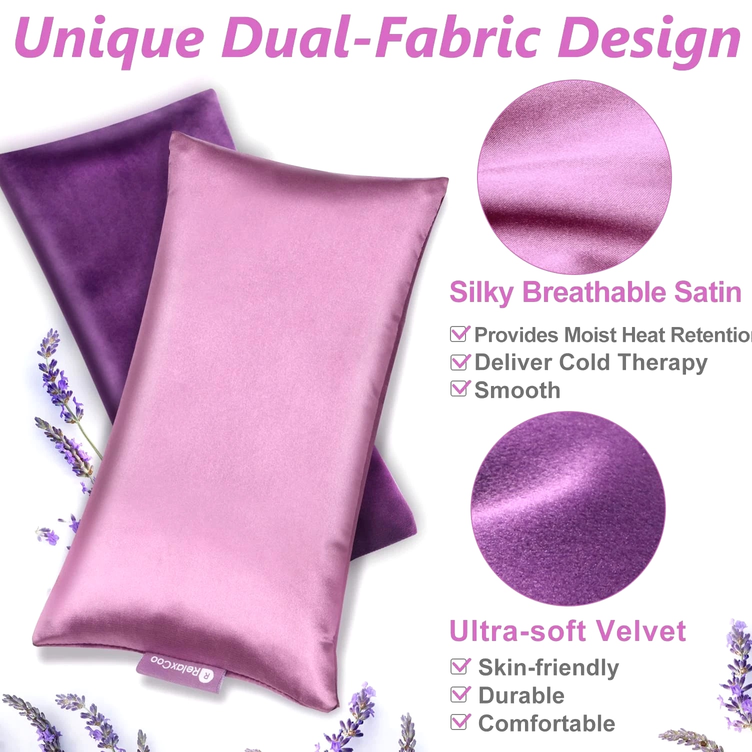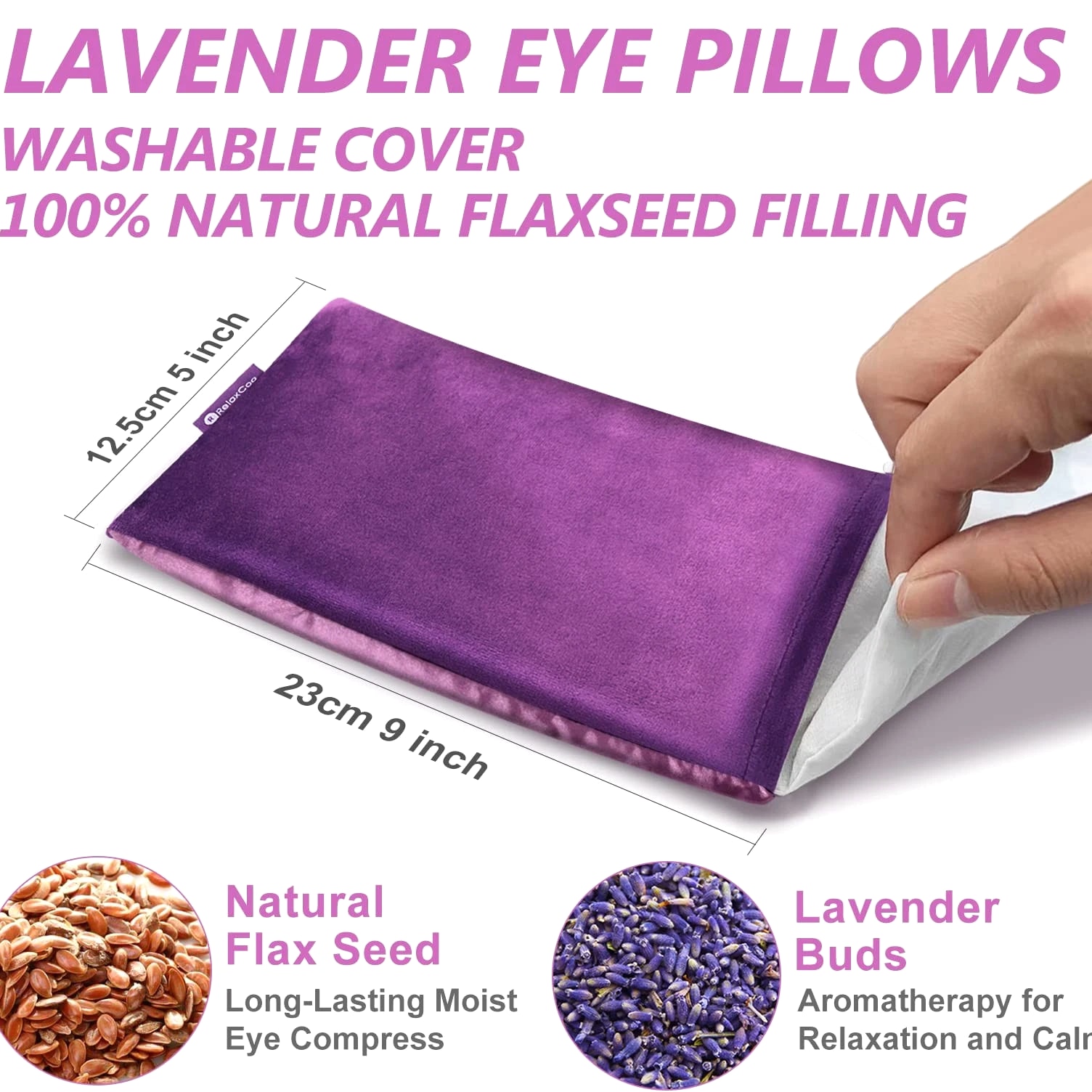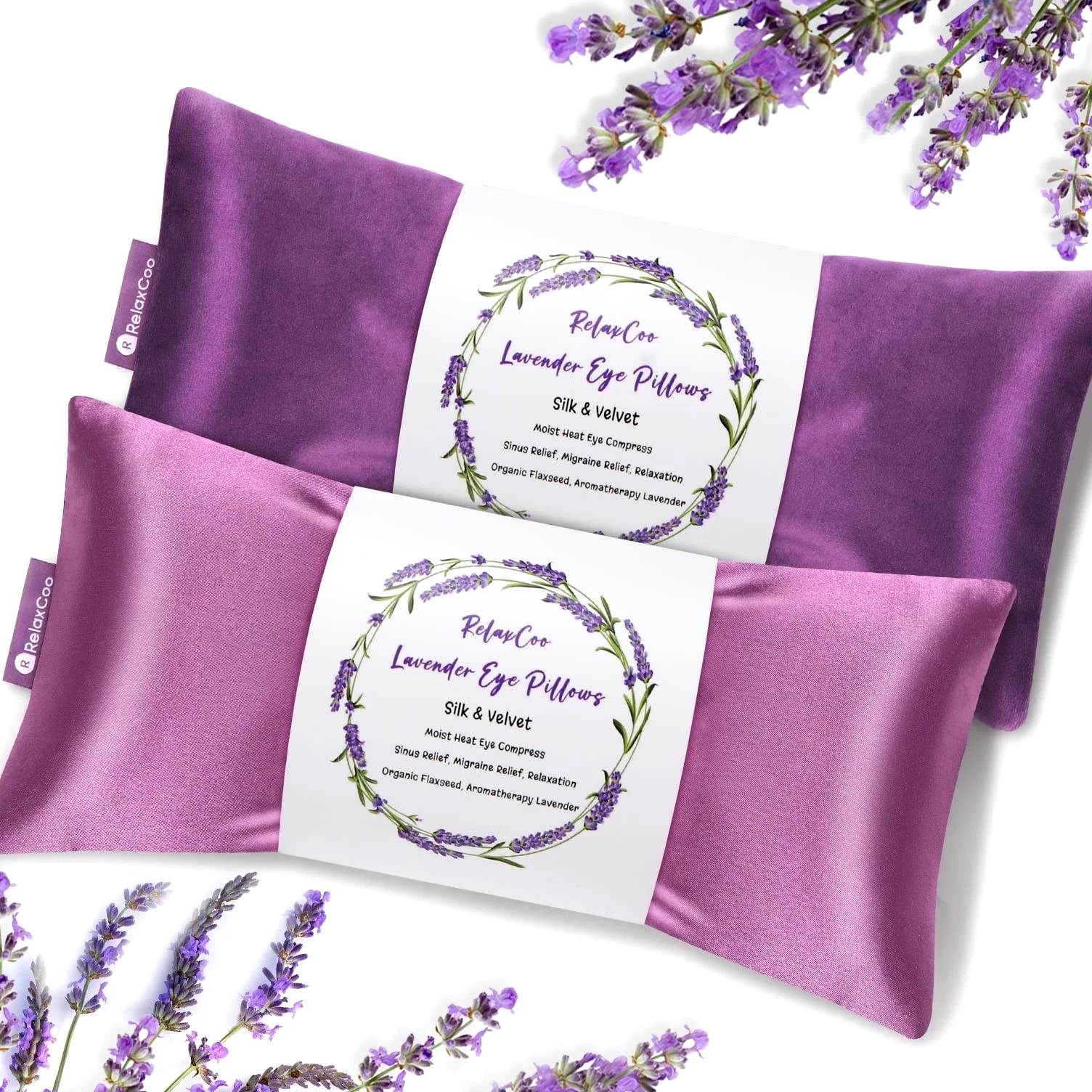 Lavender weighted eye pillows for yoga, relaxation, meditation, sinus eye mask heated for moist heat eye compress to relieve dry eyes and sinus pain. Microwave activated & microwaveable heating pad for eyes. Aromatherapy Eye Pillows: Filled with flaxseeds and lavender buds, the soft scent of lavender is calming and soothing, making it the perfect lavender eye pillow weighted for yoga, spa, and meditation. Ideal flaxseed eye pillows to relieve tension and stress during a busy day. Unique Dual-Fabric Design: Breathable silk eye pillow for sleeping provides extra heat retention. The ultra-soft velvet fabric is skin-friendly even for sensitive users. This heated sleep mask blocks out all light and provides comforting stress relief and mind refresher during travel and after work and study. Hot & Cold Compress: Microwave it for 30 seconds. Eye sinus pillows weighted deliver moist heat and gentle pressure to relieve dry eyes, headaches, migraines, and sinus pain. Freeze for a few hours or overnight; the satin eye pillow will relieve your dark circles and puffy eyes, refreshing tired eyes strained by study or work. Removable & Washable Cover: Eye heating pad microwaveable measures 5 x 9 inches, weight 9.5 oz, and completely covers the eye area without slipping. A set of 2 packages is convenient for you to use alternately or enjoy with a partner. Fully Guaranteed: Ideal gifts for loved ones & friends & employees. Please feel free to reach us if you have any questions about our yoga eye pillows.