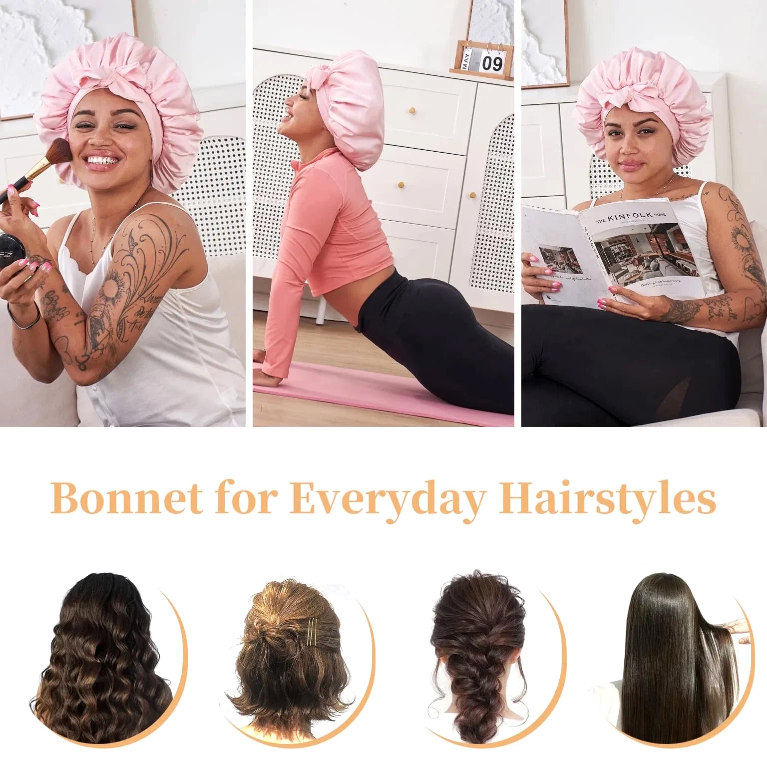 Silk Bonnet For Sleeping Women, Satin Hair Bonnet For Wavy Curly Natural Hair