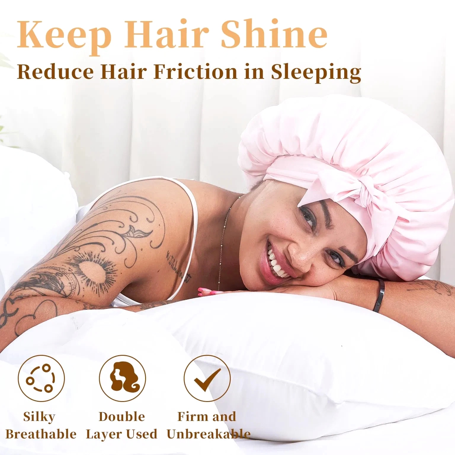 Specification Dimensions: 7.87 in * 6.30 in * 0.79 in Weight: 0.2300 lb Available Ship to: United States Details Hair Care Accessories: Silk Satin Bonnet Tailored for All Hair Types (1A-4C). Whether You Have Straight / Wavy / Curly / Coily / Kinky Hair, No Worries for Hair Care During Sleep & Reducing Hair Friction in Sleeping Hair Care Accessories: Silk Satin Bonnet Tailored for All Hair Types (1A-4C). Whether You Have Straight / Wavy / Curly / Coily / Kinky Hair, No Worries for Hair Care During Sleep & Reducing Hair Friction in Sleeping Adjustable Fit & Non Slipping Off: 26-Inch Tie Band & a Widened, High-Elasticity Brim Fit Head Circumferences of 19-36 Inches, Ensuring the Bonnet Stays in Place During Sleep & Daily Activities Without Leaving Forehead Marks Shine Your Hair: Crafted from Luxurious Charmeuse Satin, it Cradles Your Hair with Love, Locking in Moisture, Banishing Frizz & Ensuring Your Styles Last Longer Double Layer Versatile Hair Bonnet: Bonnet Reduces Hair Shedding & Visibility Obstruction During Household Activities & Workouts. Our Bonnet Features a Reversible Design, Offering Dual-Sided Usability