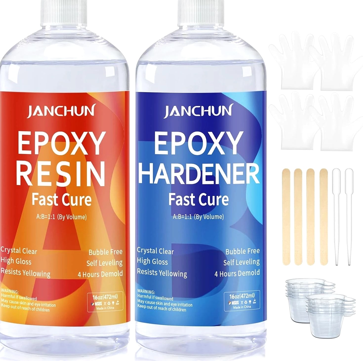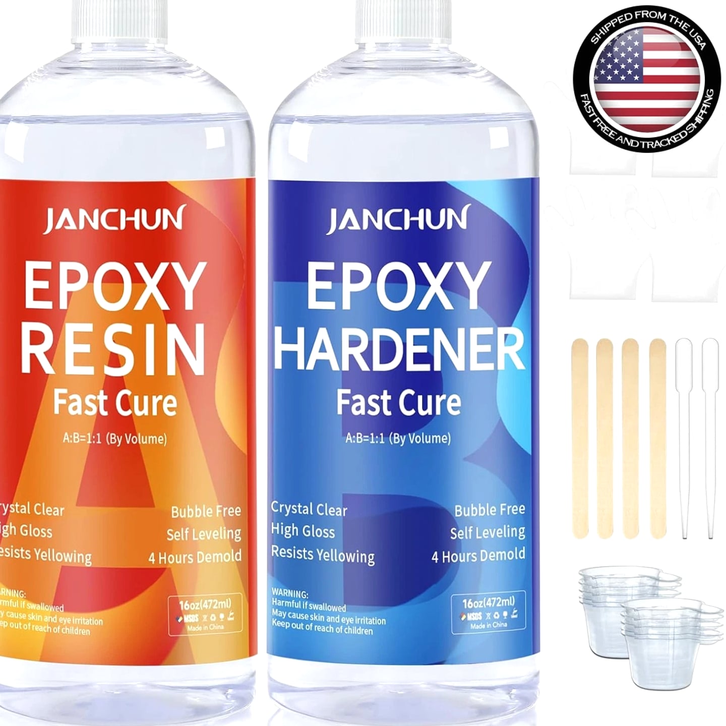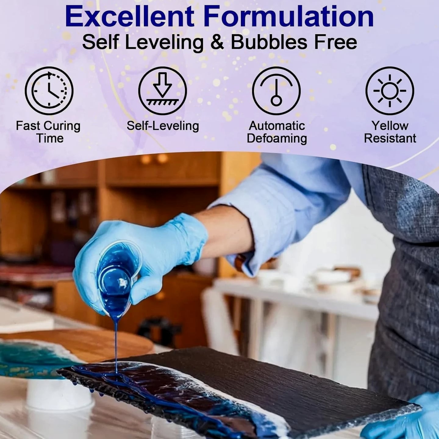 Complete 32oz Epoxy Resin Kit -Self-Leveling, Non-Toxic, Ideal for Crafts & Jewelry What's Included: 16oz epoxy resin 16oz epoxy hardener 10 plastic cups 4 mixing sticks 2 droppers 2 pairs of gloves Features: Designed for both beginners and professionals Streamline your resin projects from start to finish Crystal clear and anti-yellowing properties Adopts anti-UV formula to resist sunlight oxidation Self-leveling technology ensures a flawless mirror effect Fast curing time: demould in 8 hours, fully cure in 24 hours Easy to use mix ratio of 1:1 volume resin to hardener Generous 45-minute working time for intricate designs Reliable quality with rigorous testing for consistent performance 24/7 customer support available for assistance Benefits: Create beautiful, long-lasting crafts and jewelry Avoid the frustration of bubbles and bumps Enhance efficiency and speed up your creative cycle Enjoy your creative journey with comprehensive support Why Choose Our Epoxy Resin Kit? Whether you're a budding artist or a seasoned professional, our Complete 32oz Epoxy Resin Kit is the epitome of quality and convenience. With everything you need in one expertly curated box, you can unleash your creativity without the worry of complicated setups. The anti-yellowing formula ensures your masterpieces will stand the test of time, maintaining their crystal-clear allure for years to come. Join countless satisfied creators who have transformed their artistic visions into tangible, stunning realities. Elevate your craft with our dependable epoxy resin kit—order now and embark on your creative adventure with confidence! Shipping Free & Fast Shipping - We offer free shipping to most of the USA with a normal delivery time of 3-7 days. However, due to the current situation, additional delivery time (up to 3 weeks) may be required for some items. Alternative Carriers - We may use alternative carriers (e.g. USPS, FedEx, UPS, et