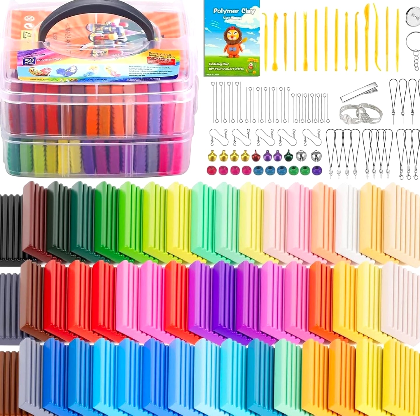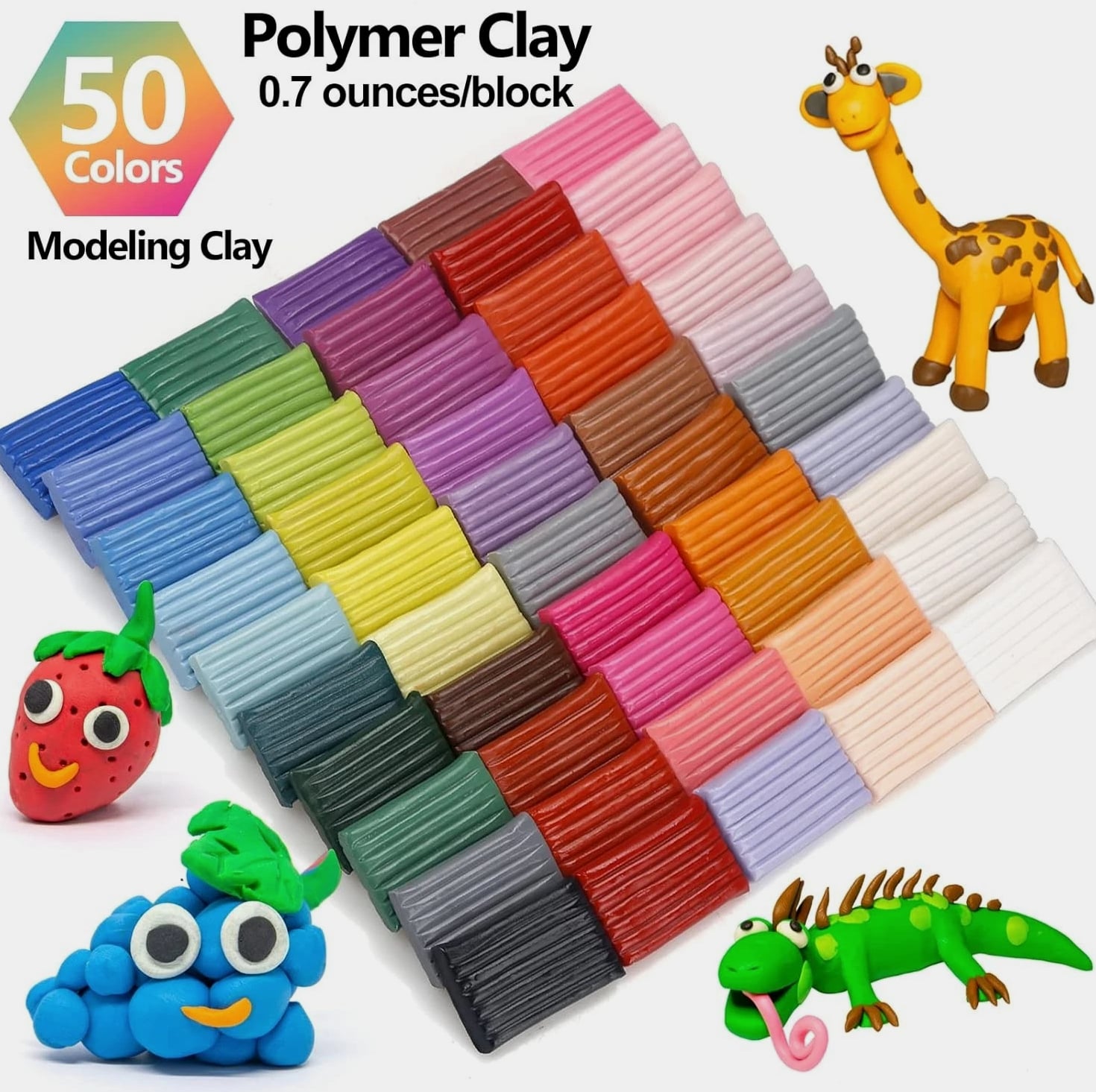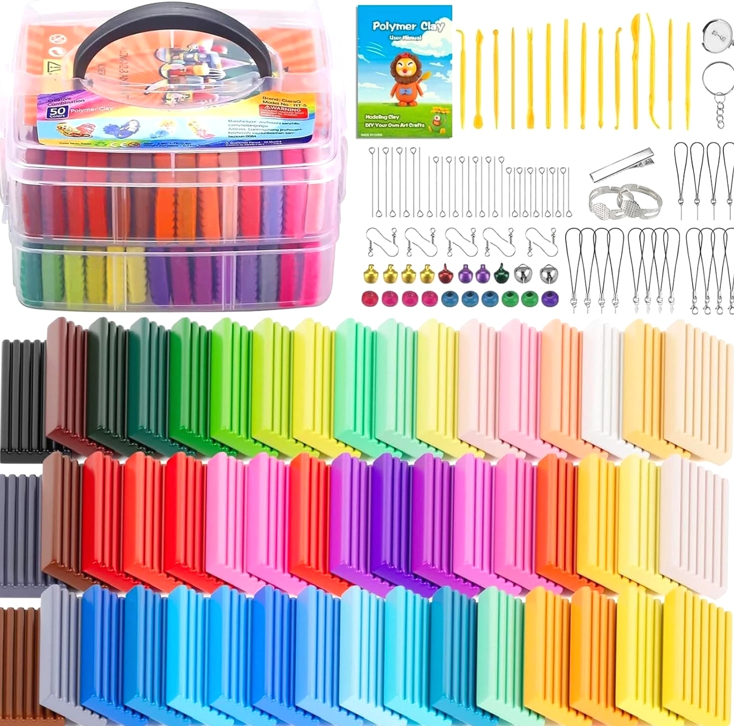 Creative Polymer Clay Starter Set - 50 Colors for Kids Age 4+ Craft Kit Creative Polymer Clay Starter Set 50 Colors for Kids Age 4+ - A Fun and Engaging Experience! What's Included: One plastic storage box 50 vibrant colors of polymer clay Creative modeling tools and accessories Project booklet for inspiration Weighs 2.8 pounds for easy handling Quality You Can Trust: Non-toxic and safe for kids Environmentally friendly and allergen-free Complies with ASTM D-4236 standards Endless Creativity Awaits: Non-hardening modeling clay: never hardens, easily reusable, and blendable for endless possibilities. Individually wrapped packs ensure your little ones can dive right into their creations. Perfect for children and beginners to craft small ornaments, model animals, characters, and more! Molding Methods: Recommended to use an oven to bake for ideal results. Hair dryer for small workpieces (1-2 inches). Boiling method not effective; please refer to included instructions for best practices. Why Choose Our Creative Polymer Clay Set? Designed for ages 4 and up, our Creative Polymer Clay Starter Set is the ultimate tool to spark creativity and keep kids engaged in imaginative play. With 50 dazzling colors and everything needed to create beautiful designs, this set promises fun and learning in every project. Your child's creativity deserves the best! Impress them with a crafting experience that is not only fun but also safe and educational. Order the Creative Polymer Clay Starter Set today and watch their artistic skills flourish!