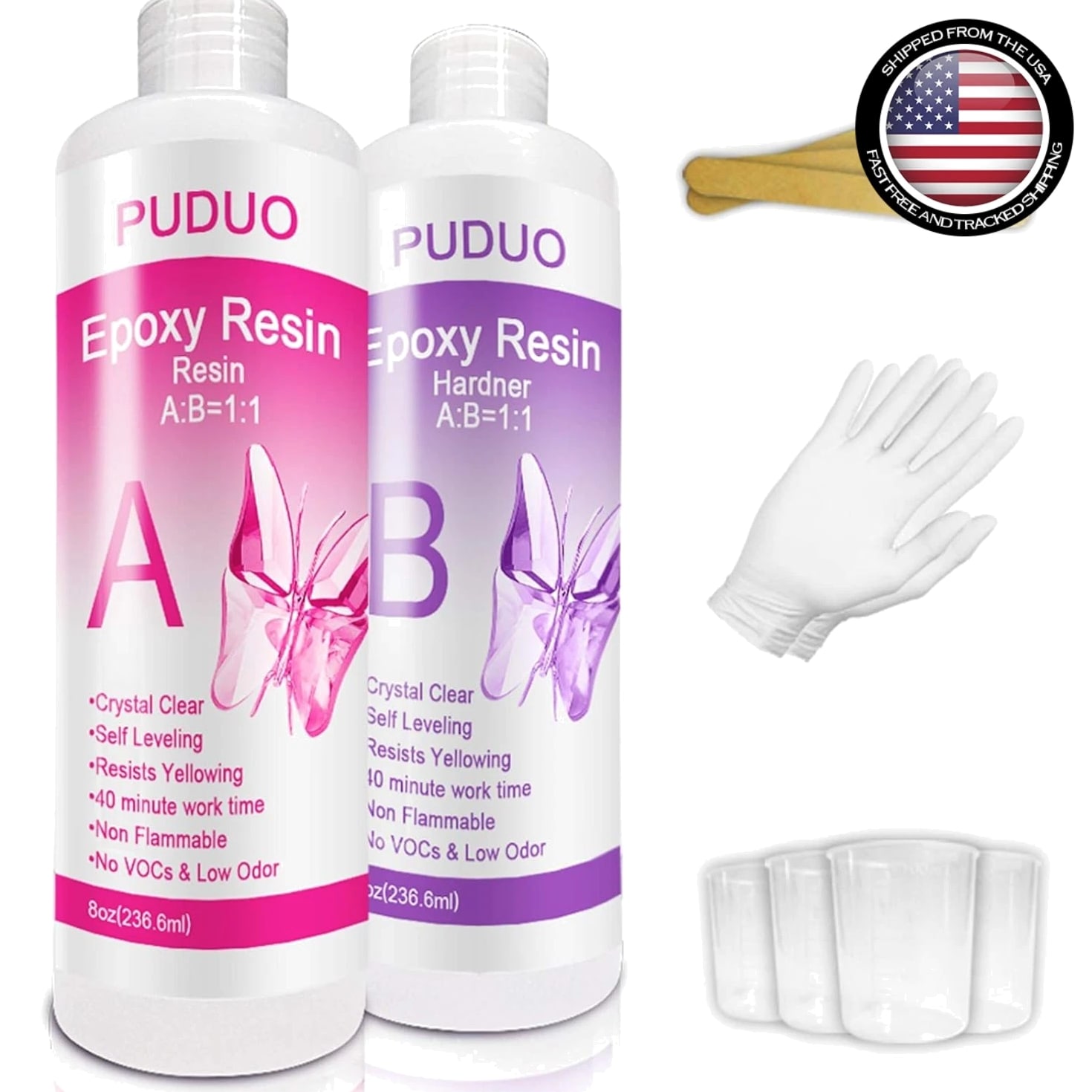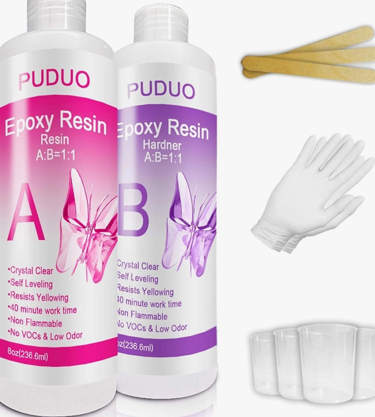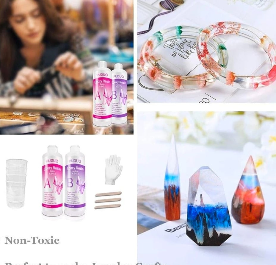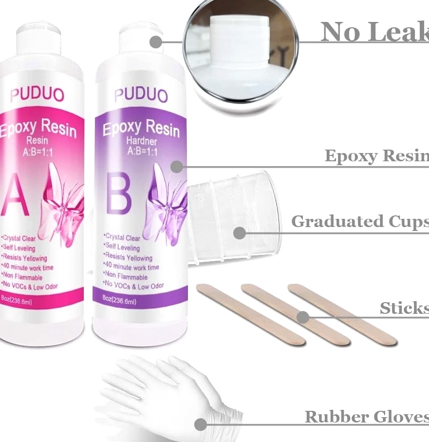 Non-Toxic 16 Oz Epoxy Resin Kit - Crystal Clear Finish for Crafts & Jewelry Making Non-Toxic 16 Oz Epoxy Resin Kit Achieve a stunning crystal clear finish for all your crafting and jewelry projects with this epoxy resin kit. Designed to elevate your artistic endeavors, this resin kit delivers long-lasting results that are perfect for both beginners and experienced artisans alike. Key Features: PERFECT FOR ANY ARTIST'S PROJECT: Designed specifically for resin art, this crystal clear epoxy resin ensures vibrant results for wood finishes and various applications with 8 OZ resin and 8 OZ hardener included. EASY TO USE: With no confusion involved, simply mix one part resin to one part hardener for up to 45 minutes of work time at room temperature. Let your creativity flow effortlessly! UNIQUE FAST CURING RESIN: Remove your finished casting from the mold after just 8 hours, with full cure achieved within 24 hours. The 1:1 mix ratio facilitates an uncomplicated crafting experience. VERSATILE APPLICATIONS: Ideal for casting and doming resin art, resin jewelry, and beyond. Unleash your creativity with compatibility for all pigments, including micas, alcohol inks, epoxy pastes, glitters, and glow-in-the-dark materials. COMES WITH BONUS TOOLS: Each kit includes 4 measuring cups, 3 mixing sticks, and 1 pair of rubber gloves, ensuring you have everything needed to create your masterpieces. Why Choose Our Epoxy Resin Kit? Transform your artistic vision into reality with this Non-Toxic Epoxy Resin Kit. Whether you're crafting stunning jewelry or intricate art pieces, this easy-to-use resin stands out for its impressive clarity, fast curing time, and versatile compatibility with a variety of pigments. Plus, with bonus tools included, you can dive right into your projects without any hassle. Elevate your crafting experience – order your Non-Toxic 16 Oz Epoxy Resin Kit today and let your creativity shine!