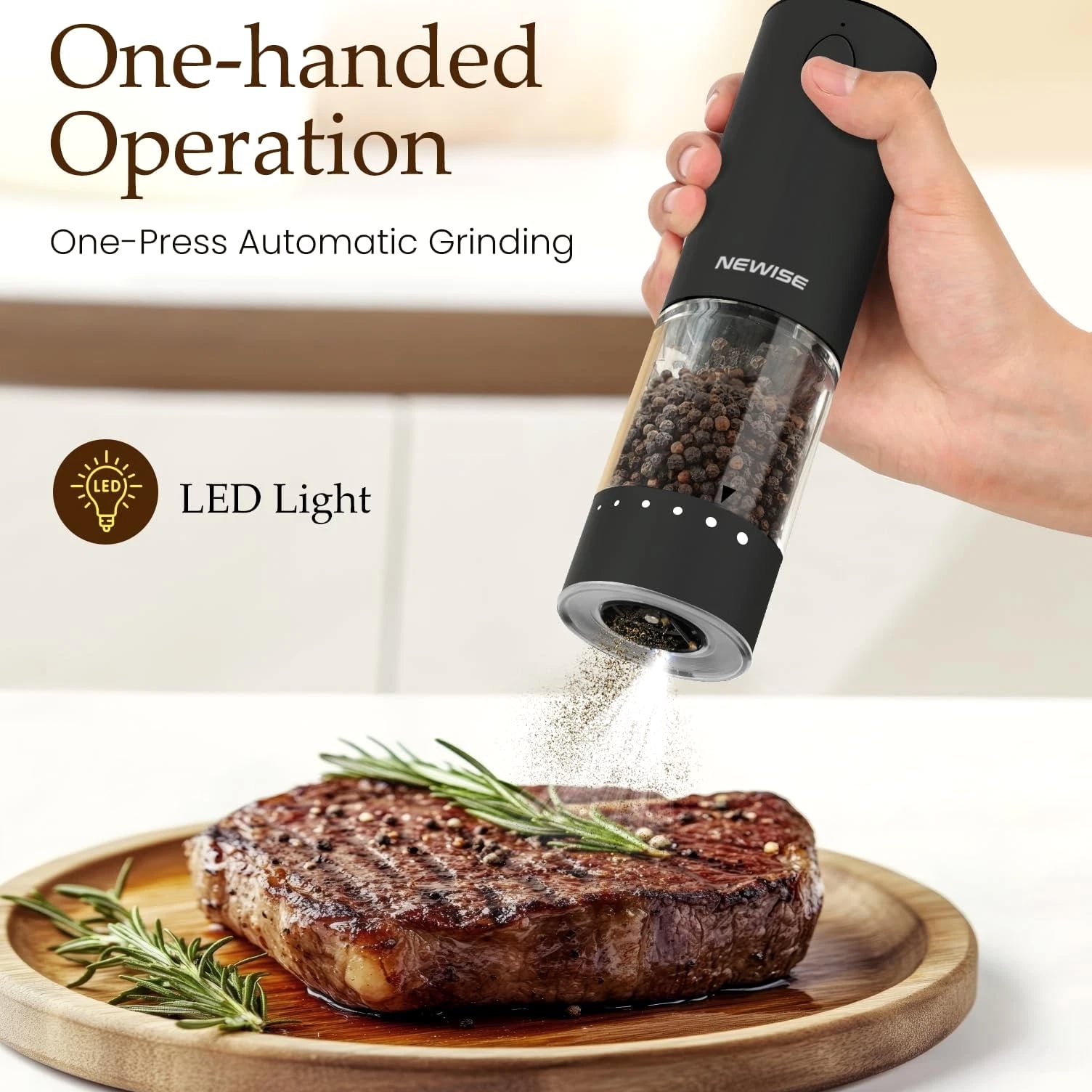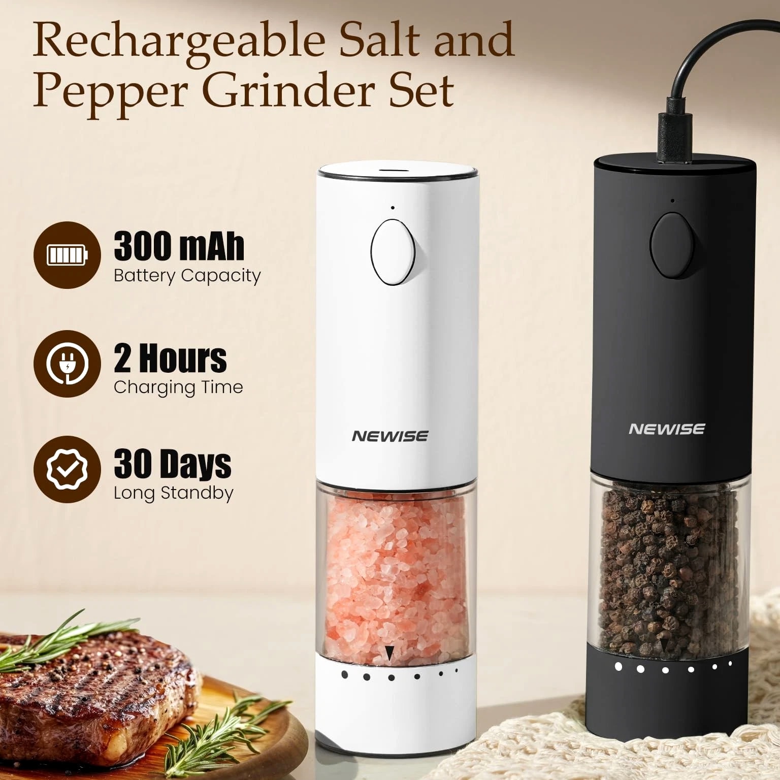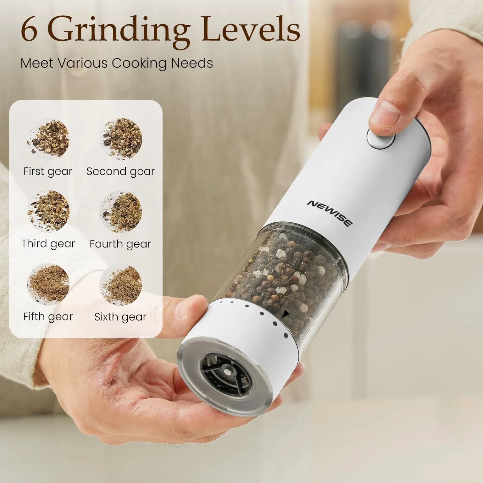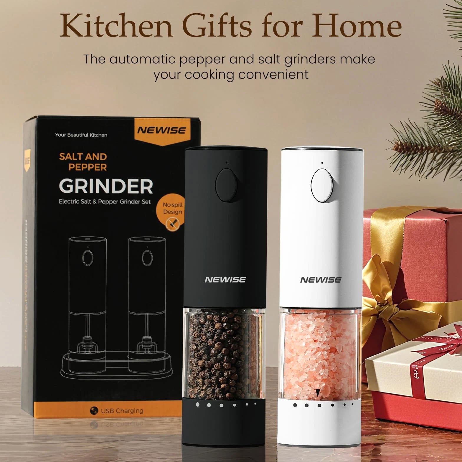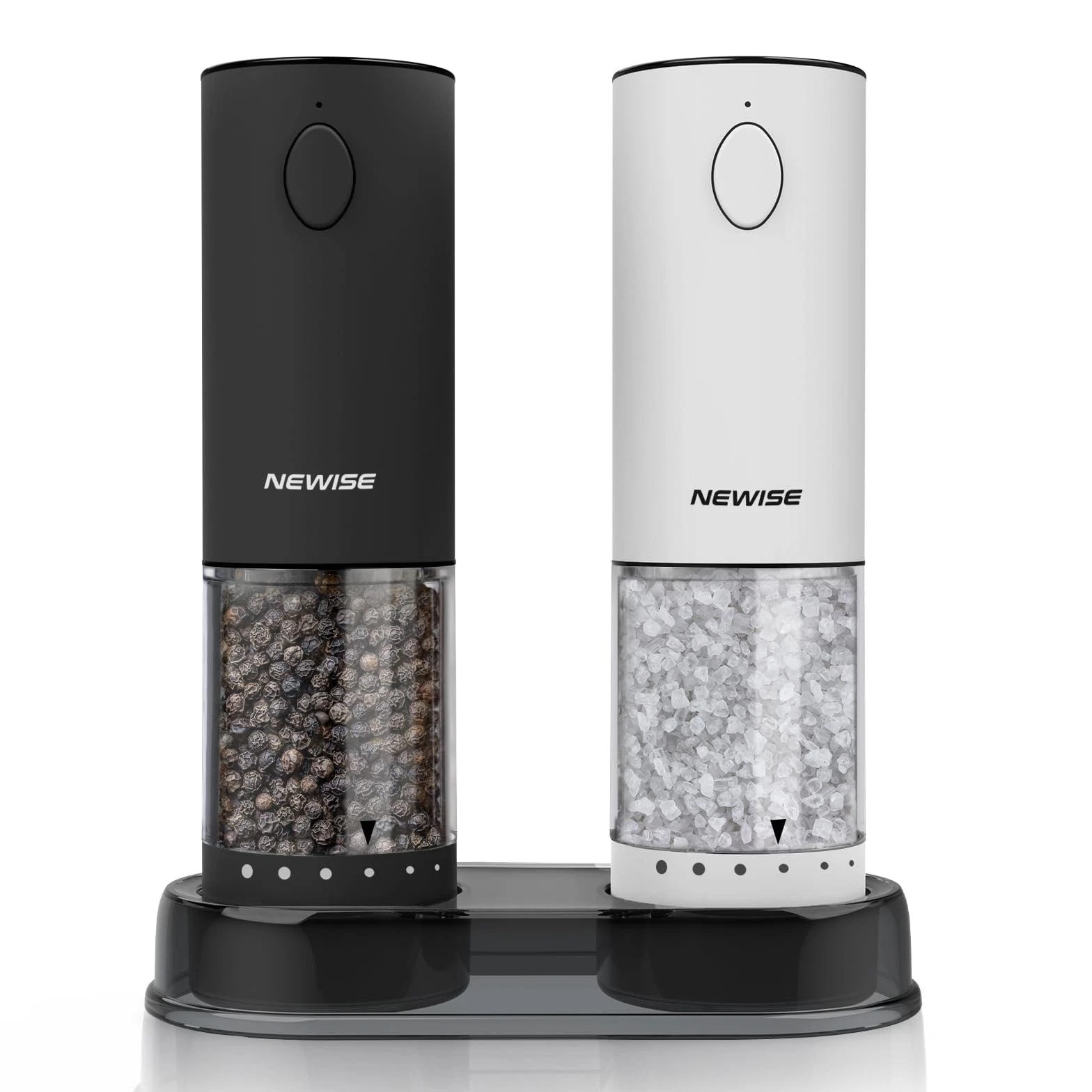 Electric Salt and Pepper Grinder Set, Adjustable Coarseness & LED Light, Rechargeable Large Capacity Stainless Steel Mill, Mothers Day Birthday Gifts for Women Mom - Black/White 【EFFORTLESS RECHARGEABLE CONVENIENCE: TYPE-C & 1-MONTH BATTERY LIFE】 Say goodbye to wasteful batteries and messy hand grinding! With advanced USB-C charging, a 1-hour full charge powers up to 1 month of daily use. Enjoy cordless freedom and modern eco-friendly convenience in your kitchen, dining table, or even outdoors. 【PRECISE FLAVOR CONTROL: 6-LEVEL ADJUSTABLE COARSENESS & LED LIGHT】 Unlock the full flavor of your spices. From fine powder for baking to coarse cracks for steak, our external dial offers 6 precise settings. The built-in LED light illuminates your dish, ensuring perfect seasoning day or night. 【LARGE CAPACITY & UNIVERSAL USE: 95ML JAR WORKS WITH SALT, PEPPER & MORE】 The oversized 95ml transparent container minimizes refills, perfect for families. Made of food-safe, corrosion-resistant materials, it's compatible with sea salt, peppercorns, dried herbs, and mixed spices. 【PREMIUM STAINLESS STEEL & ONE-TOUCH OPERATION】 Crafted from durable 304 stainless steel, this grinder set resists fingerprints and fits any kitchen decor. The non-slip base and one-button grinding make seasoning effortless with one hand, even when yours are messy. 【THE PERFECT KITCHEN UPGRADE: ELEGANT GIFT BOX INCLUDED】 Impress any home chef! Expertly packaged in a luxury gift box, this set is the ideal present for weddings, housewarmings, Mother's Day, or birthdays. It's more than a tool—it's an experience that elevates every meal. Electric Salt and Pepper Grinder Set, Rechargeable Stainless Steel Automatic Mill Shakers with 6 Adjustable Coarseness & LED Light, Mothers Day Gifts for Mom Wife Friends, 2 Pack Shipping All U.S. orders include complimentary shipping, and free shipping is also available to select international locations (see the shipping section of the listing for destination-spe